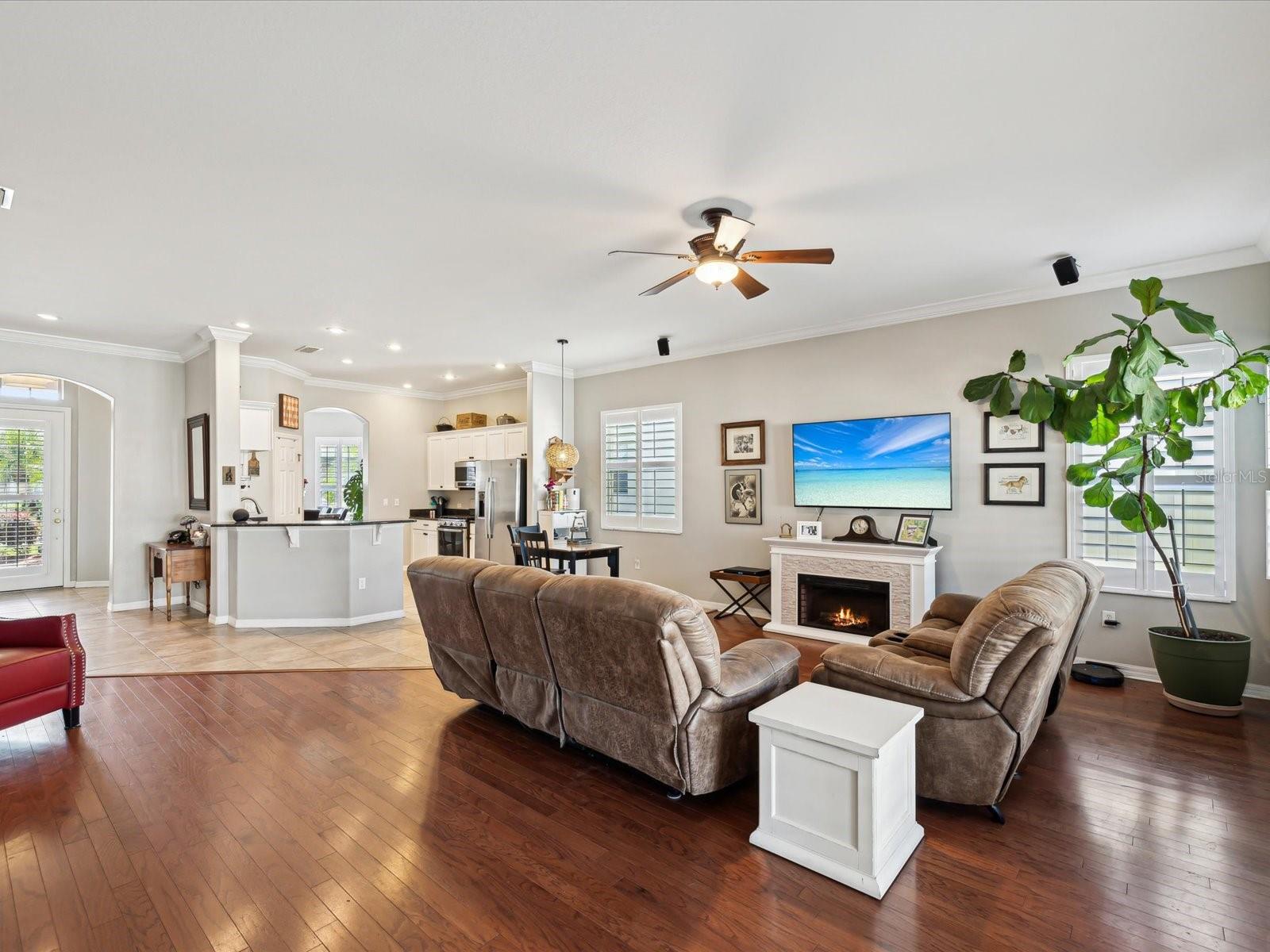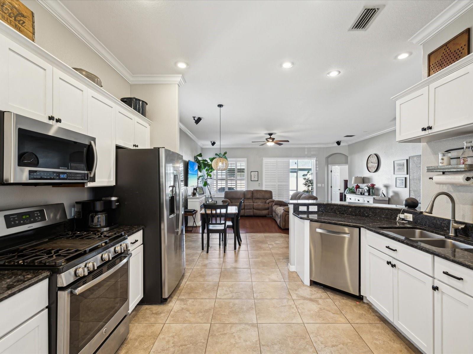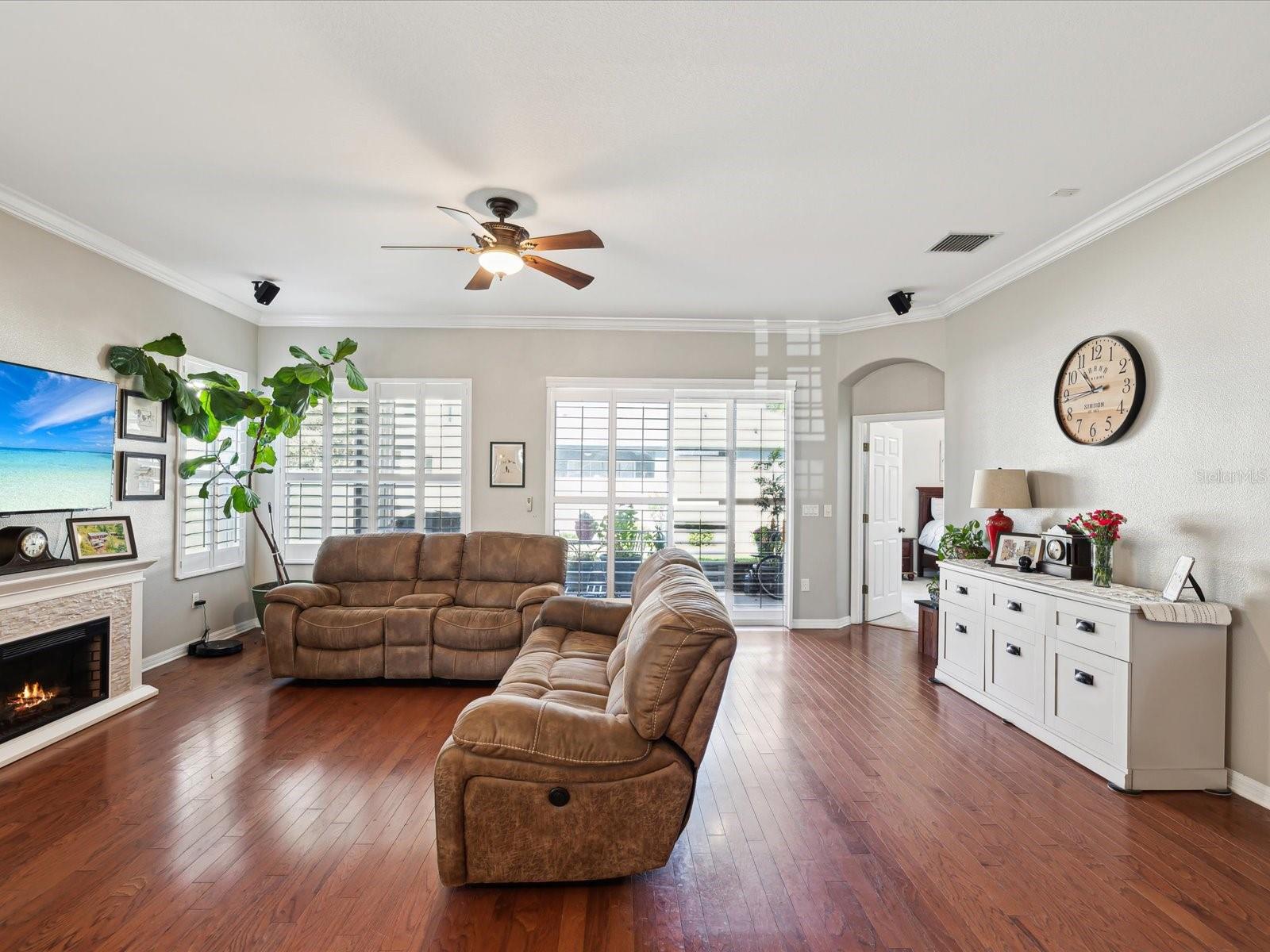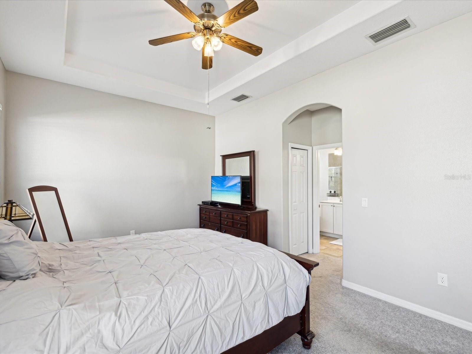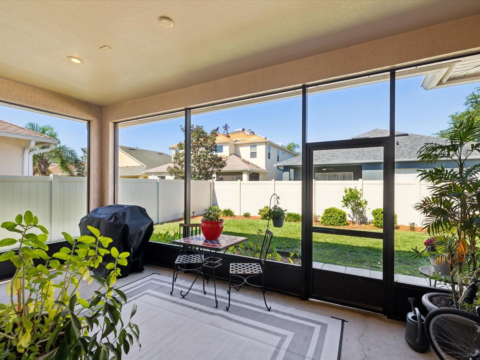 NEW ROOF completed September 2024! Nestled in the highly sought-after gated community of Stonegate, this beautifully maintained home exudes pride of ownership and timeless charm. From the moment you step inside, you'll notice the elegant crown molding, tray ceilings, and thoughtful architectural details that add warmth and character throughout. Custom plantation shutters provide both style and function—letting in soft, natural light or creating a cozy, private retreat. The home features three spacious bedrooms, including a luxurious Primary Suite designed for relaxation, complete with a soaking tub, separate shower, dual sinks, and a huge walk-in closet. The open-concept living area flows seamlessly from the spacious Family Room into the bright, modern kitchen—perfect for entertaining or quiet nights at home. Step outside to the oversized, screened lanai and enjoy peaceful backyard views surrounded by lush landscaping and mature fruit trees, including Myer lemon and orange. The fenced yard offers privacy and plenty of space to play or unwind. Residents of Stonegate enjoy resort-style amenities including 24/7 virtual-guard gates, a clubhouse with fitness center, fishing dock, beach-entry pool with lap lanes, and a playground. The community also hosts regular events, making it easy to connect and create lasting friendships. Ideally located along the SR-54 corridor, you're just 4.5 miles from the Suncoast Parkway/Veterans Expressway and 7 miles from I-75/SR-56, with shopping, dining, and entertainment just minutes away via US-41 and Dale Mabry. This home offers the perfect blend of comfort, style, and convenience in one of the area’s most desirable communities—don't miss your chance to make it yours!