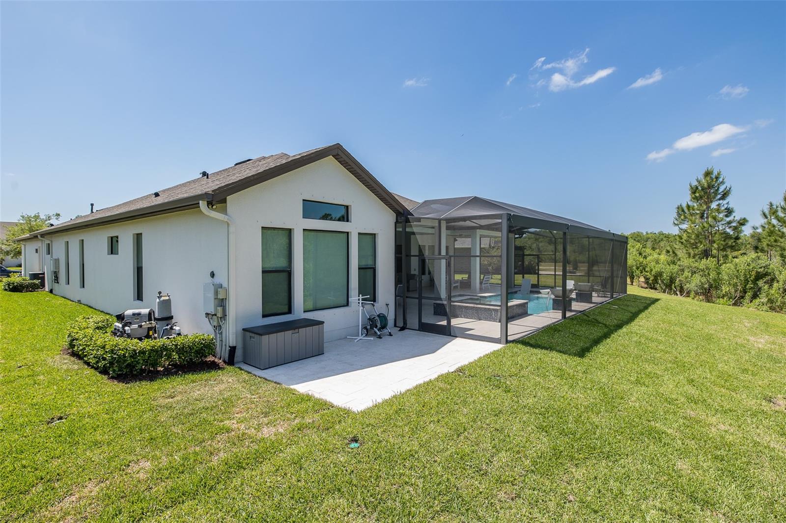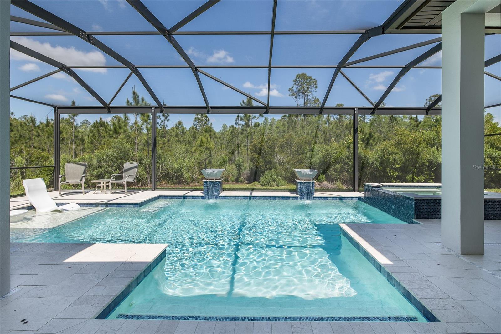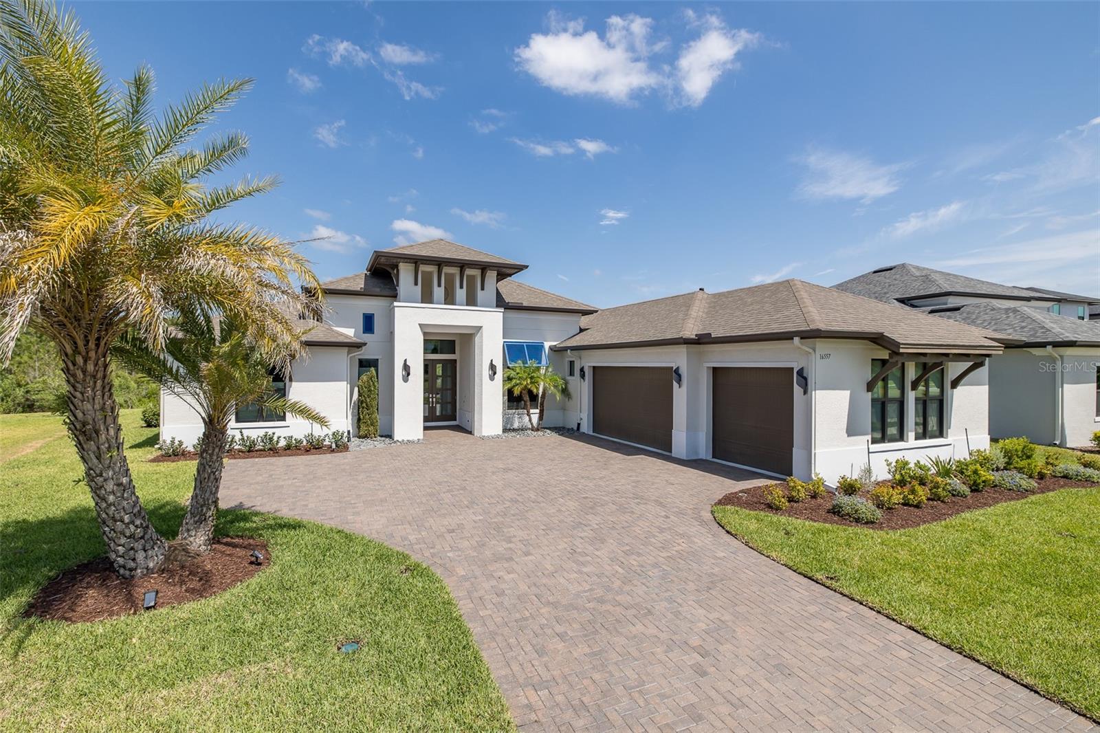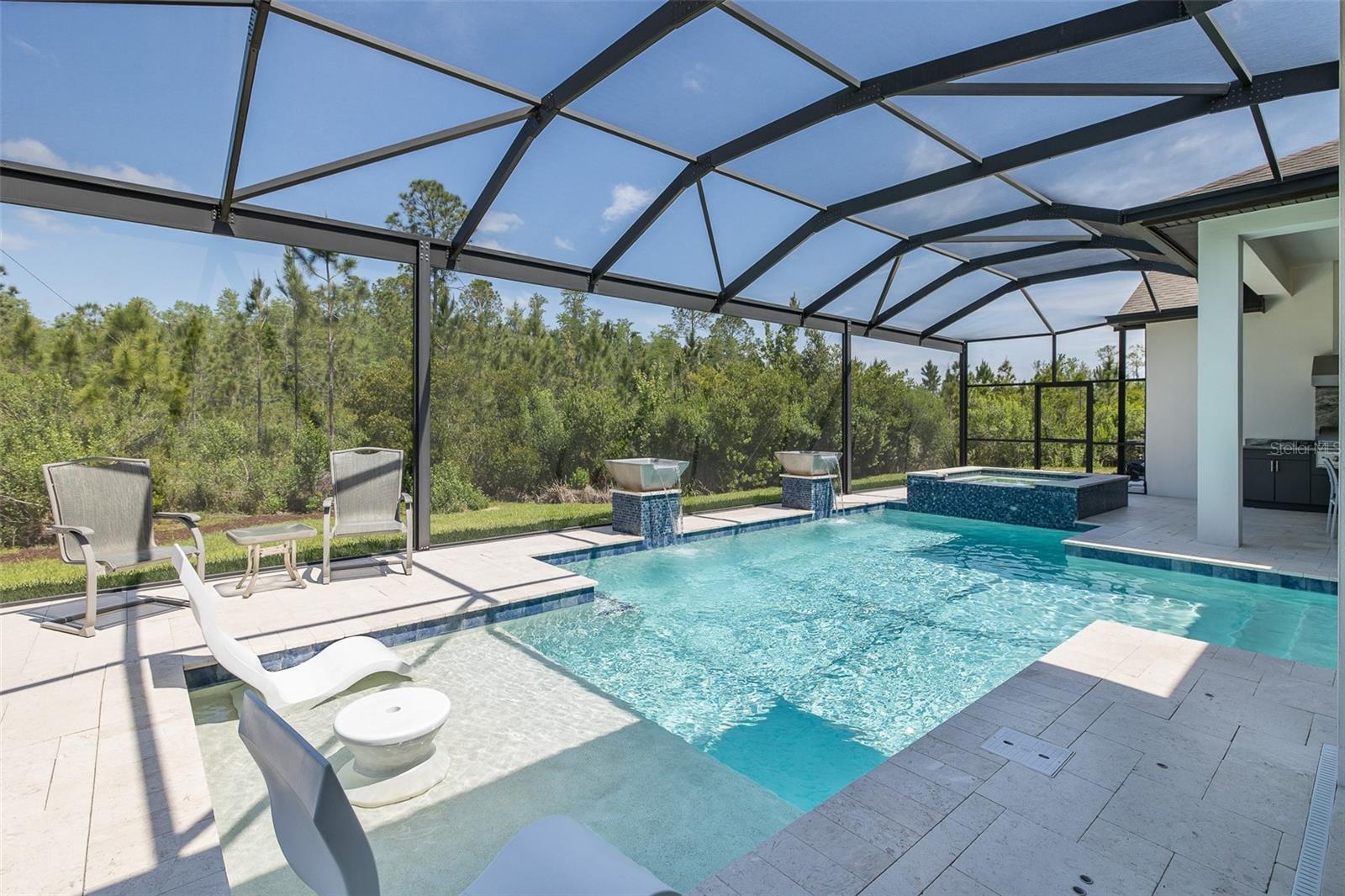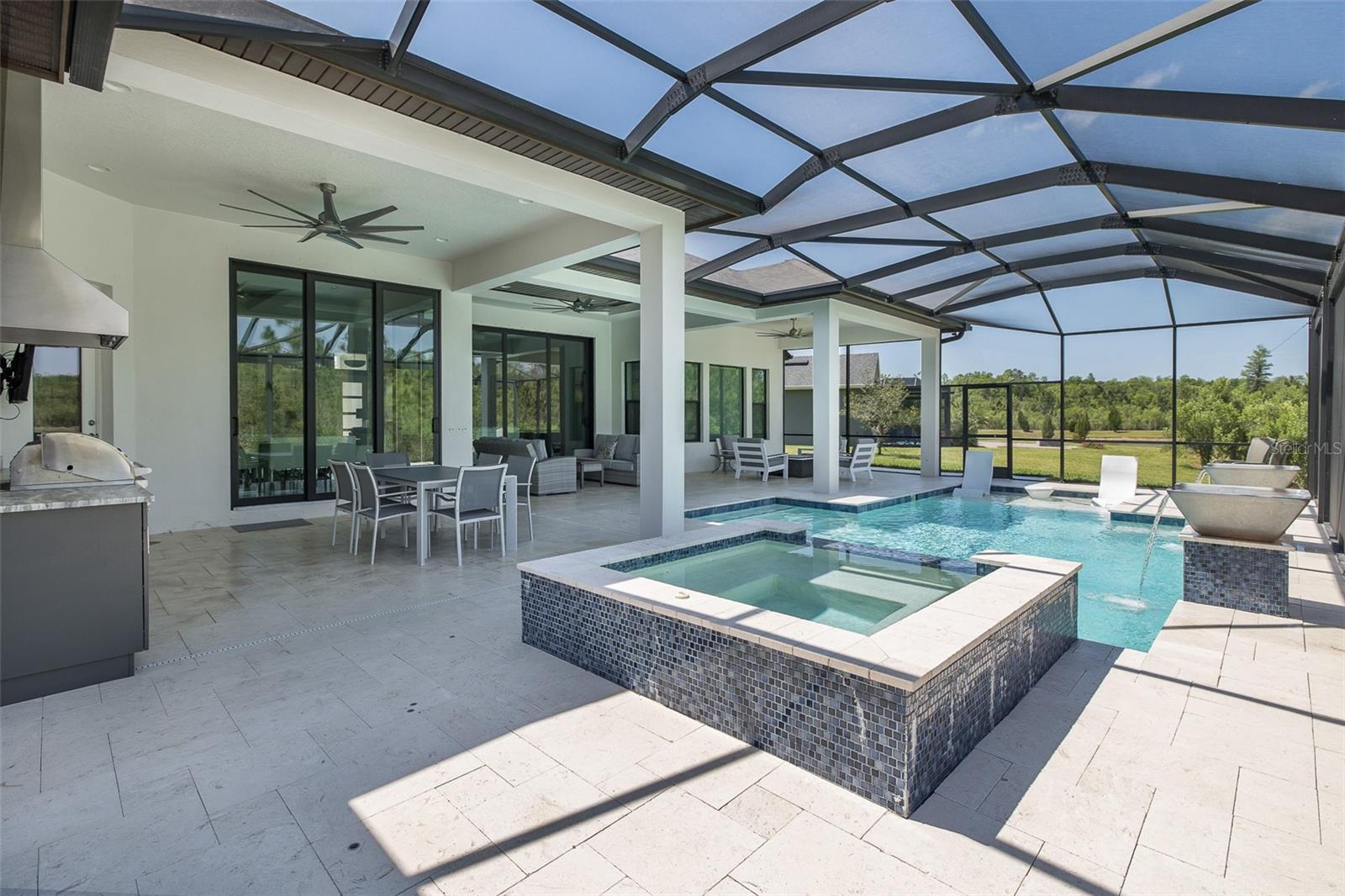 Luxurious Custom-Built AR Homes Retreat on Private Conservation Lot Tucked away on a serene cul-de-sac and backing to peaceful conservation and pond views, this stunning custom-built AR Homes residence offers the ultimate in privacy, luxury, and thoughtful design. Boasting 3 spacious bedrooms, 3 full bathrooms, a versatile bonus room, and a dedicated office/den, this home seamlessly blends elegance and comfort. Step inside to soaring custom ceilings with rich wood accents, beautifully designed tile flooring, and striking custom lighting that enhances every detail. The heart of the home features a gourmet kitchen with sleek quartz countertops, top-tier cabinetry, and designer finishes throughout. The pampering owner’s suite is a true retreat with dual custom walk-in closets, a spa-like bath including an oversized walk-in shower, a relaxing soaking tub, and custom vanities that elevate everyday living to include a Seura Hydra waterproof in wall T.V. A guest bedroom enjoys its own en suite bath, perfect for visitors or multigenerational living. Function meets style in the expansive laundry room with a huge walk-in closet and built-in mudroom space just off the generous 3-car garage. Step outside to your private oasis—a sprawling screened lanai with elegant travertine floors, lush landscaping, and a sparkling custom pool with sun shelf and spill-over bowls, all perfectly framed by serene pond and conservation views. Enjoy the custom summer kitchen complete with custom hood & gleaming granite or enjoy relaxing by the custom gas fire-pit. This exceptional property offers peace, privacy, and a truly elevated lifestyle. Don’t miss your opportunity to own a custom-crafted masterpiece in one of the most desirable settings available. This fabulous home boasts many recents upgrades: new sod, upgraded landscaping, fresh mulch, all new lights/fans throughout, reclaimed water for irrigation, wood ceiling on lanai, custom closet organizers, gas pool heater & so much more! Enjoy all that BEXLEY has to offer its residents: resort-style amenities just a short walk or golf cart ride away. Enjoy the clubhouse with an on-site café, 3 swimming pools, fitness center, game room, walking trails, dog park, bike park, & sports fields. Top-rated Bexley Elementary is within the neighborhood, along with the Bexley Hub, featuring restaurants, a bar, nail salon, and services surrounding a green space for outdoor gatherings. Located on SR 54, just off the Parkway with easy access to Tampa International Airport & downtown Tampa and a short drive to beautiful local beaches! Perfection!