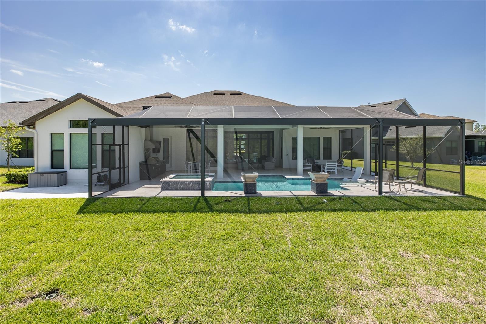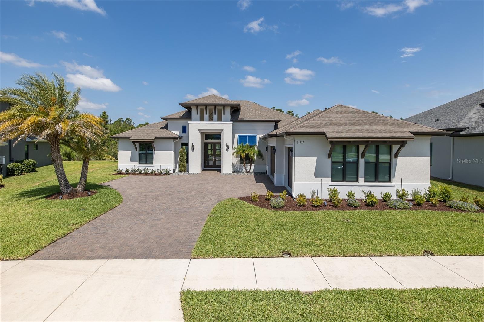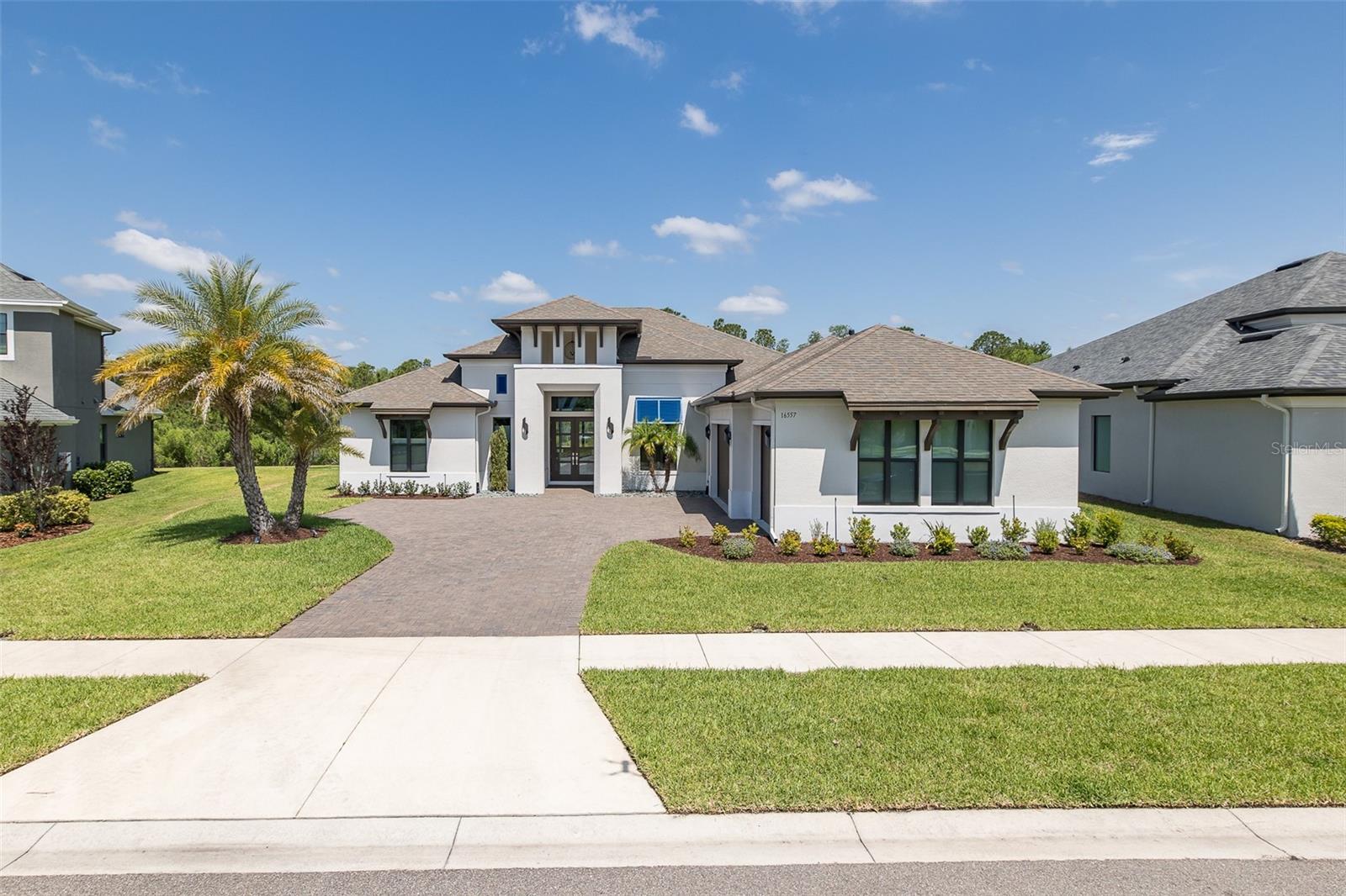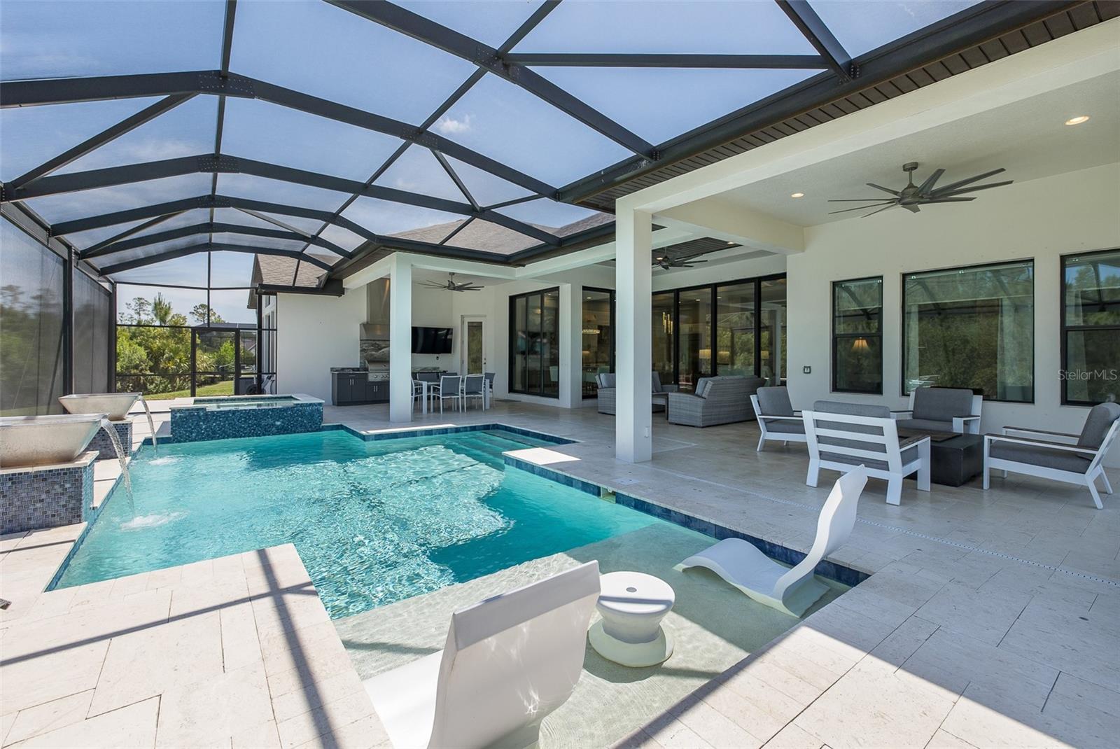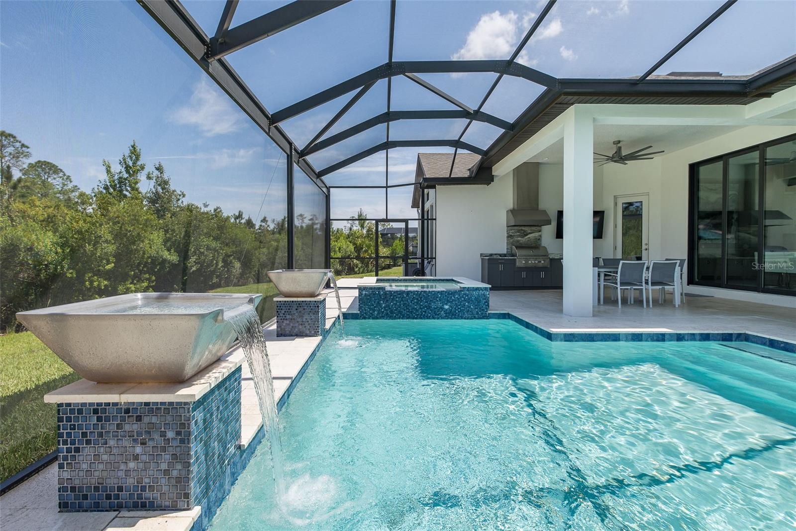 Luxurious Custom-Built AR Homes Retreat on Private Conservation Lot Tucked away on a serene cul-de-sac and backing to peaceful conservation and pond views, this stunning custom-built AR Homes residence offers the ultimate in privacy, luxury, and thoughtful design. Boasting 3 spacious bedrooms, 3 full bathrooms, a versatile bonus room, and a dedicated office/den, this home seamlessly blends elegance and comfort. Step inside to soaring custom ceilings with rich wood accents, beautifully designed tile flooring, and striking custom lighting that enhances every detail. The heart of the home features a gourmet kitchen with sleek quartz countertops, top-tier cabinetry, and designer finishes throughout. The pampering owner’s suite is a true retreat with dual custom walk-in closets, a spa-like bath including an oversized walk-in shower, a relaxing soaking tub, and custom vanities that elevate everyday living to include a Seura Hydra waterproof in wall T.V. A guest bedroom enjoys its own en suite bath, perfect for visitors or multigenerational living. Function meets style in the expansive laundry room with a huge walk-in closet and built-in mudroom space just off the generous 3-car garage. Step outside to your private oasis—a sprawling screened lanai with elegant travertine floors, lush landscaping, and a sparkling custom pool with sun shelf and spill-over bowls, all perfectly framed by serene pond and conservation views. Enjoy the custom summer kitchen complete with custom hood & gleaming granite or enjoy relaxing by the custom gas fire-pit. This exceptional property offers peace, privacy, and a truly elevated lifestyle. Don’t miss your opportunity to own a custom-crafted masterpiece in one of the most desirable settings available. This fabulous home boasts many recents upgrades: new sod, upgraded landscaping, fresh mulch, all new lights/fans throughout, reclaimed water for irrigation, wood ceiling on lanai, custom closet organizers, gas pool heater & so much more! Enjoy all that BEXLEY has to offer its residents: resort-style amenities just a short walk or golf cart ride away. Enjoy the clubhouse with an on-site café, 3 swimming pools, fitness center, game room, walking trails, dog park, bike park, & sports fields. Top-rated Bexley Elementary is within the neighborhood, along with the Bexley Hub, featuring restaurants, a bar, nail salon, and services surrounding a green space for outdoor gatherings. Located on SR 54, just off the Parkway with easy access to Tampa International Airport & downtown Tampa and a short drive to beautiful local beaches! Perfection!
