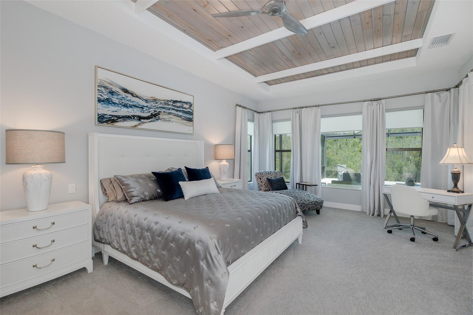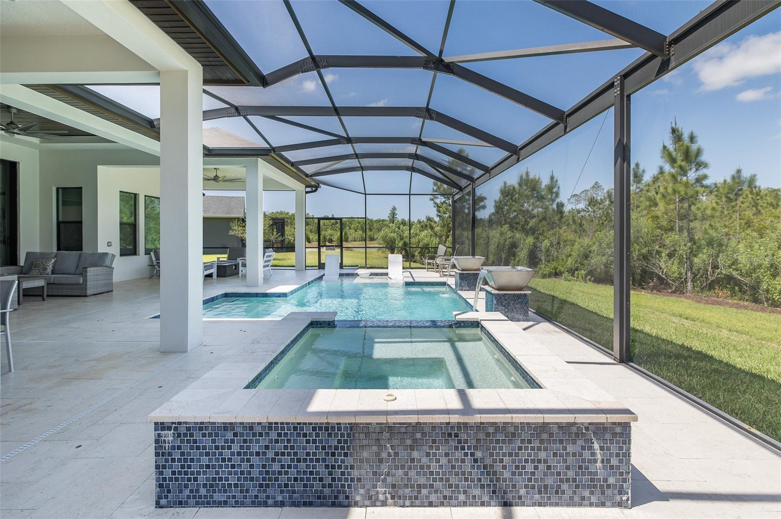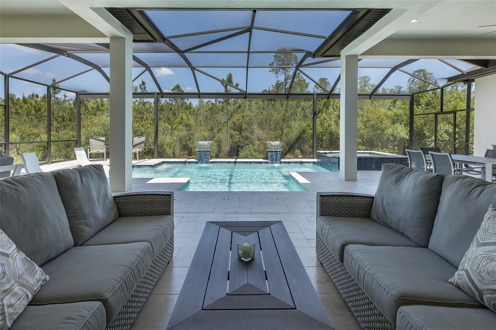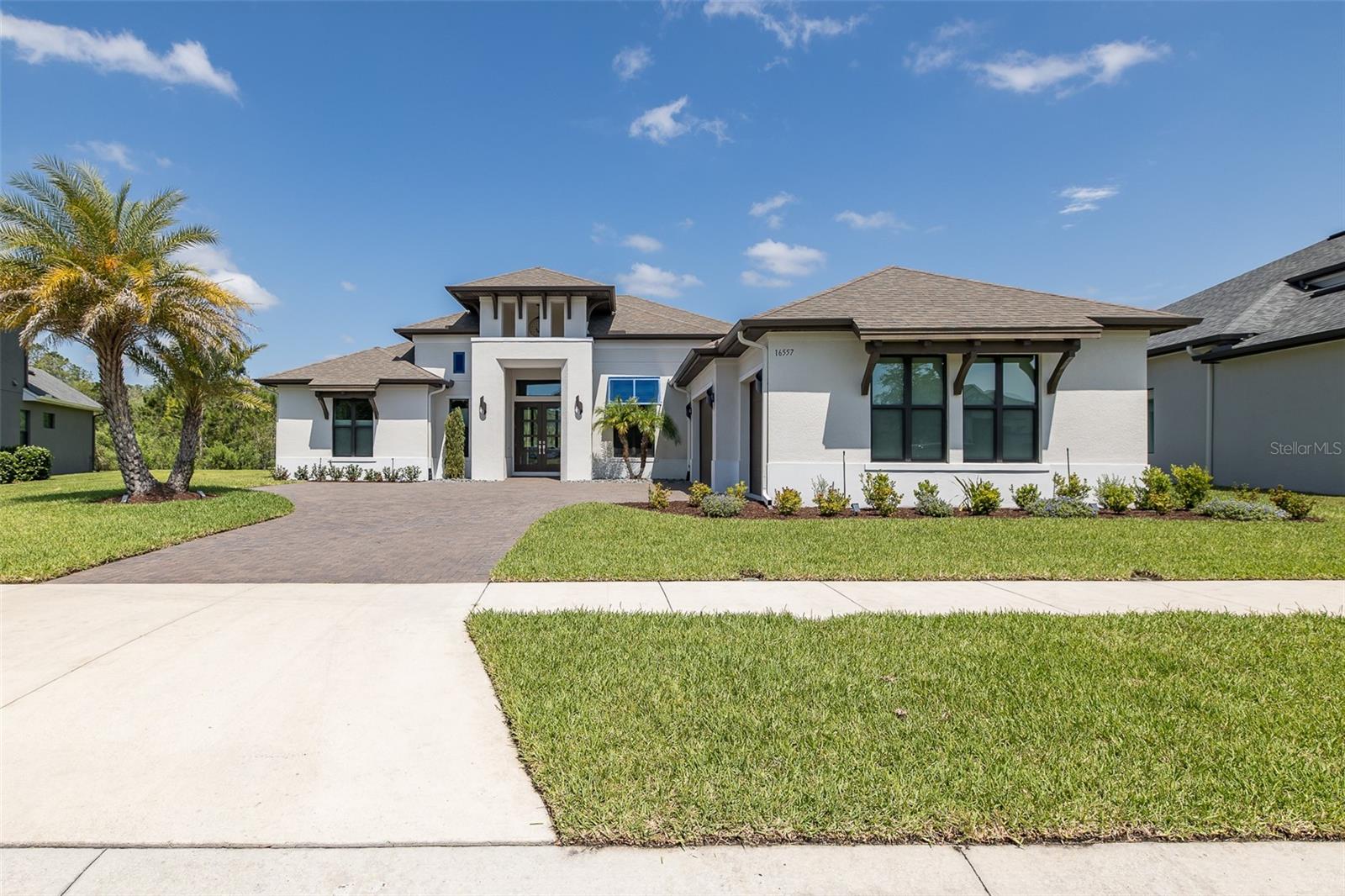 Luxurious Custom-Built AR Homes Retreat on Private Conservation Lot Tucked away on a serene cul-de-sac and backing to peaceful conservation and pond views, this stunning custom-built AR Homes residence offers the ultimate in privacy, luxury, and thoughtful design. Boasting 3 spacious bedrooms, 3 full bathrooms, a versatile bonus room, and a dedicated office/den, this home seamlessly blends elegance and comfort. Step inside to soaring custom ceilings with rich wood accents, beautifully designed tile flooring, and striking custom lighting that enhances every detail. The heart of the home features a gourmet kitchen with sleek quartz countertops, top-tier cabinetry, and designer finishes throughout. The pampering owner’s suite is a true retreat with dual custom walk-in closets, a spa-like bath including an oversized walk-in shower, a relaxing soaking tub, and custom vanities that elevate everyday living to include a Seura Hydra waterproof in wall T.V. A guest bedroom enjoys its own en suite bath, perfect for visitors or multigenerational living. Function meets style in the expansive laundry room with a huge walk-in closet and built-in mudroom space just off the generous 3-car garage. Step outside to your private oasis—a sprawling screened lanai with elegant travertine floors, lush landscaping, and a sparkling custom pool with sun shelf and spill-over bowls, all perfectly framed by serene pond and conservation views. Enjoy the custom summer kitchen complete with custom hood & gleaming granite or enjoy relaxing by the custom gas fire-pit. This exceptional property offers peace, privacy, and a truly elevated lifestyle. Don’t miss your opportunity to own a custom-crafted masterpiece in one of the most desirable settings available. This fabulous home boasts many recents upgrades: new sod, upgraded landscaping, fresh mulch, all new lights/fans throughout, reclaimed water for irrigation, wood ceiling on lanai, custom closet organizers, gas pool heater & so much more! Enjoy all that BEXLEY has to offer its residents: resort-style amenities just a short walk or golf cart ride away. Enjoy the clubhouse with an on-site café, 3 swimming pools, fitness center, game room, walking trails, dog park, bike park, & sports fields. Top-rated Bexley Elementary is within the neighborhood, along with the Bexley Hub, featuring restaurants, a bar, nail salon, and services surrounding a green space for outdoor gatherings. Located on SR 54, just off the Parkway with easy access to Tampa International Airport & downtown Tampa and a short drive to beautiful local beaches! Perfection!