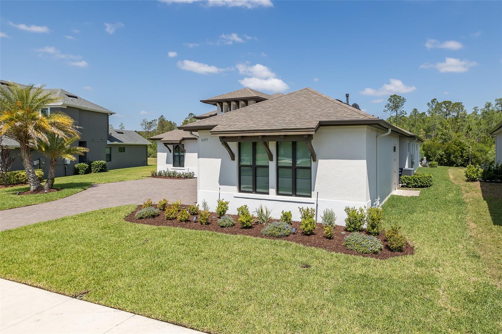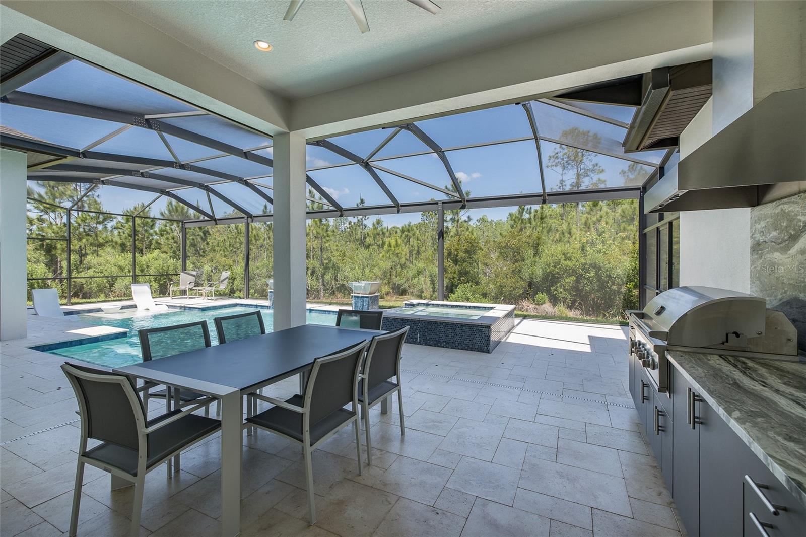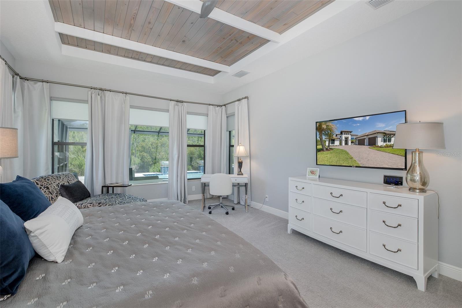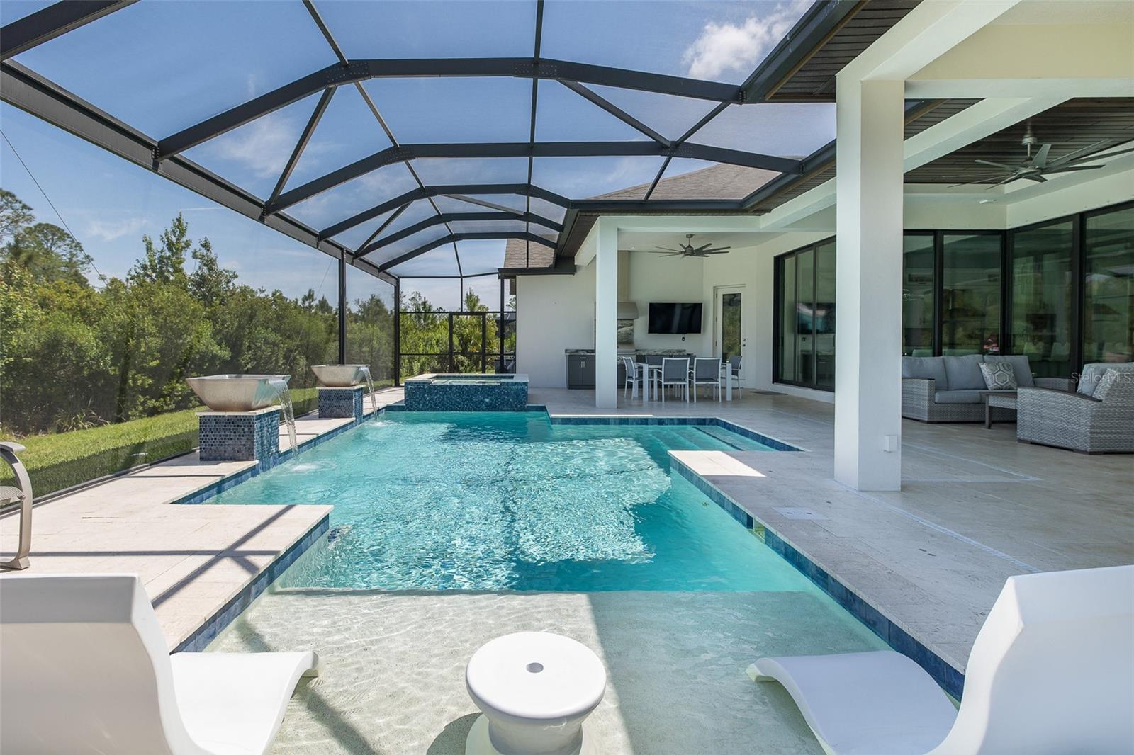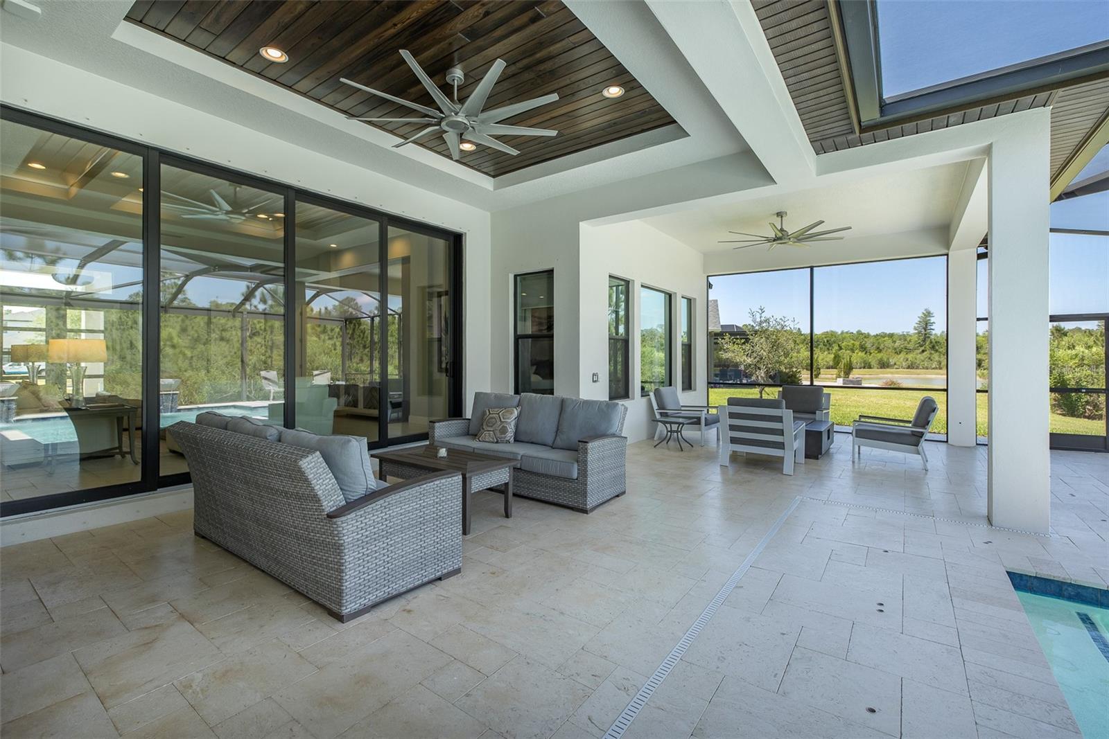 Luxurious Custom-Built AR Homes Retreat on Private Conservation Lot Tucked away on a serene cul-de-sac and backing to peaceful conservation and pond views, this stunning custom-built AR Homes residence offers the ultimate in privacy, luxury, and thoughtful design. Boasting 3 spacious bedrooms, 3 full bathrooms, a versatile bonus room, and a dedicated office/den, this home seamlessly blends elegance and comfort. Step inside to soaring custom ceilings with rich wood accents, beautifully designed tile flooring, and striking custom lighting that enhances every detail. The heart of the home features a gourmet kitchen with sleek quartz countertops, top-tier cabinetry, and designer finishes throughout. The pampering owner’s suite is a true retreat with dual custom walk-in closets, a spa-like bath including an oversized walk-in shower, a relaxing soaking tub, and custom vanities that elevate everyday living to include a Seura Hydra waterproof in wall T.V. A guest bedroom enjoys its own en suite bath, perfect for visitors or multigenerational living. Function meets style in the expansive laundry room with a huge walk-in closet and built-in mudroom space just off the generous 3-car garage. Step outside to your private oasis—a sprawling screened lanai with elegant travertine floors, lush landscaping, and a sparkling custom pool with sun shelf and spill-over bowls, all perfectly framed by serene pond and conservation views. Enjoy the custom summer kitchen complete with custom hood & gleaming granite or enjoy relaxing by the custom gas fire-pit. This exceptional property offers peace, privacy, and a truly elevated lifestyle. Don’t miss your opportunity to own a custom-crafted masterpiece in one of the most desirable settings available. This fabulous home boasts many recents upgrades: new sod, upgraded landscaping, fresh mulch, all new lights/fans throughout, reclaimed water for irrigation, wood ceiling on lanai, custom closet organizers, gas pool heater & so much more! Enjoy all that BEXLEY has to offer its residents: resort-style amenities just a short walk or golf cart ride away. Enjoy the clubhouse with an on-site café, 3 swimming pools, fitness center, game room, walking trails, dog park, bike park, & sports fields. Top-rated Bexley Elementary is within the neighborhood, along with the Bexley Hub, featuring restaurants, a bar, nail salon, and services surrounding a green space for outdoor gatherings. Located on SR 54, just off the Parkway with easy access to Tampa International Airport & downtown Tampa and a short drive to beautiful local beaches! Perfection!