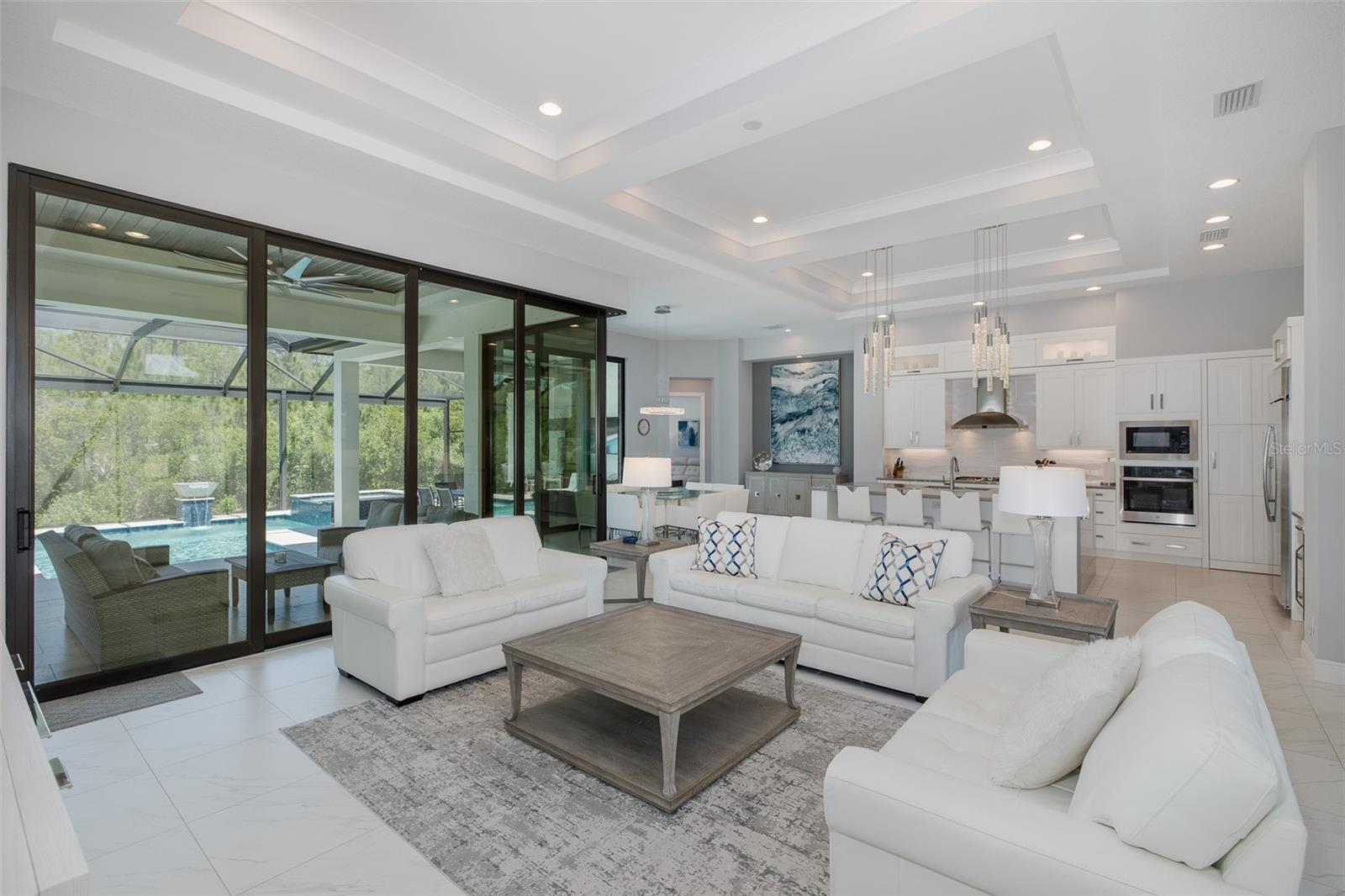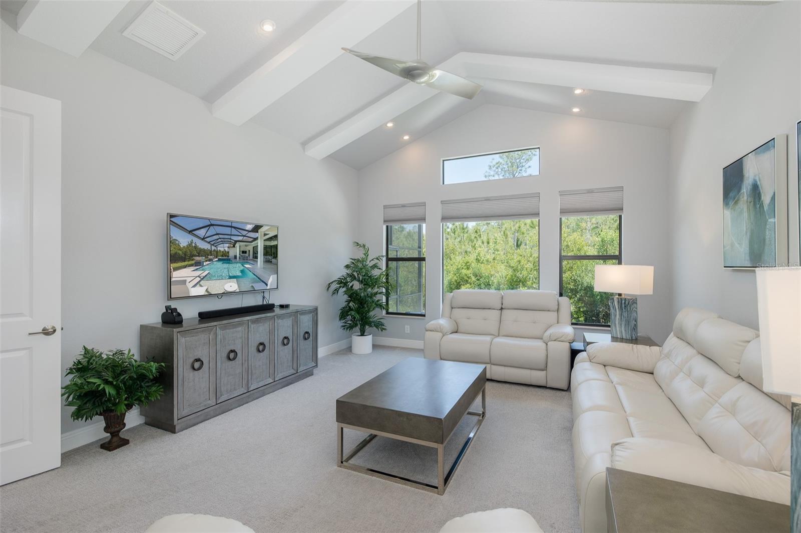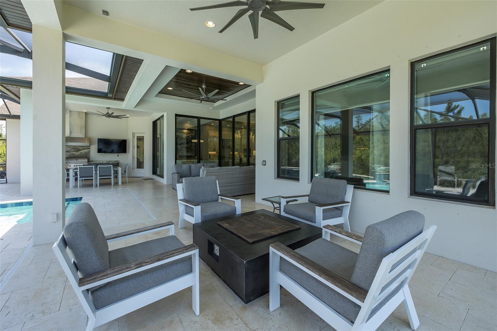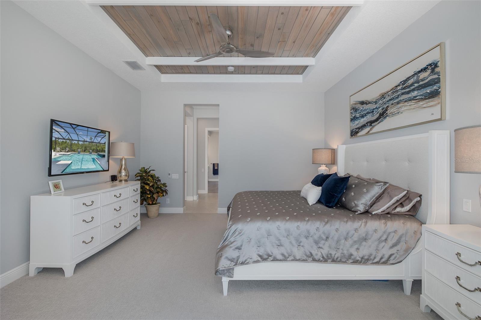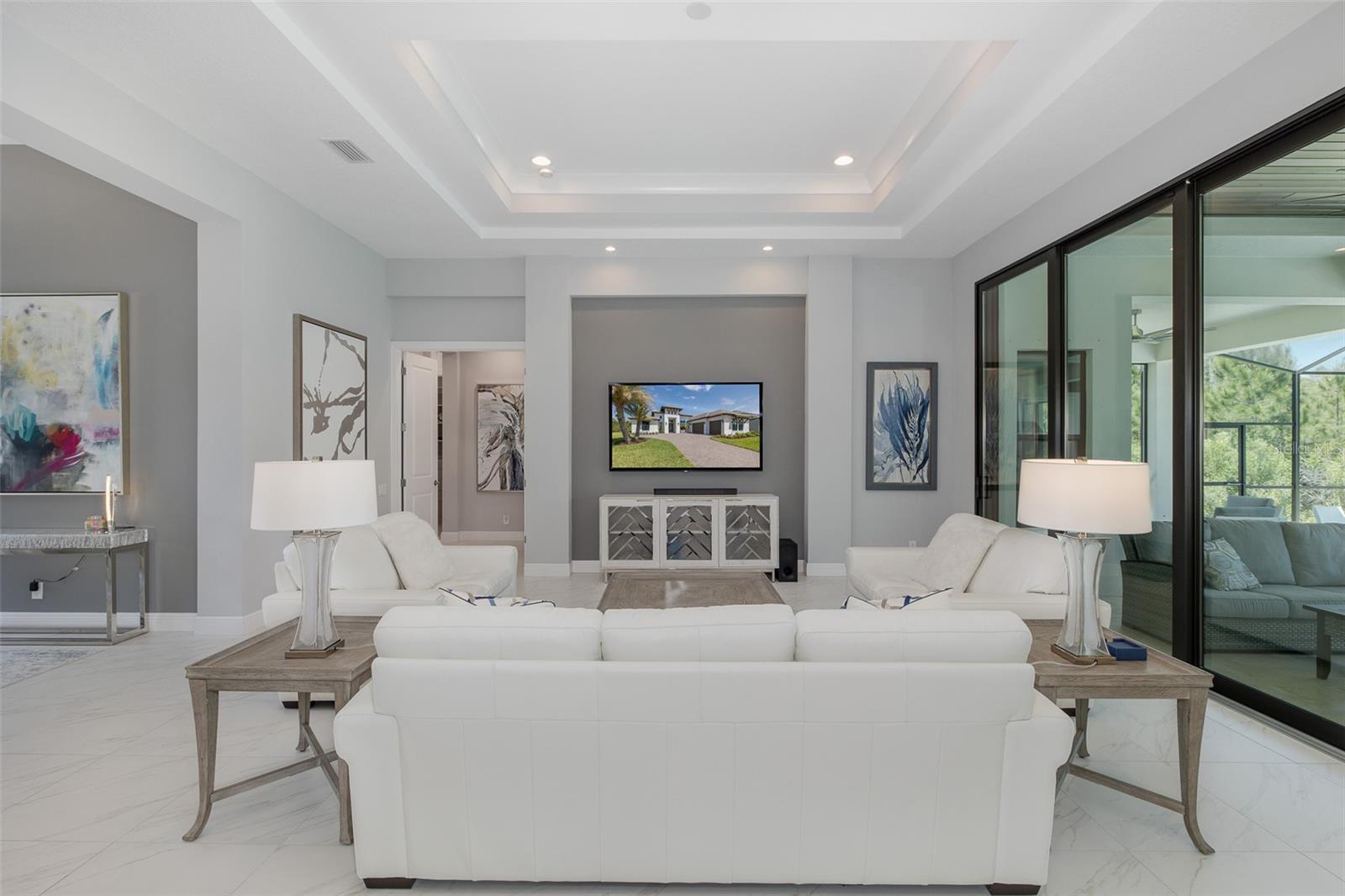 Luxurious Custom-Built AR Homes Retreat on Private Conservation Lot Tucked away on a serene cul-de-sac and backing to peaceful conservation and pond views, this stunning custom-built AR Homes residence offers the ultimate in privacy, luxury, and thoughtful design. Boasting 3 spacious bedrooms, 3 full bathrooms, a versatile bonus room, and a dedicated office/den, this home seamlessly blends elegance and comfort. Step inside to soaring custom ceilings with rich wood accents, beautifully designed tile flooring, and striking custom lighting that enhances every detail. The heart of the home features a gourmet kitchen with sleek quartz countertops, top-tier cabinetry, and designer finishes throughout. The pampering owner’s suite is a true retreat with dual custom walk-in closets, a spa-like bath including an oversized walk-in shower, a relaxing soaking tub, and custom vanities that elevate everyday living to include a Seura Hydra waterproof in wall T.V. A guest bedroom enjoys its own en suite bath, perfect for visitors or multigenerational living. Function meets style in the expansive laundry room with a huge walk-in closet and built-in mudroom space just off the generous 3-car garage. Step outside to your private oasis—a sprawling screened lanai with elegant travertine floors, lush landscaping, and a sparkling custom pool with sun shelf and spill-over bowls, all perfectly framed by serene pond and conservation views. Enjoy the custom summer kitchen complete with custom hood & gleaming granite or enjoy relaxing by the custom gas fire-pit. This exceptional property offers peace, privacy, and a truly elevated lifestyle. Don’t miss your opportunity to own a custom-crafted masterpiece in one of the most desirable settings available. This fabulous home boasts many recents upgrades: new sod, upgraded landscaping, fresh mulch, all new lights/fans throughout, reclaimed water for irrigation, wood ceiling on lanai, custom closet organizers, gas pool heater & so much more! Enjoy all that BEXLEY has to offer its residents: resort-style amenities just a short walk or golf cart ride away. Enjoy the clubhouse with an on-site café, 3 swimming pools, fitness center, game room, walking trails, dog park, bike park, & sports fields. Top-rated Bexley Elementary is within the neighborhood, along with the Bexley Hub, featuring restaurants, a bar, nail salon, and services surrounding a green space for outdoor gatherings. Located on SR 54, just off the Parkway with easy access to Tampa International Airport & downtown Tampa and a short drive to beautiful local beaches! Perfection!