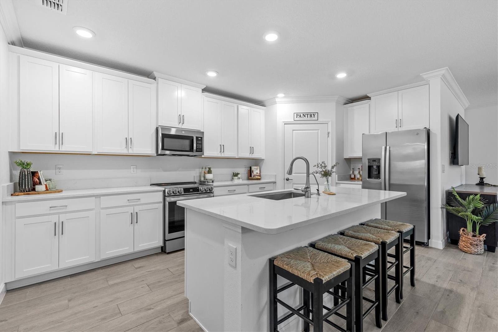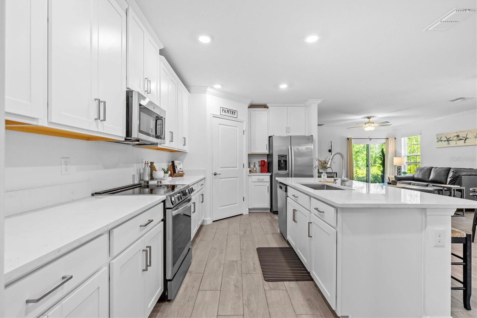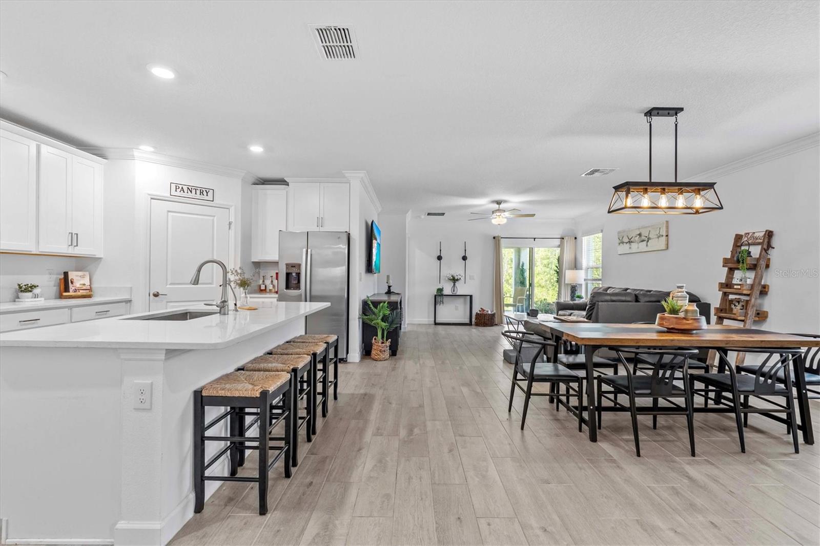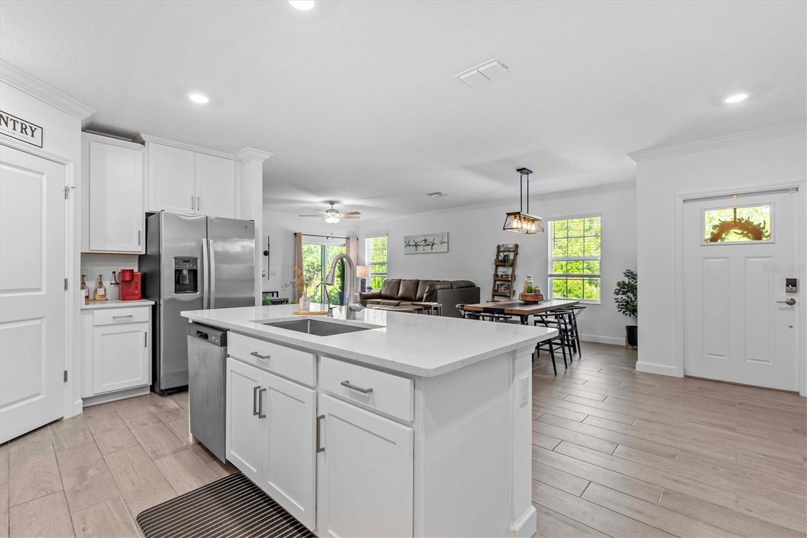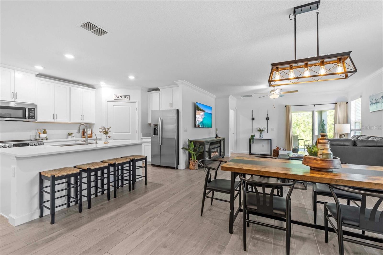 Quiet, Private & Better Than New – This Villa Lives Like a Single-Family Home! Owners are very motivated! Welcome to a rare gem in the 55+ gated community of Medley at Angeline—a move-in-ready 2023 end unit villa that offers exceptional privacy, unlike any other in the neighborhood. Nestled at the end of a quiet cul-de-sac with no rear neighbors, a wide green space in front, and serene conservation views, this home provides a peaceful retreat with the feel of a single-family residence. Step inside to a light-filled, open-concept floor plan where elegance meets comfort. The gourmet kitchen is a showstopper—featuring quartz countertops, stainless steel appliances, abundant cabinetry, and a large walk-in pantry—perfect for entertaining or everyday living. The spacious dining and living areas flow seamlessly for effortless hosting. The private owner's suite is a true sanctuary, complete with a spa-inspired bath boasting a walk-in glass shower, dual vanities, and a generous walk-in closet. A secondary bedroom offers comfort for guests, while the bonus room (listed as 3rd bedroom) is ideal as a home office, reading nook, or hobby space. Additional upgrades include smart home technology: smart doorbell, lock, thermostat, garage door opener, and a Moen water detector for peace of mind. This home has been impeccably maintained and feels brand new. Community Amenities Medley at Angeline offers a resort-style lifestyle with a zero-entry pool, lap pool, outdoor bar, karaoke nights, a stunning 12,000+ sq ft clubhouse, restaurant, ballroom, yoga studio, game rooms, and a full fitness center. Enjoy bocce, pickleball, shuffleboard, and access to over 100 miles of planned trails across 6,200 acres. The Community Farm offers fresh produce and a farm-to-table restaurant with a wine bar and veranda for relaxed outdoor dining. Don't miss this premier conservation homesite offering the ultimate blend of privacy, luxury, and lifestyle. Schedule your private showing today!
