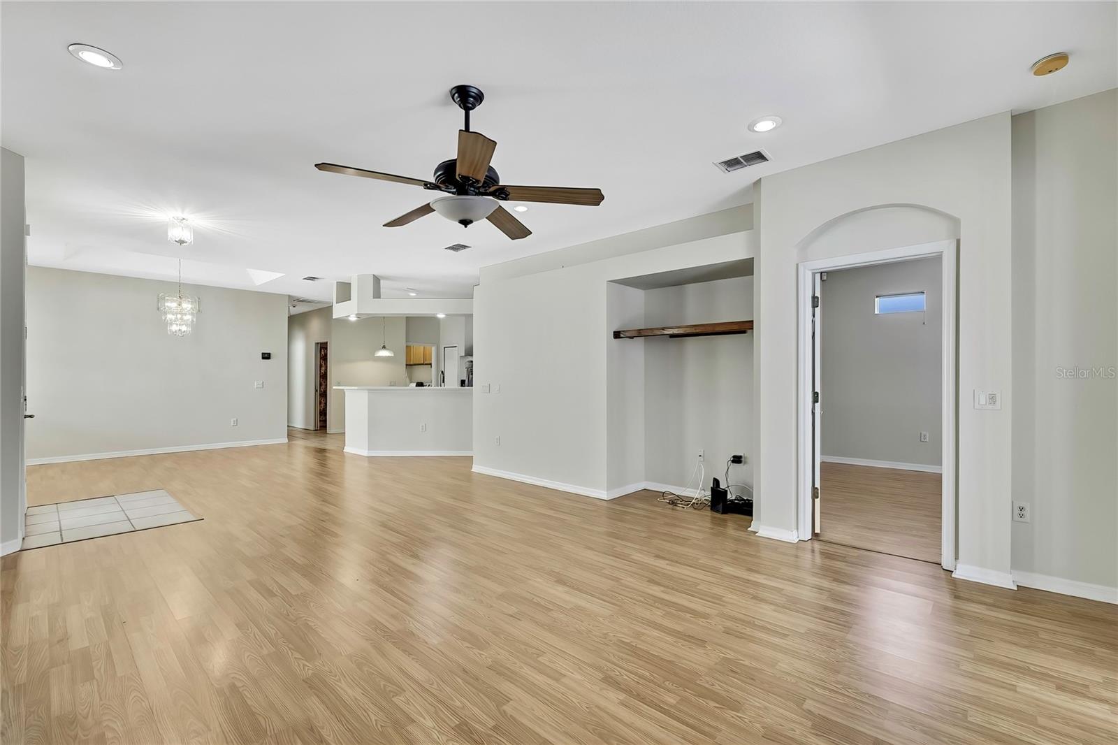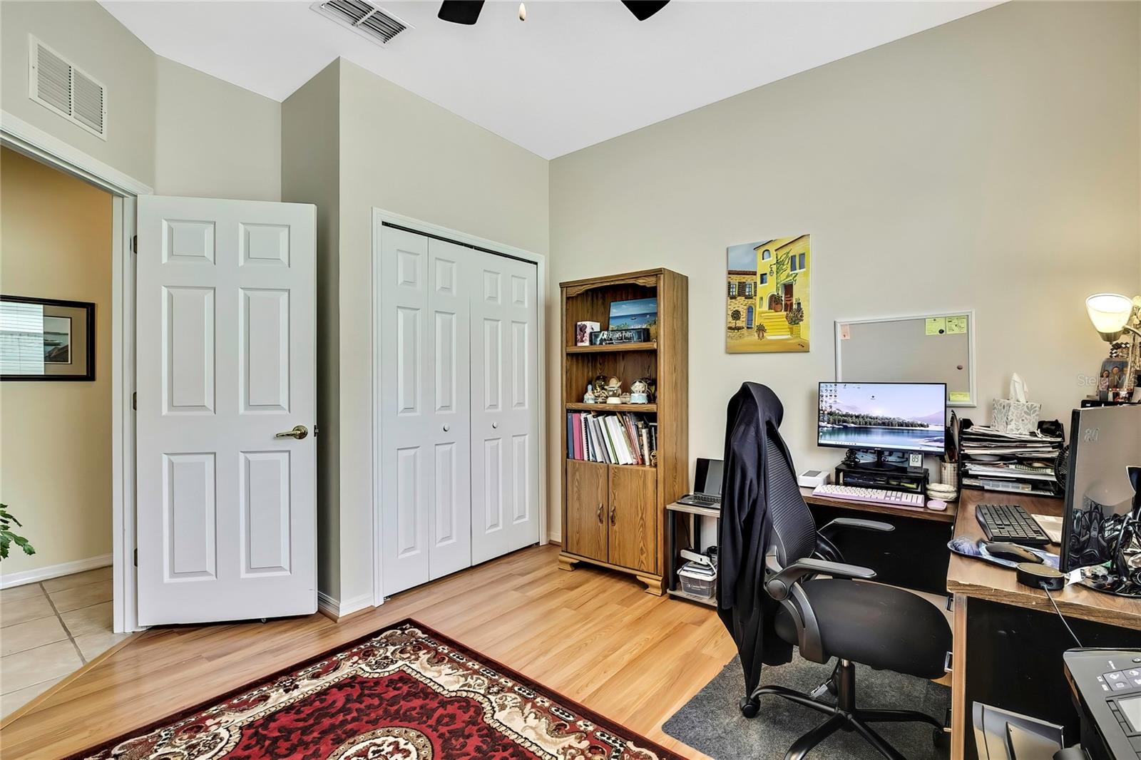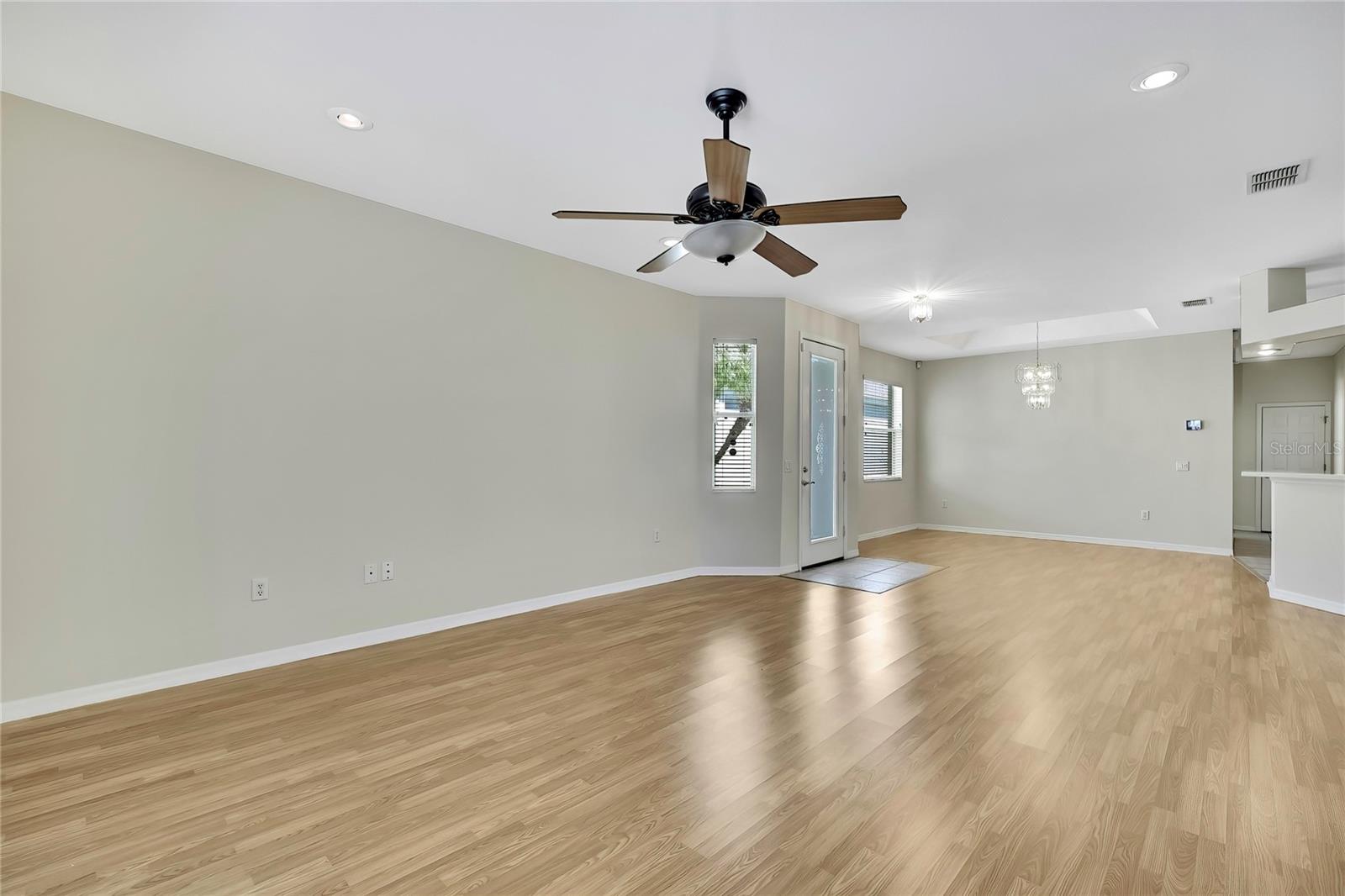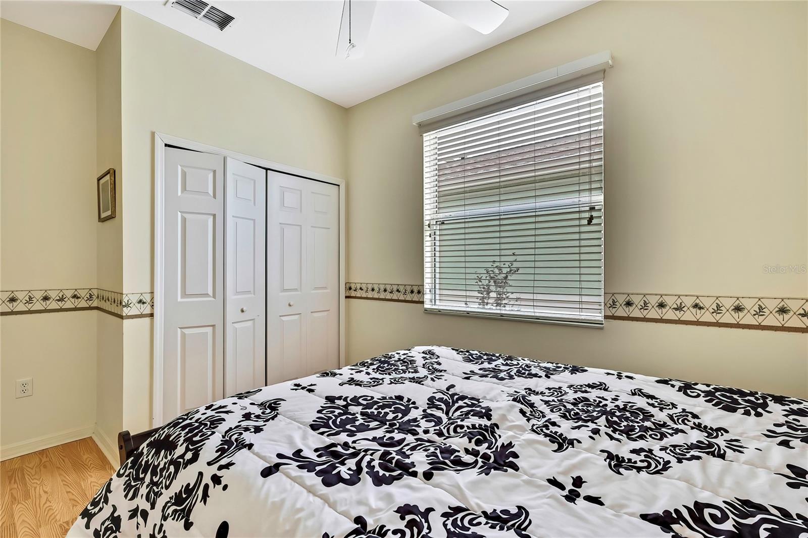 NEW IMPROVED PRICE! Welcome to this warm and lovely home situated on a Cul de Sac with no through traffic. The Groves Golf & Country Club is an active 55+, Gated, Retirement Community. With almost 1700 sq ft, 3 bedrooms, 2 baths, 2 car garage and a GOLF CART GARAGE and a large, screened lanai. Living Room/Dining Room, Master Bedroom Suite have been freshly painted! Warm Laminate flooring through-out the home and Ceramic tile in Kitchen and Bathrooms. Kitchen has Stainless Steel appliances (2022), Corian Countertops and solid wood Cabinets. Trey ceiling in the Dining Room with a beautiful chandelier, sliding glass doors in the living room leading to a large Lanai. Master Bedroom has laminate flooring, Bay window and Ensuite bath with ceramic tile, double vanity, walk-in shower, and oversized walk-in closet. Guest bedrooms are roomy, light and bright with double closets. Inside laundry room with washer and dryer. HOA fee includes NEW ROOF every 15-17 years (Replaced 2021), EXTERIOR PAINT every 7-10 years (2024), Spectrum Internet and TV and Lawn Mowing. Air Conditioner 2018, Stainless Steel Appliances 2022. The Groves is a small and friendly community with 755 homes, with many amenities. 18-hole golf course (rated #1 short course in Tampa Bay), well stocked pro shop, aqua range, clubhouse with a fitness room, library and craft room. Dog park for your furry friends. Many activities in the clubhouse include Karaoke, Trivia, Bingo, Cards, Games. On site Restaurant/Bar. Many clubs to join: Vibrant social club and travel club, community pool, tennis/pickle ball courts, bocce, shuffleboard. Short golf cart ride through the gate and you are at Publix Plaza with restaurants, nail/hair salons, ice cream parlor, dentist, bank. Short 30 min drive to TPA and the Gulf Beaches and an hour away from Orlando!