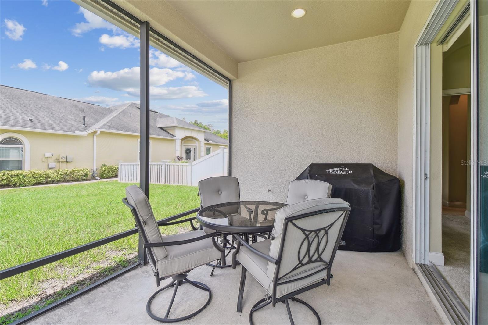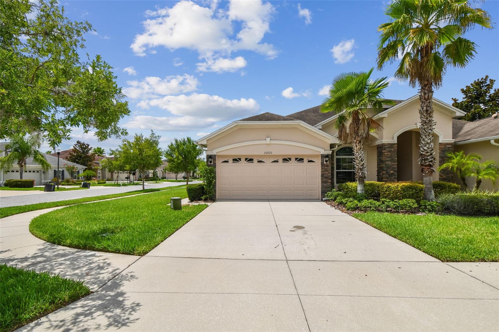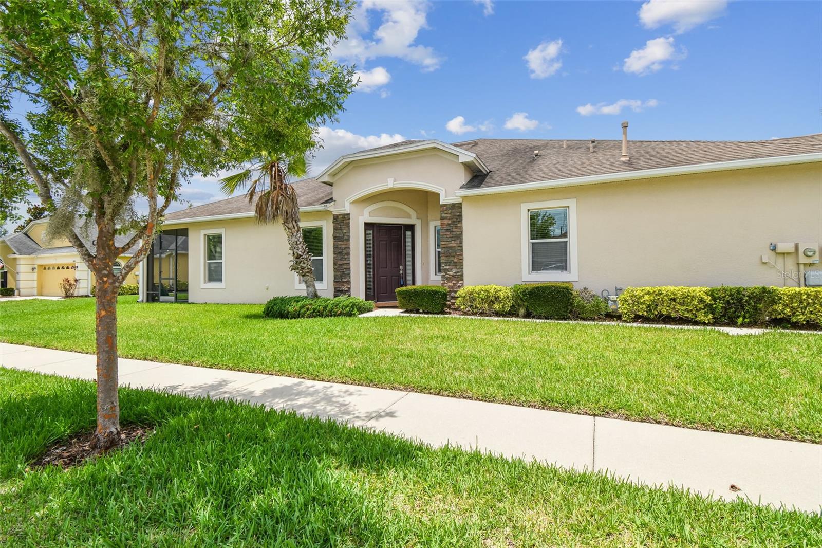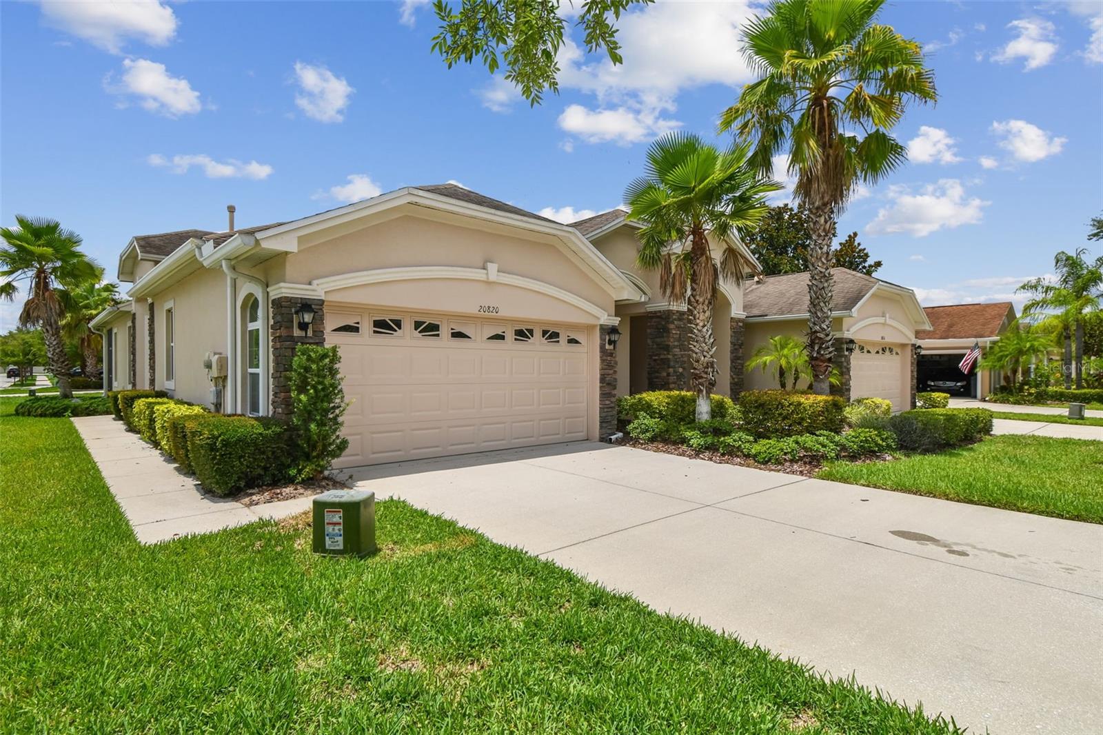 Welcome home in the sought-after Devonwood community of Land O Lakes! This stunning 2-bedroom, 2-bathroom with a bonus room villa offers 1,888 sq. ft. of modern elegance and comfort. Nestled in a serene, all-ages neighborhood, this beautifully maintained home boasts an open-concept floor plan with abundant natural light, perfect for both relaxation and entertaining. The elegant kitchen features black granite countertops, stainless steel appliances, and a spacious island, seamlessly flowing into the dining areas. The master suite is a true retreat with a walk-in closet and a luxurious en-suite bathroom, complete with dual sinks and a walk-in shower. Two additional bedrooms provide ample space for family, guests, or a home office. Enjoy the Florida lifestyle on your private, screened lanai overlooking a peaceful conservation area. Additional highlights include a two-car garage with newly coated floors, low-maintenance living with HOA-covered lawn care, and access to top-rated schools, shopping, and plenty of nearby. Conveniently located just minutes from major highways, this home offers easy access to Tampa and beyond.