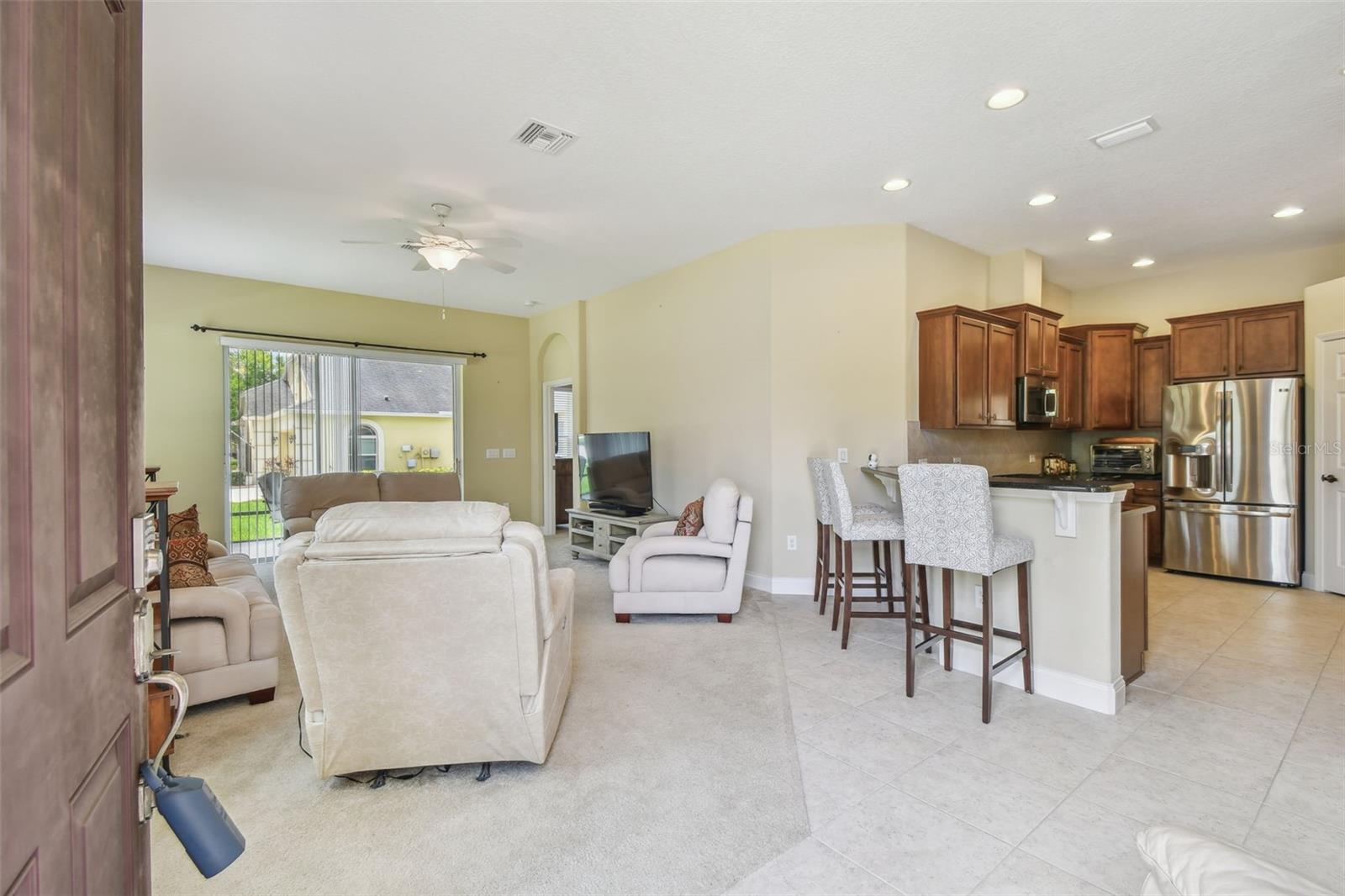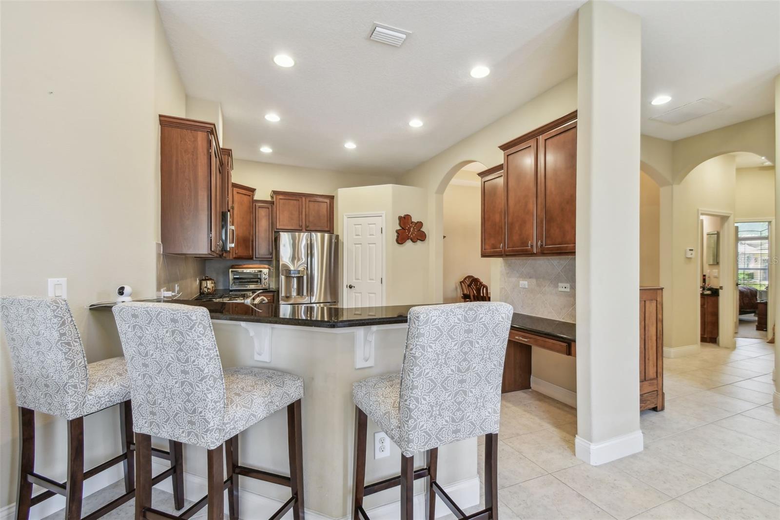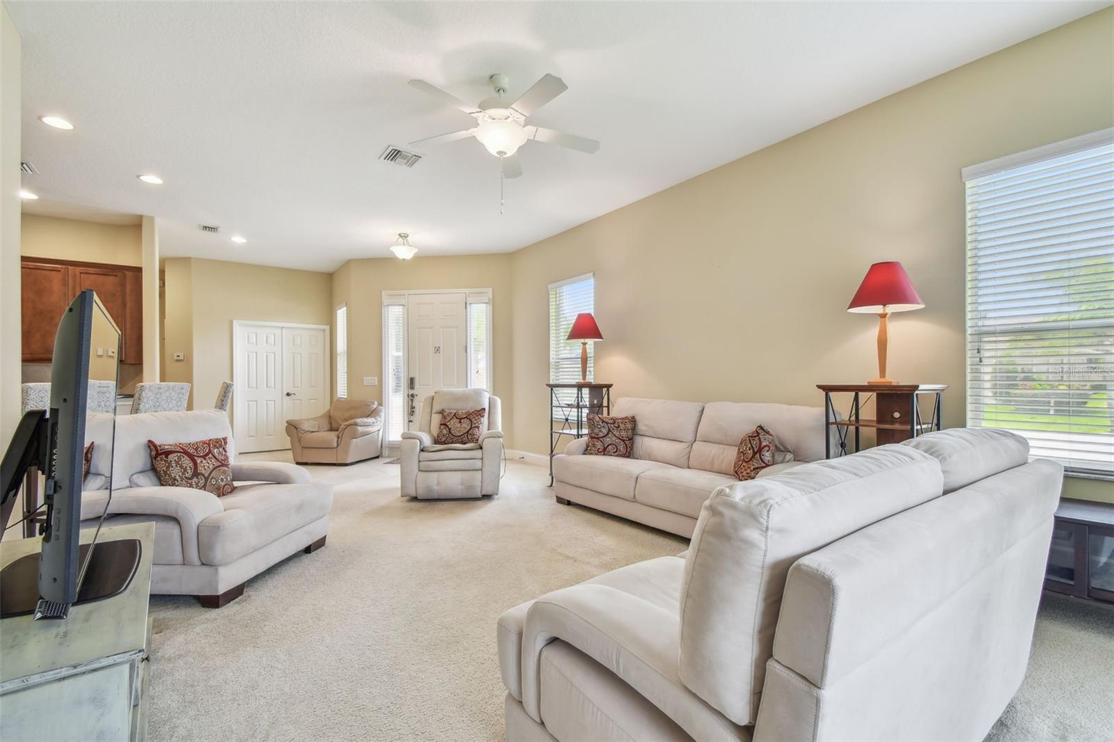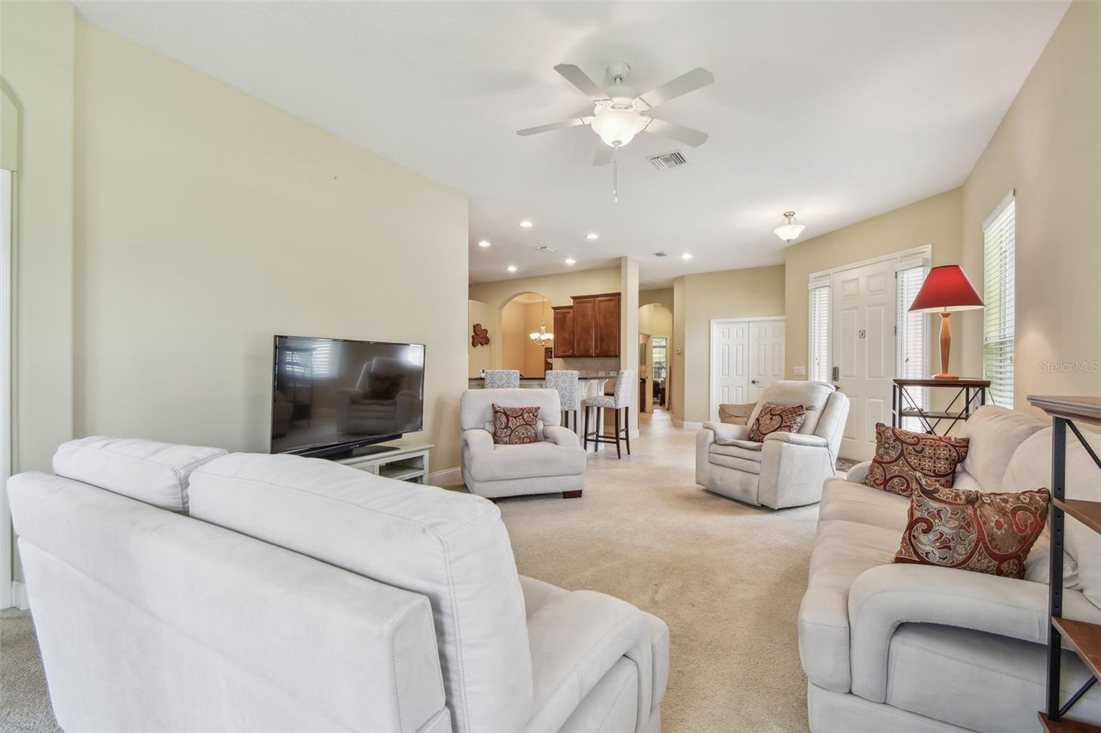 Welcome home in the sought-after Devonwood community of Land O Lakes! This stunning 2-bedroom, 2-bathroom with a bonus room villa offers 1,888 sq. ft. of modern elegance and comfort. Nestled in a serene, all-ages neighborhood, this beautifully maintained home boasts an open-concept floor plan with abundant natural light, perfect for both relaxation and entertaining. The elegant kitchen features black granite countertops, stainless steel appliances, and a spacious island, seamlessly flowing into the dining areas. The master suite is a true retreat with a walk-in closet and a luxurious en-suite bathroom, complete with dual sinks and a walk-in shower. Two additional bedrooms provide ample space for family, guests, or a home office. Enjoy the Florida lifestyle on your private, screened lanai overlooking a peaceful conservation area. Additional highlights include a two-car garage with newly coated floors, low-maintenance living with HOA-covered lawn care, and access to top-rated schools, shopping, and plenty of nearby. Conveniently located just minutes from major highways, this home offers easy access to Tampa and beyond.