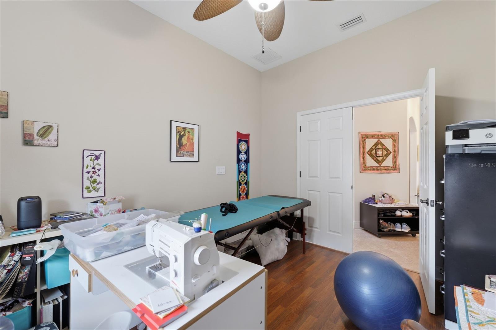 Located in the desirable Devonwood Residential community, this beautifully maintained villa offers 2 bedrooms, 2 bathrooms, home office, formal dining room, and a 2-car garage, all set within a thoughtfully designed layout that blends comfort and functionality. The exterior showcases lush, well-manicured landscaping that is maintained by the HOA, while the covered front entrance with extended length and soaring ceilings creates an impressive arrival. Step inside to a welcoming foyer with tile flooring, where immediately to the left you’ll find both the indoor laundry room, complete with installed hanging racks, and a private home office with double doors and wood-look laminate flooring. The formal dining room sits just in front of the entrance and features a tray ceiling and large arched openings that add architectural elegance. The heart of the home is the open-concept kitchen, living room, and breakfast nook, designed for both everyday living and entertaining. The kitchen offers tile floors, granite countertops, a spacious breakfast bar, real wood cabinetry with crown molding and glass-paneled accent cabinets, stainless steel appliances, a double sink, walk-in pantry, and abundant counter space. The adjoining breakfast nook flows into the living room, where a tray ceiling, multiple windows, and sliding glass doors create a bright and inviting space. The primary suite features wood-look laminate flooring, a tray ceiling, large window, and a spacious ensuite bathroom with tile floors, dual vanities with granite counters, a wall-to-wall mirror, an oversized step-in shower with glass enclosure and grab bar, and a large walk-in closet with a custom organization system. The second bedroom also offers wood-look laminate flooring, a built-in closet, and tall ceilings, while the second bathroom includes real wood cabinetry, granite counters, tile floors, a tub/shower combo, and a window within the shower for natural light. The rear porch is screened and partially covered, providing a comfortable outdoor living space, and the vinyl-fenced backyard is beautifully landscaped for privacy while overlooking a peaceful pond with no rear neighbors. Residents of Devonwood enjoy access to a community pool, making this home an ideal blend of low-maintenance living and relaxed Florida lifestyle.