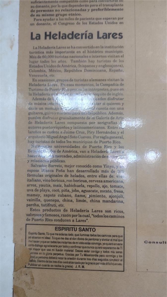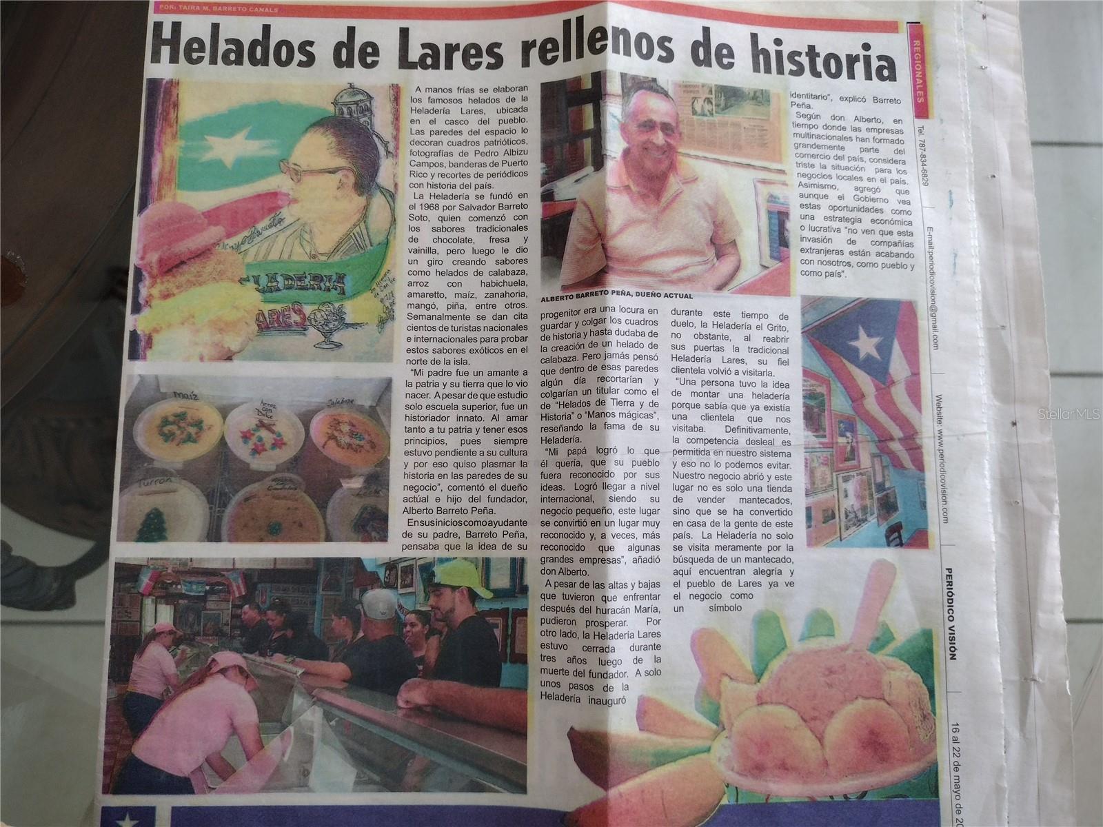Beautiful Vintage apartment with the View of Lares central town. It has 2 stories with 4 bedrooms, 4 balconies (two in front and two in the back), kitchen, living room, two bathrooms, family room and access to the roof terrace with an amazing view. It's beautiful windows and doors, with arches made in mahogany wood, gives a beautiful vintage touch that no other apartment has. From the front balconies you can enjoy every event in the Lares Plaza like The Banana Festival, The Almojábana festival, "Fiestas Patronales", "El Grito de Lares" and many more events throughout the year which, makes it perfect for short term rental. It also includes the WORLD-FAMOUS ice cream shop (heladeria in Spanish) opened since 1968 by Salvador Barreto ("Yinyo"). Today, the shop is operating by the same family, and they still make the same delicious special, and peculiar flavors using Yinyo’s original recipes. The Heladería de Lares also popularly known as The Museum of Lares, have become the center of tourism in Lares town and has been in programs like Don Francisco, international news and food shows, and famous flavors like cilantro (one of my favorites), corn (the most famous), rice and beans, rum, garlic, spicy peppers and many more. Enjoy the particular flavors while learning the history on the walls covered with historical photographs, and newspaper articles about the town, the store, news-worthy events around Puerto Rico and pictures of many celebrities like former presidents of the USA, famous singers, beauty queens, politicians, writers, actors and actresses, famous reportes, cooking shows and more that have visited the ice cream shop to taste their famous particular flavored ice creams. The building, where the store has been located at since 1968, it's currently for sale and it includes access and exclusivity to the family recipes. The deal includes the store with all the equipment, all the historical pictures and everything that makes it a museum of Lares town history. The Ice cream shop opens from 10am to 5 pm but the new owners, not only can open till later but could add franchises of the particular flavors in other parts or the world. Take advantage of this special business opportunity, fully running, with great growing potential, and more importantly, UNIQUE! Call for information, to check the business and have a taste of success. :) Make your offer!!!