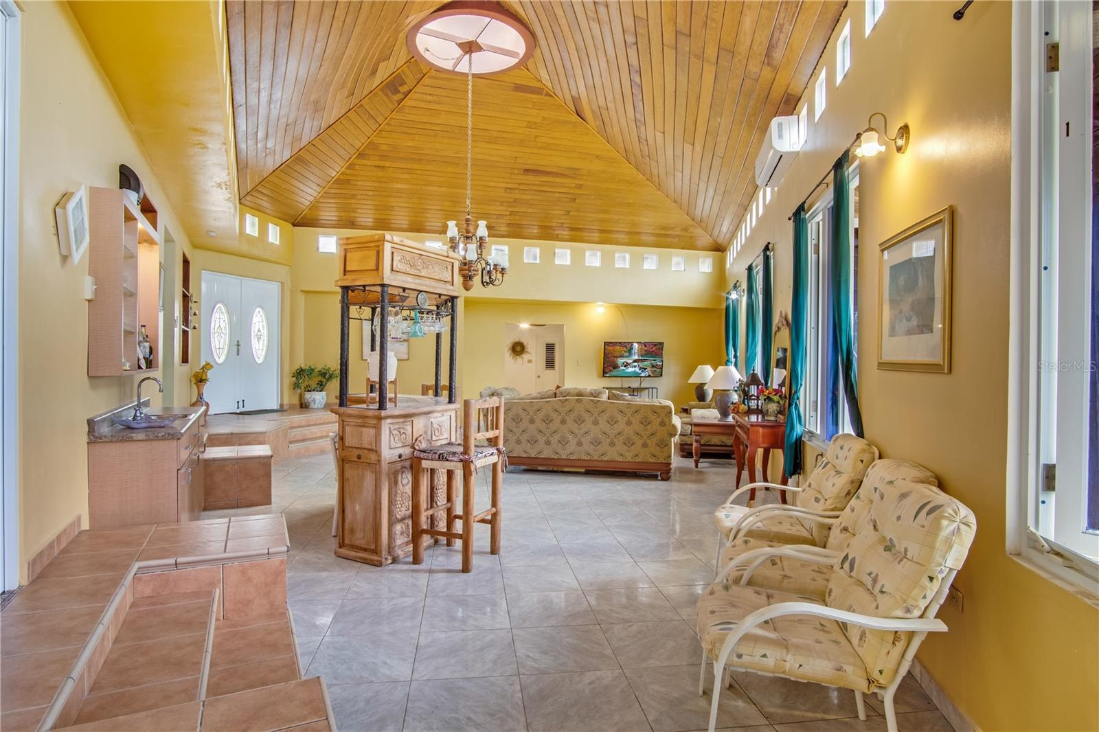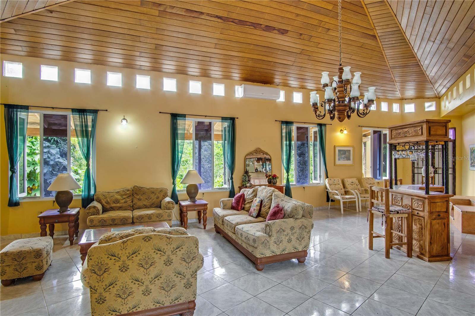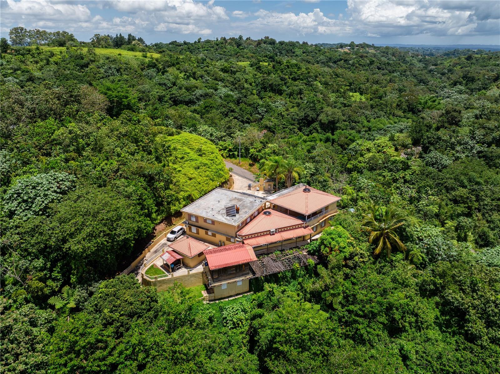 Set on a lush hillside in the mountains of Lares, Puerto Rico, this spacious property offers a unique layout and endless possibilities for customization. With 8 bedrooms, 6 full bathrooms, and 2 half baths spread across two levels, it provides generous space for residential or rental use. The interior features high vaulted ceilings with wood accents, an open living area, and a functional kitchen, while the exterior includes scenic mountain views, a wraparound balcony, and a rustic wooden structure known as "La Tiendita de Don Cando." Whether you're seeking a peaceful residence, a guesthouse investment, or a private retreat surrounded by nature, this hidden gem in Lares delivers endless possibilities.
