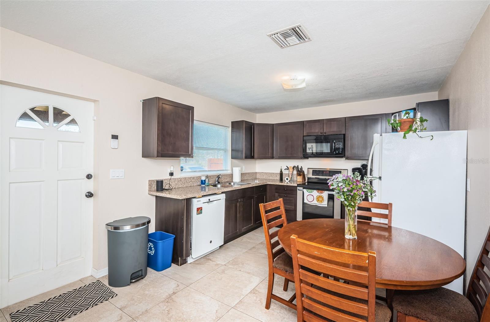 Unique business office opportunity to acquire this solid, 3-bedroom, 2-bath single-family block-construction home on a nice, flat lot, located adjacent to a light industrial, commercial area of Largo. Zoned C-2, the property was grandfathered in for residential use, and can be used for either residential (potential rental property) or commercial purposes. The layout of large great room with living room and kitchen would make an excellent office entry and reception area, and the three bedrooms could serve as individual offices. The kitchen is nicely equipped with granite counters and wood cabinets. All-tile floors throughout the building make for easy maintenance. Each of the bedrooms has a nice closet for storage, and the largest bedroom has an ensuite bathroom and rear door to access the large, fenced back yard. Washing machine and clothes dryer convey with the property. Buyer should consult county zoning department to determine all allowable commercial uses before submitting contract for sale. Current property taxes based on residential use. Off-street parking. Property is located just off the west frontage road of US Route 19 just south of Ulmerton Ave, making it a great location to get to I-275, Pinellas County beaches and Largo-St Petersburg-Clearwater businesses.