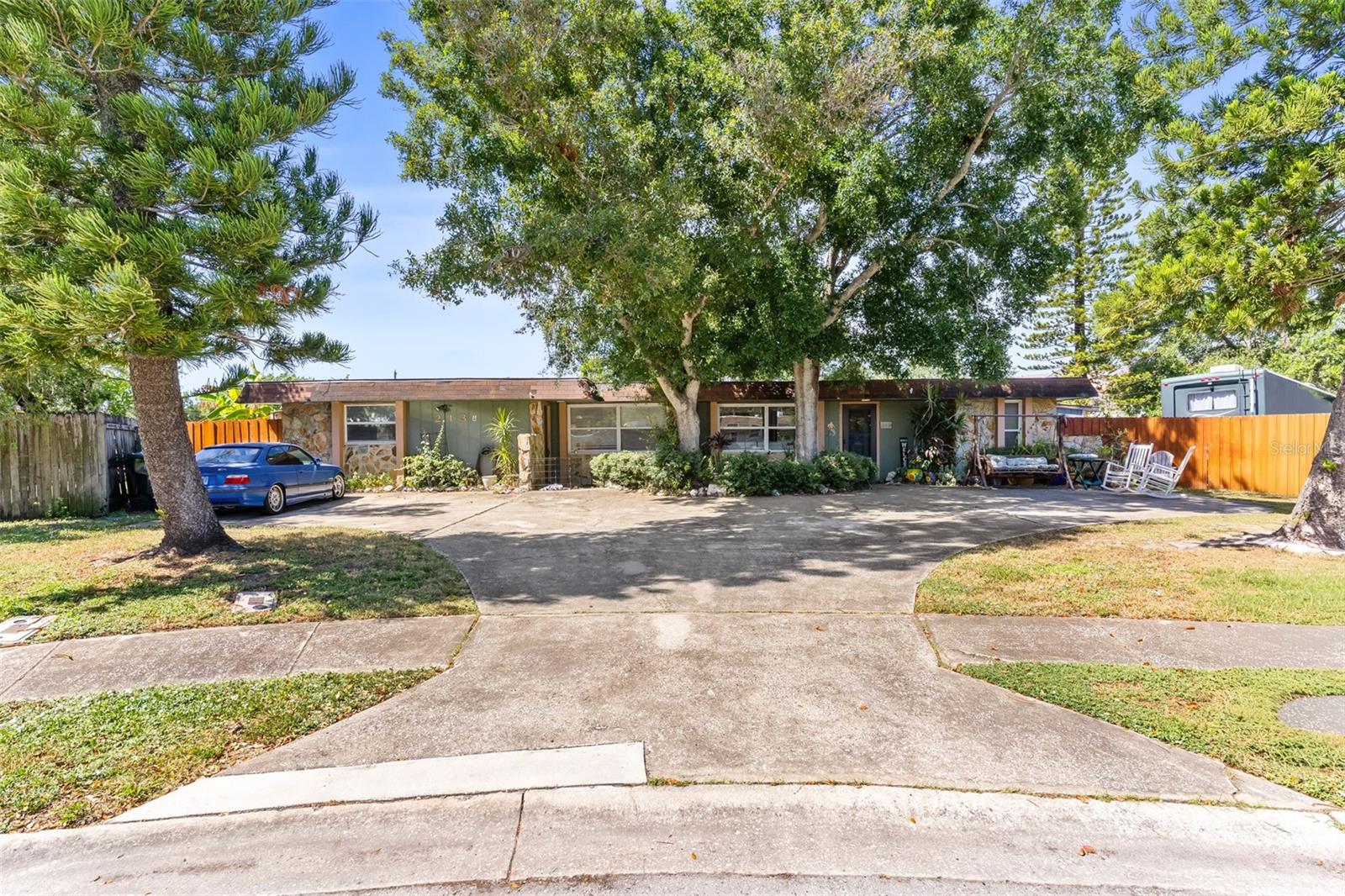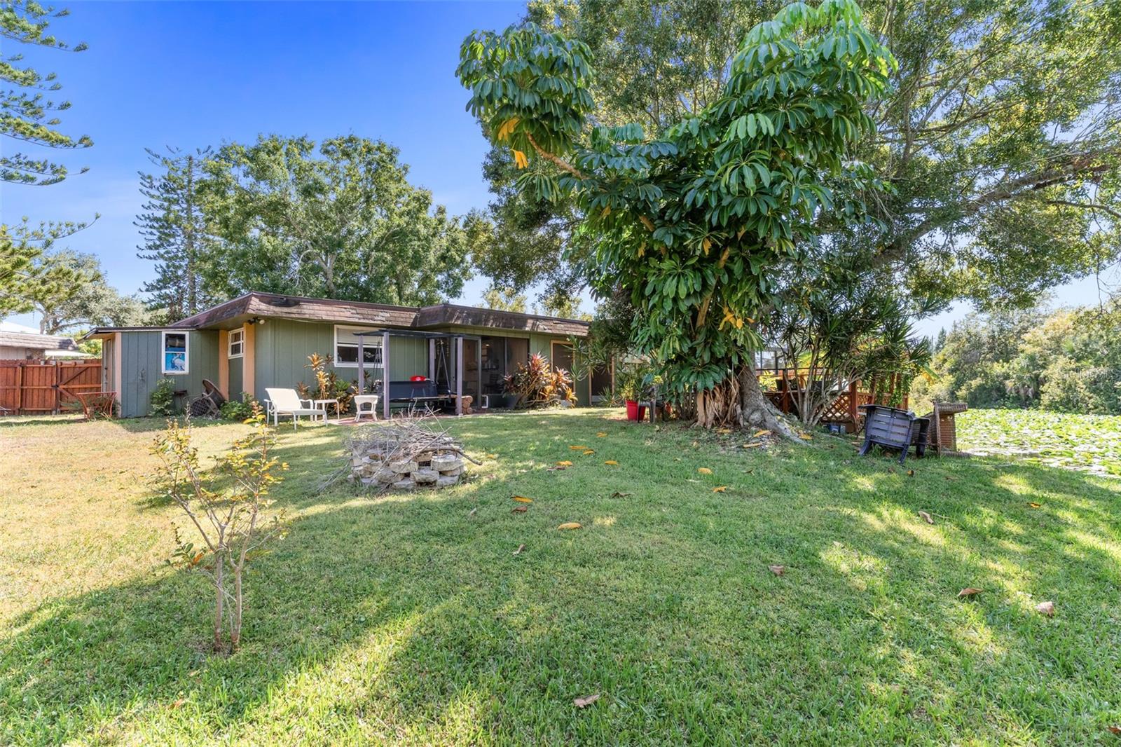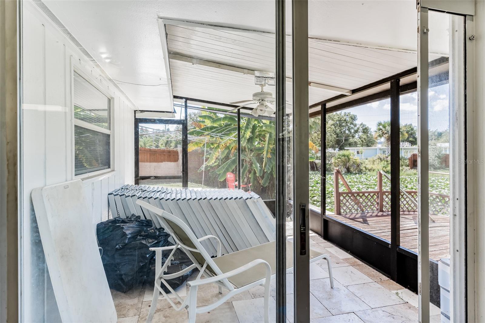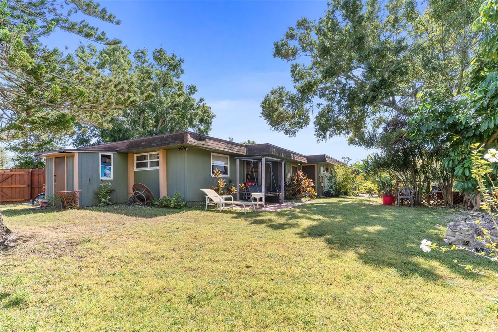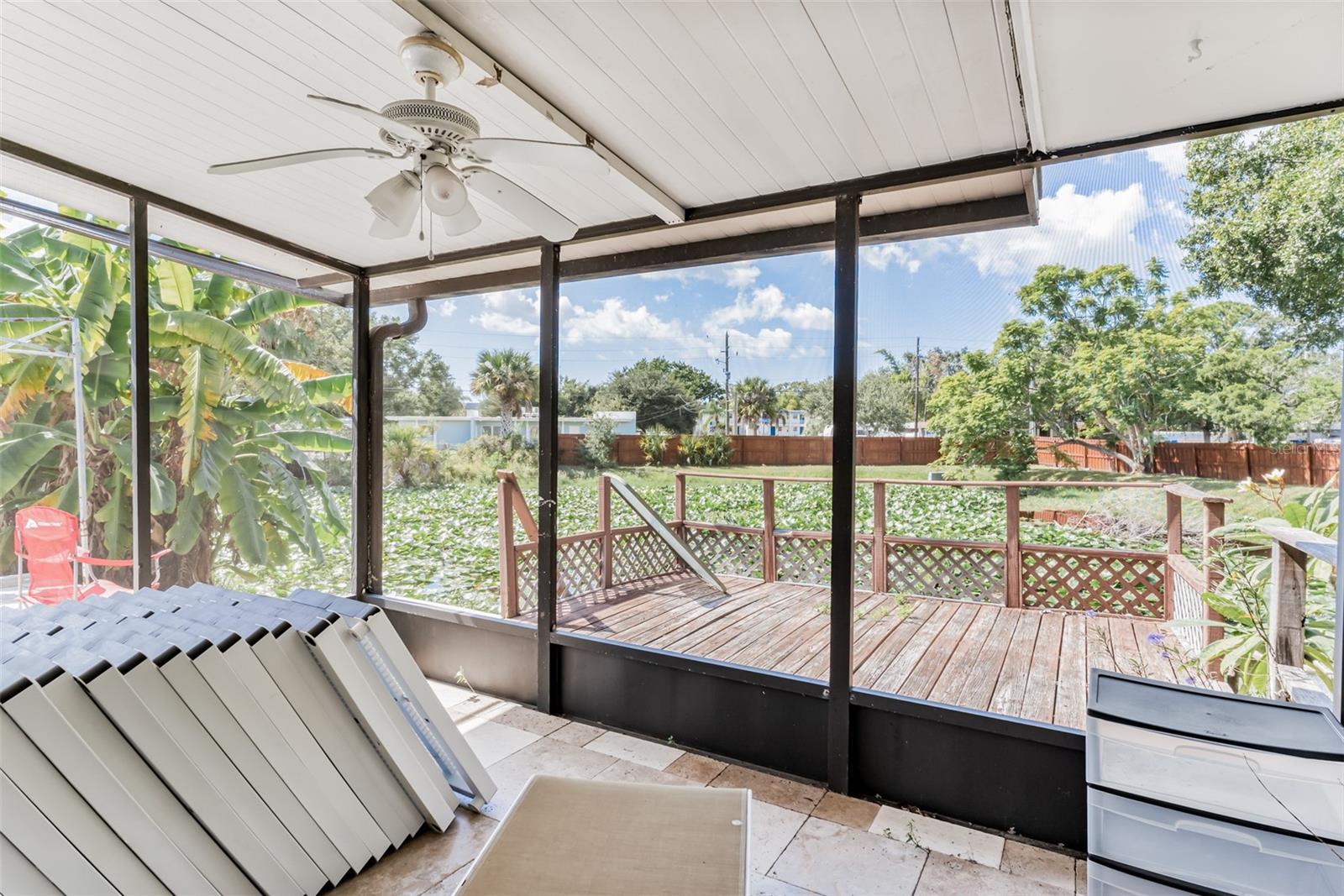 Exceptional waterfront duplex offering substantial income potential. This property features two distinct units: the first is a two-bedroom, one-bathroom unit with an additional den. The outdoor area boasts a screened lanai, a dock, and an expansive tiled space perfect for entertaining, all with stunning water views. The second unit is a tastefully updated one-bedroom, one-bathroom space, also featuring a screened lanai. Both units are equipped with laundry closets with washer and dryer hookups, as well as central air conditioning and heating. The property includes a spacious fenced backyard, ideal for children and pets, and a large parking pad providing ample parking for both units. Situated in a cul-de-sac within a friendly community, the duplex is conveniently located near public transportation, shopping, dining, banks, and medical facilities. Notably, the property has sustained no damage or flooding from recent storms.