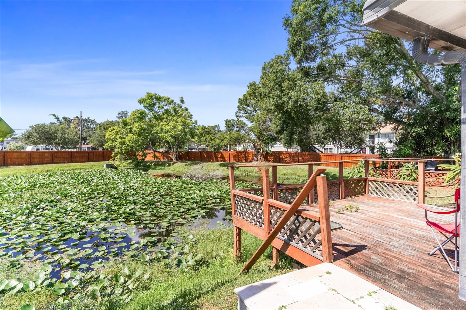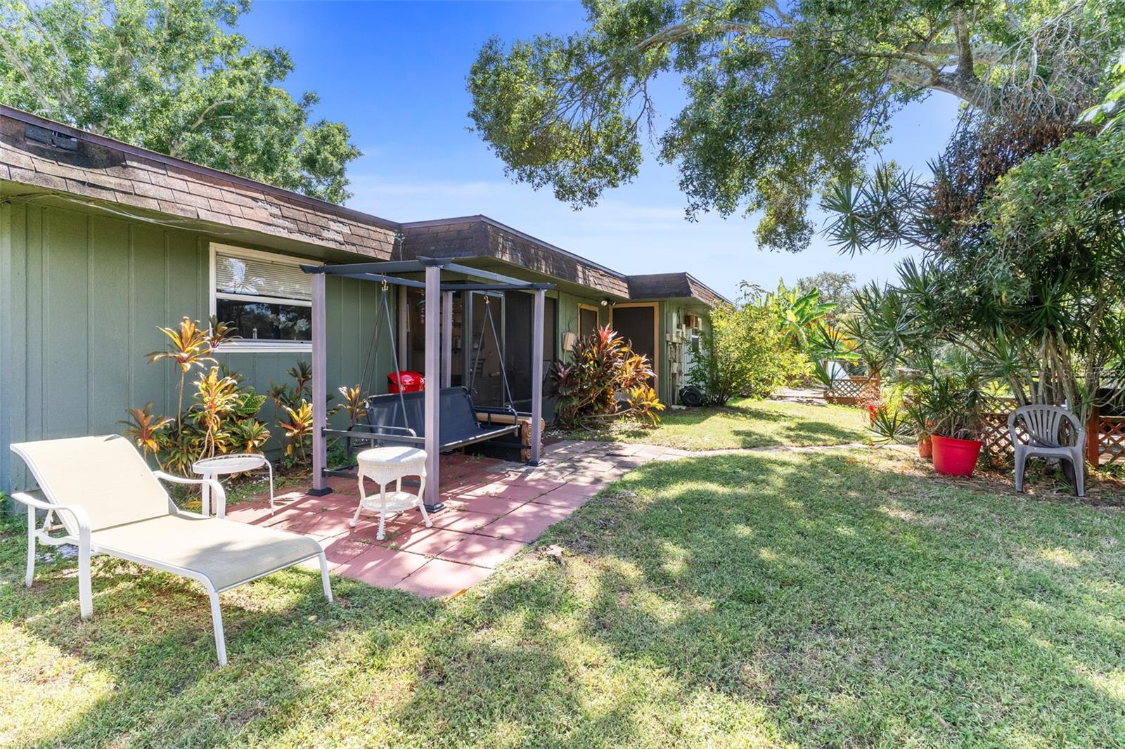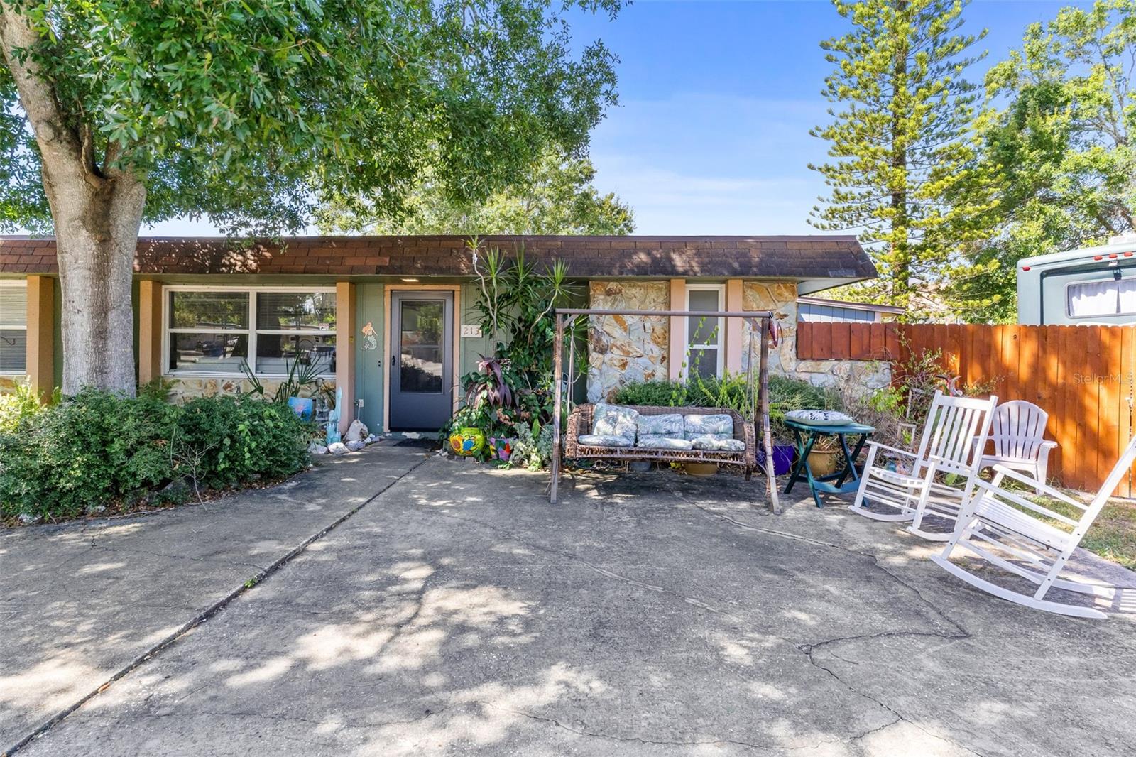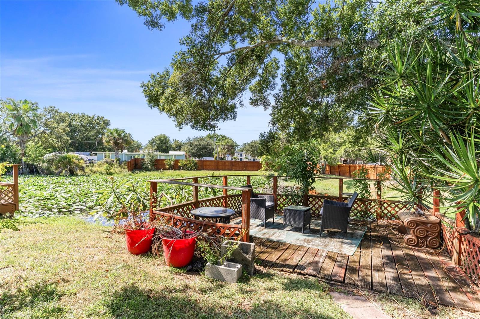 Exceptional waterfront duplex offering substantial income potential. This property features two distinct units: the first is a two-bedroom, one-bathroom unit with an additional den. The outdoor area boasts a screened lanai, a dock, and an expansive tiled space perfect for entertaining, all with stunning water views. The second unit is a tastefully updated one-bedroom, one-bathroom space, also featuring a screened lanai. Both units are equipped with laundry closets with washer and dryer hookups, as well as central air conditioning and heating. The property includes a spacious fenced backyard, ideal for children and pets, and a large parking pad providing ample parking for both units. Situated in a cul-de-sac within a friendly community, the duplex is conveniently located near public transportation, shopping, dining, banks, and medical facilities. Notably, the property has sustained no damage or flooding from recent storms.