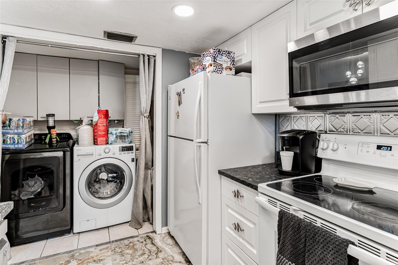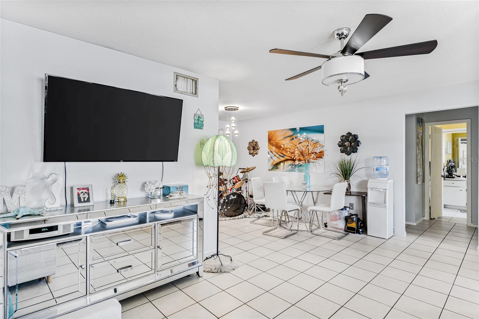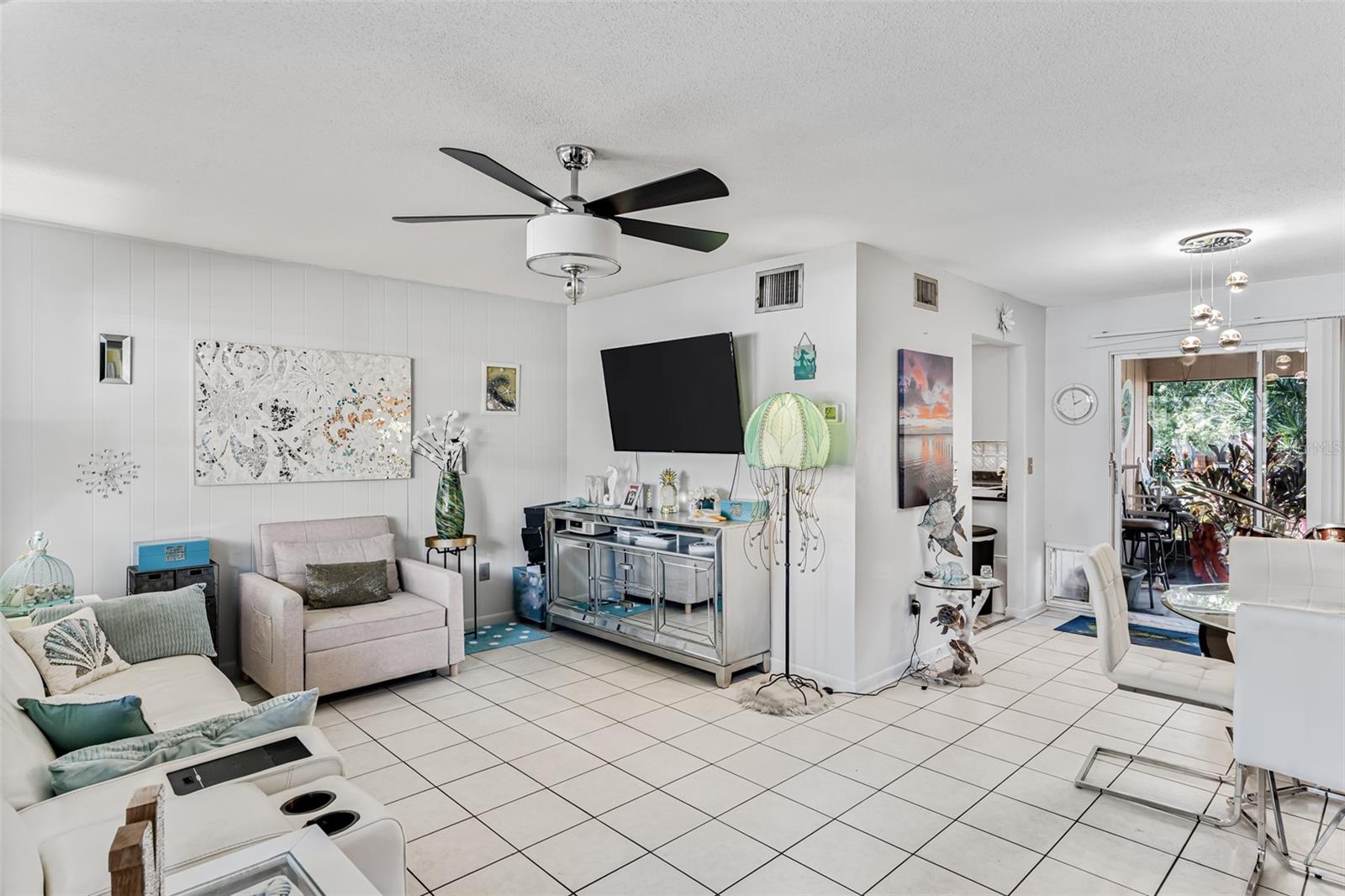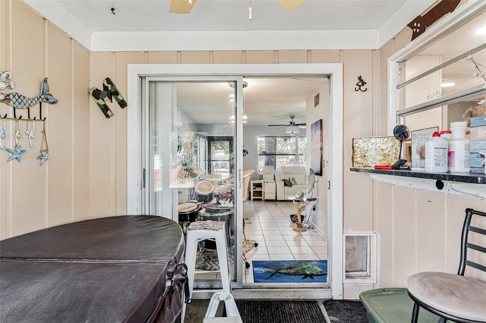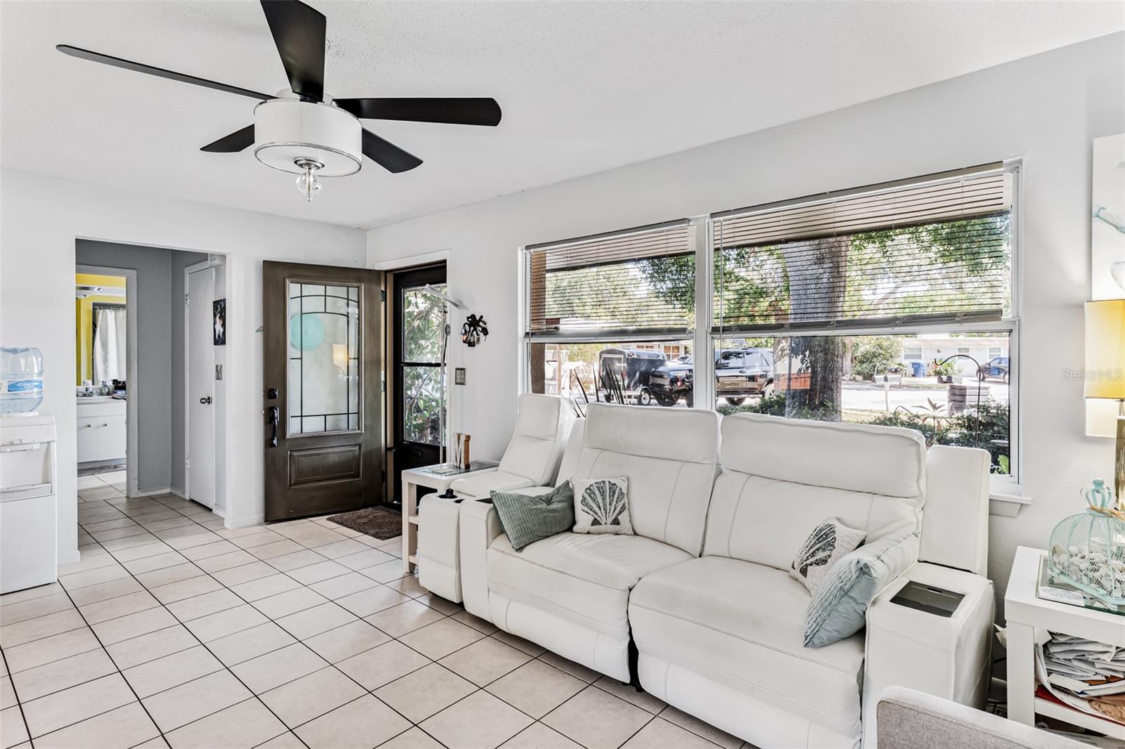 Exceptional waterfront duplex offering substantial income potential. This property features two distinct units: the first is a two-bedroom, one-bathroom unit with an additional den. The outdoor area boasts a screened lanai, a dock, and an expansive tiled space perfect for entertaining, all with stunning water views. The second unit is a tastefully updated one-bedroom, one-bathroom space, also featuring a screened lanai. Both units are equipped with laundry closets with washer and dryer hookups, as well as central air conditioning and heating. The property includes a spacious fenced backyard, ideal for children and pets, and a large parking pad providing ample parking for both units. Situated in a cul-de-sac within a friendly community, the duplex is conveniently located near public transportation, shopping, dining, banks, and medical facilities. Notably, the property has sustained no damage or flooding from recent storms.