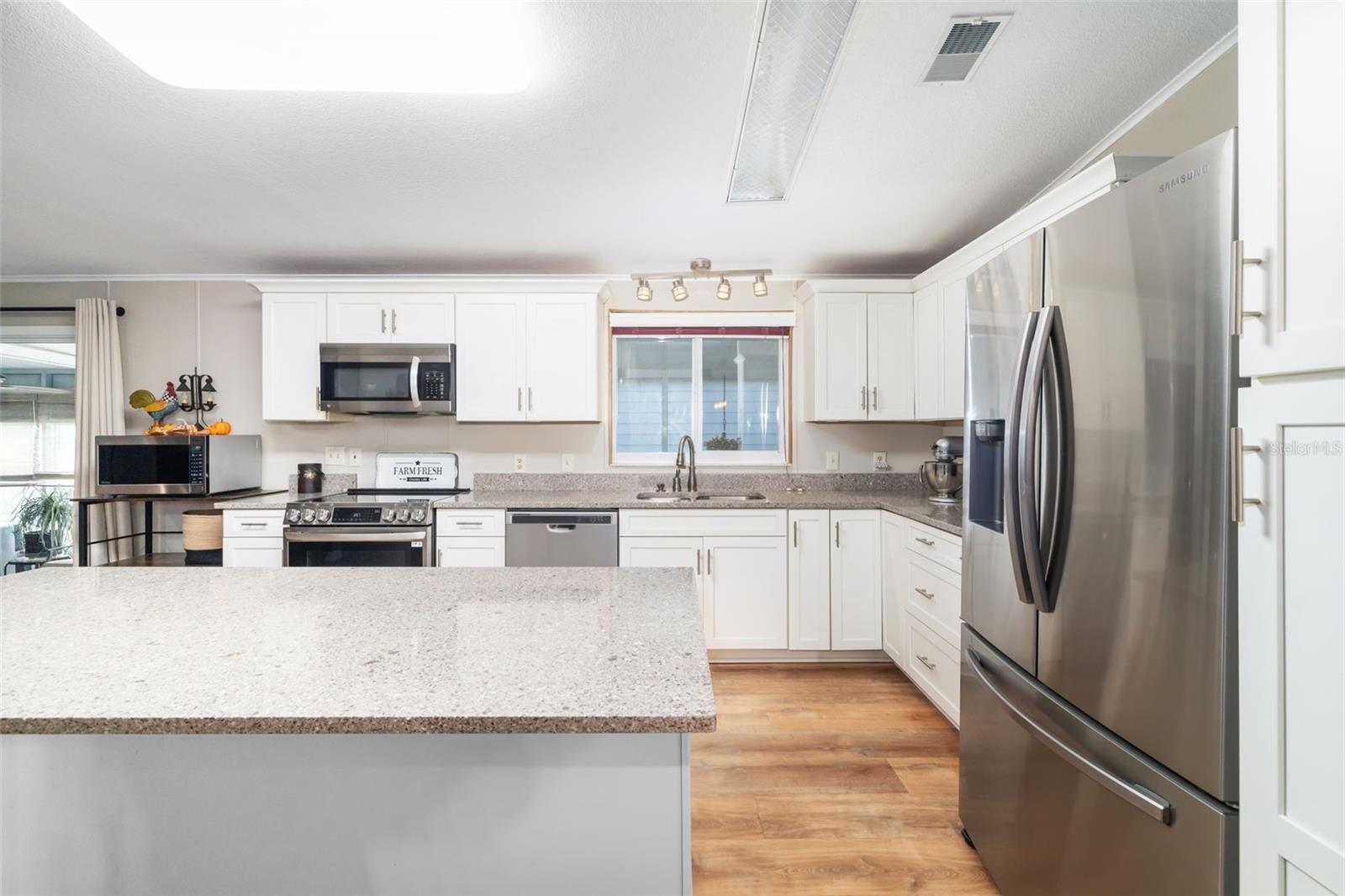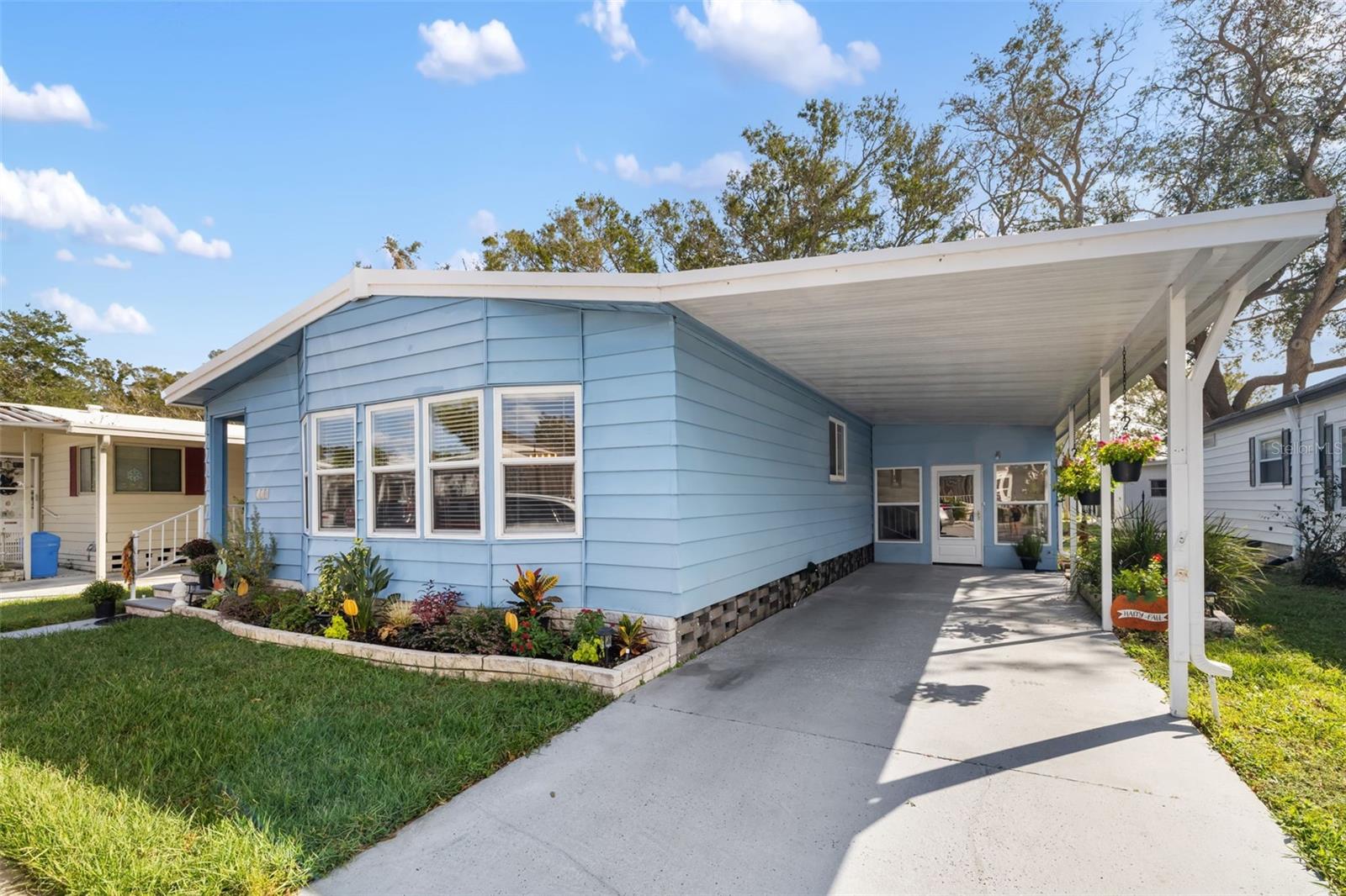 Welcome home to this fully remodeled 3 bedroom, 2 bathroom home in Paradise Island, an exquisite 55+ community. This mobile home offers an abundance of space and convenient amenities designed for comfortable living. Step inside the open floor plan that flows through the spacious living area, kitchen, and dinning area with top of the line Life Proof Laminate floors throughout. The gourmet kitchen offers updated cabinets, quartz counters, and stainless steel appliances. Three generously sized bedrooms provide the perfect space for privacy and relaxation or the use for a private office. The primary suite features a large walk-in closet, dual vanities, and shower. Indoor washer/dryer room with extra storage. Step out through your sliding glass doors to the fully enclosed Lani with a large storage shed off the back. Extra large carport for all your parking needs. This home has tons of upgrades including, new roof in 2020, fully repainted with updated ceiling, landscaping, PGT windows, flooring and much more. Paradise Island has a beautiful in-ground pool/spa and plenty of activities within this community ranging from bingo, karaoke, shuffleboard, pool, dancing, garage sales and even talent shows. There's a library with books, puzzles, games and magazines. The famous Florida beaches are only minutes away and Tampa is 30 minutes. Call today for your showing. Price of home includes owning the share for land. Can be sold separately.