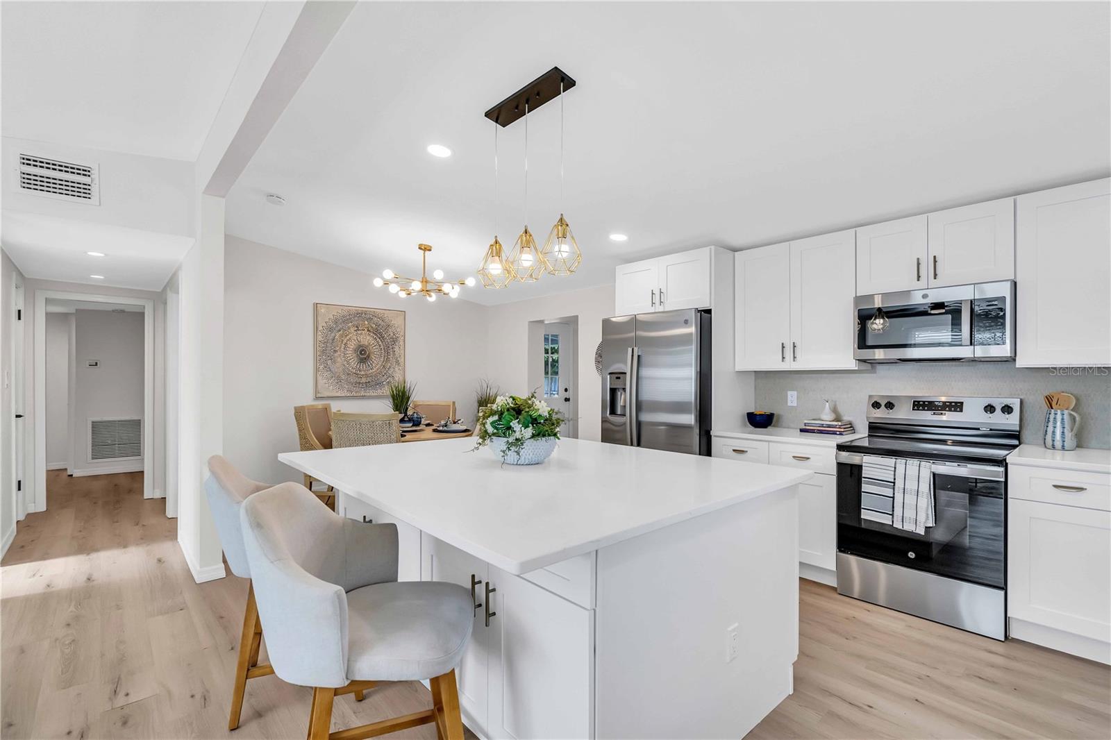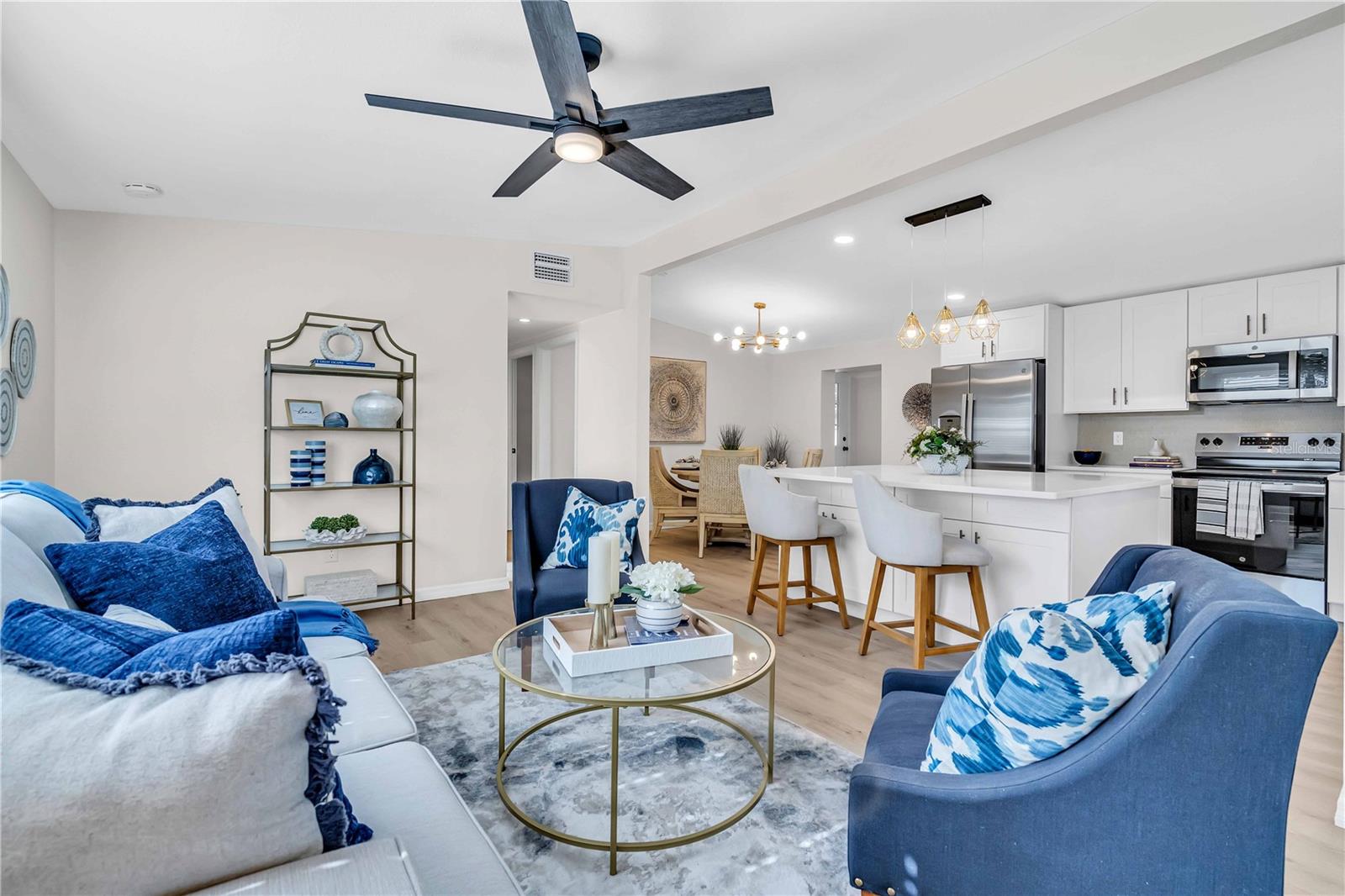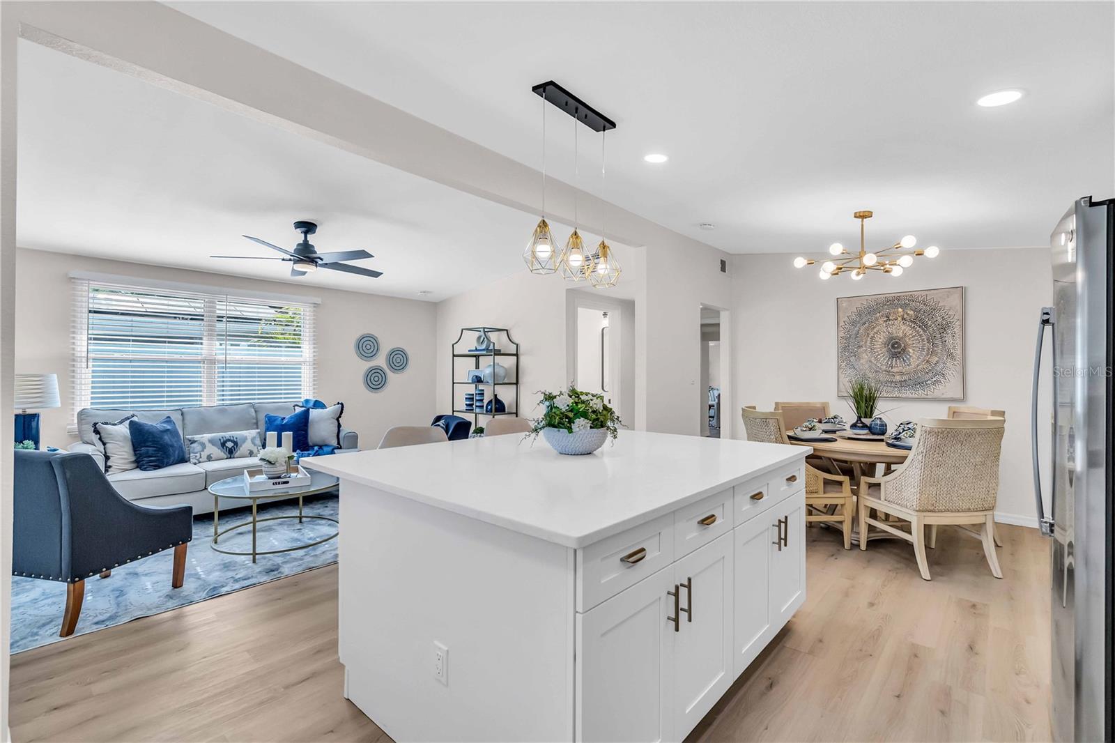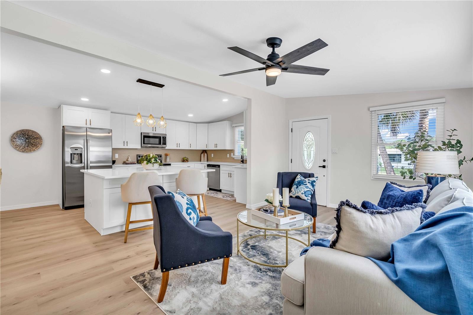 Welcome to your dream home in the highly desirable Indian Rocks Village! This stunning 3-bedroom, 3-bathroom ranch-style residence offers an open-concept layout designed for modern living. The spacious eat-in kitchen features a large island, a separate dining area, and brand-new stainless-steel appliances. Stylish and durable vinyl plank flooring flows throughout the home, combining elegance with easy maintenance. The master suite is a private retreat with a walk-in shower, a spacious walk-in closet, and room to unwind. A separate family room provides additional space for gatherings or relaxing evenings, while the inside laundry room adds everyday convenience. Step outside to your own backyard oasis! The fully fenced yard is perfect for pets, play, and entertaining. Relax under the covered side lanai, or enjoy evenings by the pergola and fire pit—a perfect spot for outdoor gatherings. Nestled in a peaceful neighborhood with easy access to Indian Rocks Beach, this home offers the ideal blend of comfort, style, and location. Don’t miss this incredible opportunity to own a piece of paradise in Indian Rocks Village!