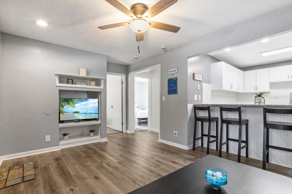 Step back in time and embrace the charm of this updated 1930s gem nestled in the heart of Largo, FL. Upgrades include full roof replacement in 2020, new AC in 2018, and new vinyl plank flooring in living room, den/office, and master bedroom. This quaint yet spacious home boasts timeless character combined with modern comforts, making it the perfect blend of old-world elegance and contemporary living. Welcome to this beautiful 3 bedroom, 2 bath home featuring an open concept kitchen, spacious living room complete with a breakfast bar, and a bonus room perfect for a den or office. The split floor plan finds the guest bath with two bedrooms in the front of the house while the primary suite is located in the rear of the home offering serenity overlooking the large backyard. Make laundry a breeze with an indoor laundry room which is located just off the kitchen. The master suite is separated from the rest of the house by a bonus room that makes for a perfect office or studio and features a deep closet along with access to a fully screened, large lanai to enjoy evenings outdoors. The ample master suite easily accommodates a king-size bed and has vaulted ceilings, a deep hanging closet, massive walk-in closet, and an ensuite bath. Enjoy the peaceful screened-in lanai ideal for al fresco dining or simply enjoying the Florida sunshine overlooking an oversized, fully fenced-in yard with a shed for more storage. Conveniently located steps away from Lake View Park and minutes from shopping, restaurants, airport, and some of the best beaches in Florida