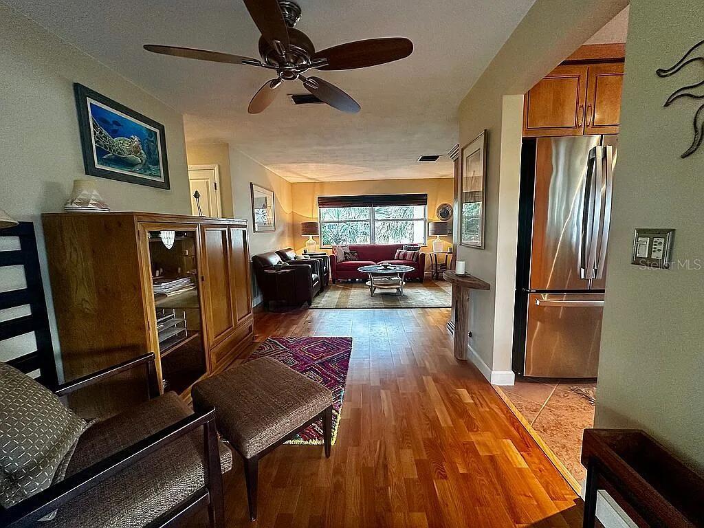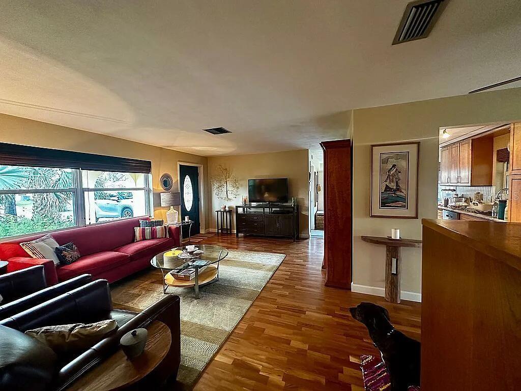 Elevated Waterfront Gem on Allen's Creek (Tampa Bay access), appraised at $496K. A Nature Lover's Dream - dock with room for 20+ ft boat and room for a pool! Tucked away on the tranquil brackish waters of Allen's Creek, this charming 2-bedroom, 1-bathroom home with an attached 1-car garage offers a unique blend of modern comfort and natural beauty. With approx 100 feet of waterfront where manatees and dolphins play, this property is a slice of paradise. The expansive lot is beautifully landscaped with mature trees front and back yard, FL native landscaping. It's great for outdoor activities such as fishing, boating, paddleboarding or kayaking and entertaining via the large screened in back porch. Inside, you'll find a renovated kitchen, Stainless-Steel Appliances, including a refrigerator, dishwasher, stove with a vented range hood, solid wood cabinets and granite countertops. The bright and airy dining room looks out to the open backyard patio. The spacious floor plan includes solid wood floors, tile with new lighting fixtures and ceiling fans. Two large bedrooms with privacy and comfort. Recent upgrades include a whole house water filtration system, hurricane shutters, updated windows and ceiing sun window in bath. The expansive backyard features a patio for relaxing and entertaining, and a reclaimed sprinkler system to maintain the lush landscape. Located just over a mile away from Eagle Lake Park with its 162 acres of amenities, and under 2 miles from Largo Central Park with a community center and a library next door, this home offers convenient access to many activities. Enjoy nearby beaches like Belleair, Sand Key and Clearwater, explore the Clearwater Marine Aquarium and marina, as well as a quick route to the St Pete and Tampa International airports. With a variety of restaurants and spring training fields within easy reach, this home on Allen's Creek is a rare find. The major added bonus is how elevated the land is, so no worry about flooding while enjoying water living!