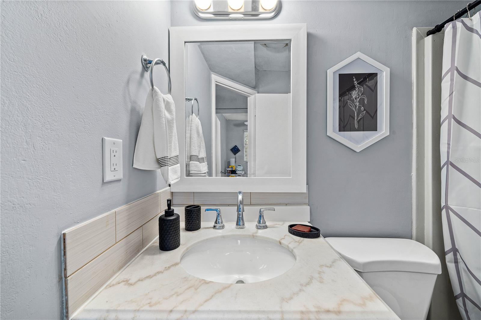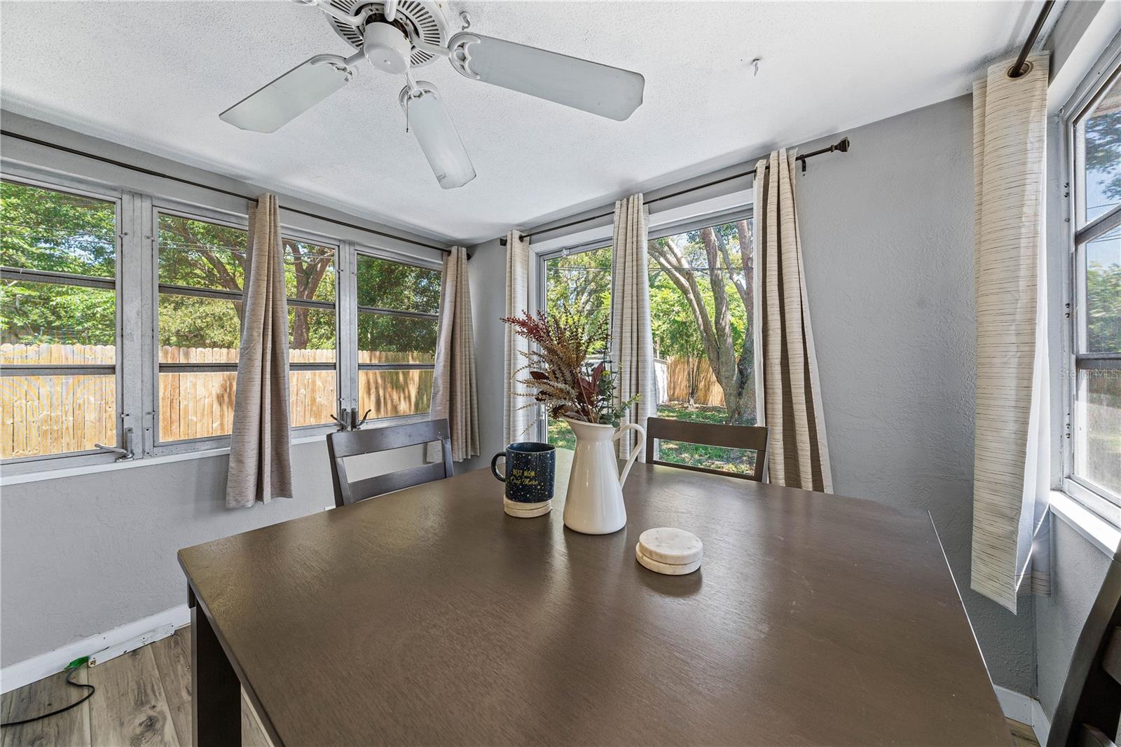 Back on market! The last buyer's financing fell thru. Their loss is your reward!! Welcome to Your New Home! Step into this delightful and cozy 2 bed, 1 bath home, perfect for first-time homebuyers and those looking for a charming starter home. Located in a rapidly up-and-coming neighborhood, this newly renovated gem is move-in ready and waiting for you! The entire home features new luxury vinyl flooring, complemented by fresh interior paint that adds a bright and welcoming feel. The kitchen is a true highlight, boasting beautiful quartz countertops, a stylish tile backsplash, and pristine white cabinets. The open concept design seamlessly connects the living room, dining area, and kitchen, creating a spacious and inviting environment perfect for both relaxing and entertaining. The bathroom has been tastefully updated with a clean, modern aesthetic. Throughout the home, new light fixtures add a touch of elegance, and practical updates such as a newer water heater ensure comfort and efficiency. Rest easy knowing the roof, HVAC, plumbing, and electrical systems are all in excellent condition. Outside, you'll find a large backyard with a brand new cement deck, ideal for outdoor gatherings and leisurely weekends. The exterior has been refreshed with new stucco, rain gutters, and updated landscaping, enhancing the home's curb appeal. Additionally, enjoy the convenience of a carport and outside storage closet. With no HOA, CDD, lease restrictions, or flood zone concerns, you have the freedom to truly make this house your own. Convenience is key, as you're located under a mile from shops, gas stations, restaurants, grocery stores, and gyms. Plus, the beach is less than 15 minutes away! Don't miss this fantastic opportunity to own a beautifully renovated home in a promising area. Schedule a viewing today and make this dream home yours!