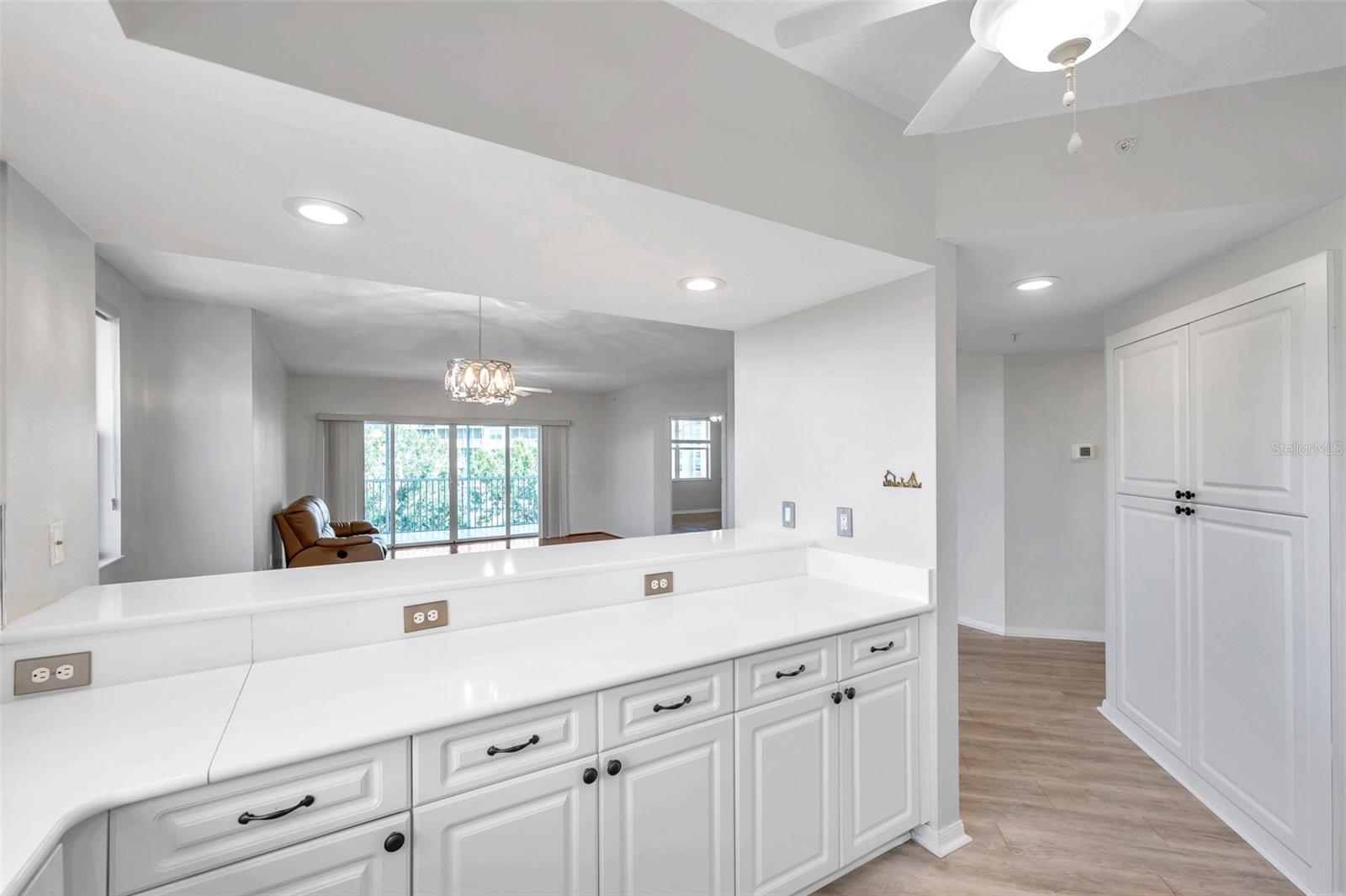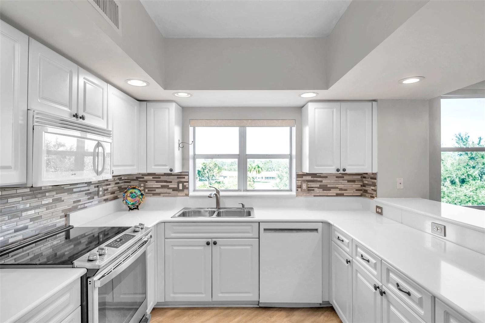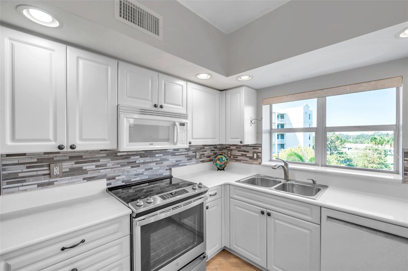Price improvement #4301 to $445,000 from $460,000!!! The Lowest priced 3/2 corner condo at Country Club condos!! These are the most well built condos with SOLID CONCRETE construction and are located in a NON FLOOD ZONE! Come experience resort style living at its finest with NO worries about HURRICANE impacts since these condos are both ELEVATED and SECURE! The 1st Milestone Inspection is 10 years away. As you walk into this 3 Bedroom, 2 bathroom corner PENTHOUSE condo you will see the expansive views of the golf course and serene landscape of nature and wildlife. There are literally windows with a view in every room except the bathrooms and the laundry room. You will also notice how quiet it is in this community. The split floor plan gives privacy for all. The kitchen and dining room flow into the living room with almost 9 foot Ceilings. The kitchen has beautiful quartz countertops, a breakfast bar, stainless steel appliances, beautiful backsplash and a custom built in pantry. From the living room the sliders lead you to the screened in lanai where you can enjoy your morning coffee or sip a glass of wine in the evening. There is also a door that opens to the lanai from the primary bedroom, what a sweet escape. The primary bedroom is quite the retreat with great sized his & hers walk-in closets, an EnSuite bathroom with dual granite vanities, double walk-in bench shower and a pocket door to your own private toilet with linen closet. On the other wing of the condo are the guest bedrooms that share a bathroom with tub/shower combination. Almost $40k in upgrades and improvements include: vinyl planking in primary bathroom, bedroom 2, guest bathroom, entryway, hallway, kitchen, and laundry. The washer & dryer, the stainless steel fridge, stove, dishwasher were all purchased in 2022. The AC & water heater were bought last year. There are beautiful granite countertops in both bathrooms. There is a large laundry room with plenty of space for storage as soon as you walk in the door. And let's talk about all storage in this condo, storage for days!! This condo conveys with your own private garage #11 is 16'x20' oversize and under building. And you can have a golf cart, which will fit perfectly in the garage! Country Club Condominiums are Largo's hidden gem with outstanding management and amazing maintenance. Enjoy multiple community amenities – gated heated pool & spa, recently renovated and resort style clubhouse with full kitchen, lounge area, private meeting room. The HOA has truly turned this community into a resort with new LED landscape lighting to showcase for all the new palm trees and greenery. It is a must see in the evening! Plus low cost country club lifestyle and golf without membership fees but with bar & snack bar open daily to all residents. Fantastic location along the East Bay Golf Course which is centrally located within a 15 min drive to the sparkling waters of the Gulf beaches, shopping, medical facilities, restaurants and airports. This is definitely a solid investment for either your primary residence or a home away from home. Come see for yourself how great it will be to live in a resort style community and not have to worry about any Hurricanes ever again! Schedule your showing today and make this Secure and Elevated Condo your home.