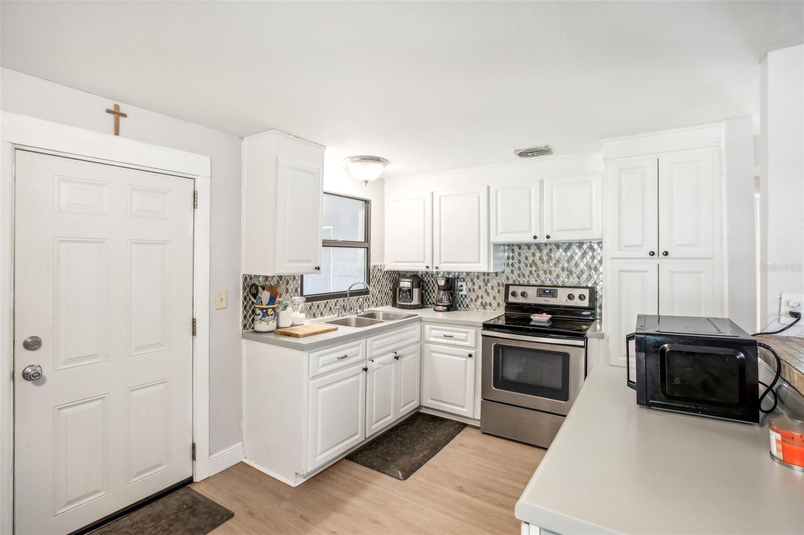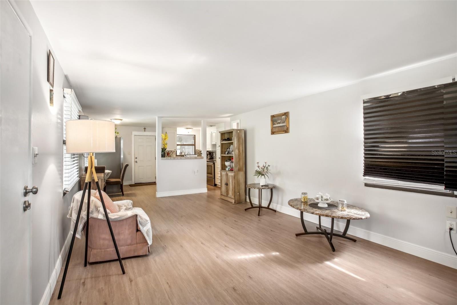Fantastic location! No Flood Zone! This adorable home sits in a great location that is nice and dry, evacuation zone D. NO DAMAGE IN RECENT STORMS! Wonderful 2 bedroom 1 bath has a LOT to offer. NEW ROOF (2023) NEW WATER HEATER and NEW LUXURY VINYL FLOORING. 2 NEWER Mini-Spit AC units that will keep you nice a cool on hot Florida days. This gem of a home has been freshly painted inside and out. You will be impressed by the large backyard with ample storage and the privacy that the NEW VINYL FENCE offers. If that wasn't enough you will also be able to pick your own tropical fruit from a variety of mature fruit trees or just relax in the shade in the large screened in Florida room. If you are looking for a great starter home or just looking to downsize, or a home away from home this is for you. Close to everything a person could ask for! Easily commute to Tampa or St Petersburg from this very convenient location. Tampa International Airport is 17 miles away for avid travelers, while our Gulf of Mexico beaches are a short 6 mile drive! This home is in a NON FLOOD ZONE, NO HOA, NO CDD!