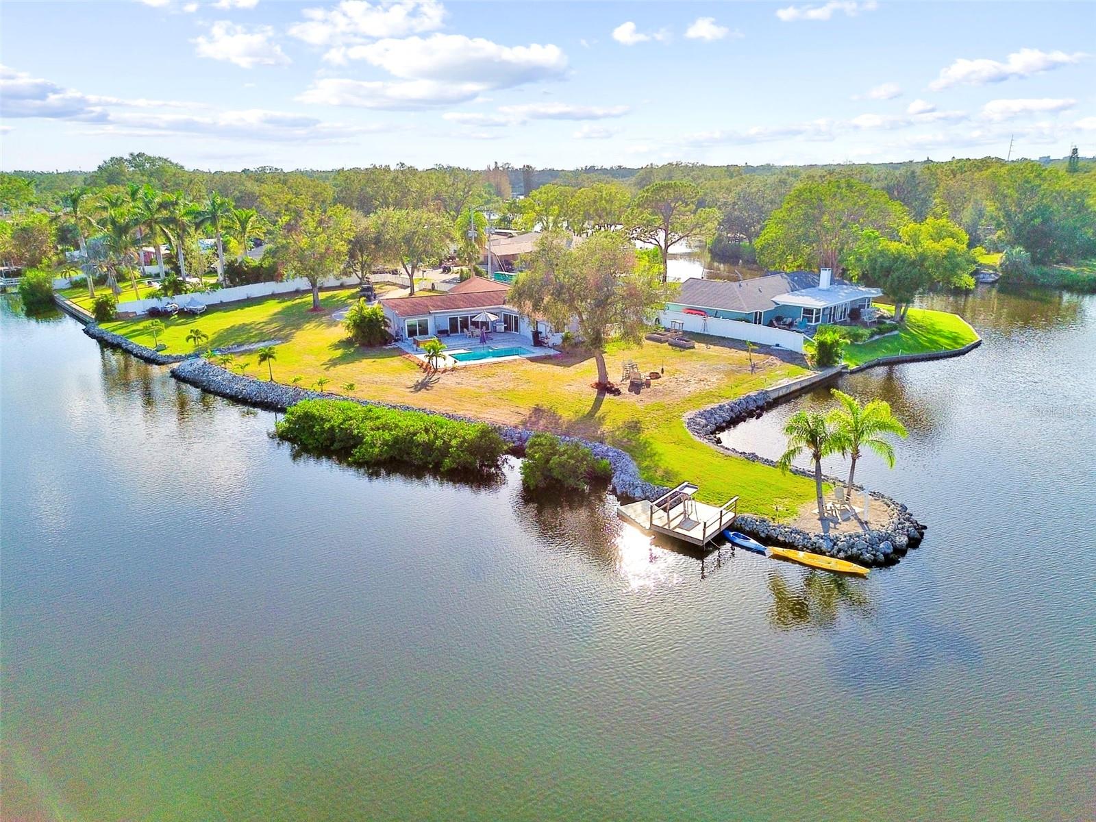 NO FLOODING OR DAMAGE AFTER RECENT HURRACAINES HELENE AND MILTON. Discover your serene sanctuary in heart of Largo, a stunning four-bedroom, two-bath waterfront retreat on 1.28 acres with Tampa Bay access via Allen’s Creek. This property offers the ideal blend of privacy and convenience, with room to expand to build another house and features designed for effortless coastal living. Enjoy expansive water views from every bedroom, a new boat dock, limestone rock boat ramp, fire pit, fishing area, hot tub and a 2021 saltwater pool. The seawall was repaired in 2019 with limestone rocks. The upgraded kitchen boasts granite countertops, stainless steel appliances, and dual islands, ideal for entertaining. A versatile bonus room can function as a dining space, office or playroom. Hurricane impact windows and sliders in 2022, a newer air-conditioning system, renovated baths, and remote-controlled shades in the living room and primary suite ensure comfort year-round. The private primary bedroom offers direct pool access, while the two-car garage is equipped with gorilla flooring and a hurricane-rated door. Evenings here are magical, the fire pit invites friends and family for s'mores under the stars, while the saltwater pool, illuminated with beautiful changing lights, creates a perfect setting for relaxation. Watching seabirds, dolphins, and manatees from the comfort of home adds to the charm, making every moment special. Take your fishing poles and enjoy catching a variety of fish such as snapper, redfish, flounder, jacks, snook, tarpon, and more. Enjoy kayaking, paddleboarding, or taking your boat out. In addition to leisure, this home presents opportunities for creativity and sustainability. The spacious yard is ideal for growing vegetables, allowing for fresh produce right from home. Restaurants, shopping and beautiful beaches are just minutes away, with easy access to the airport. Experience the best of waterfront living, schedule a showing today and make every sunset unforgettable. No Flood Claims. No Insurance Claims, No FEMA Claims. MOTIVATED SELLER, PRESENT ALL OFFERS.