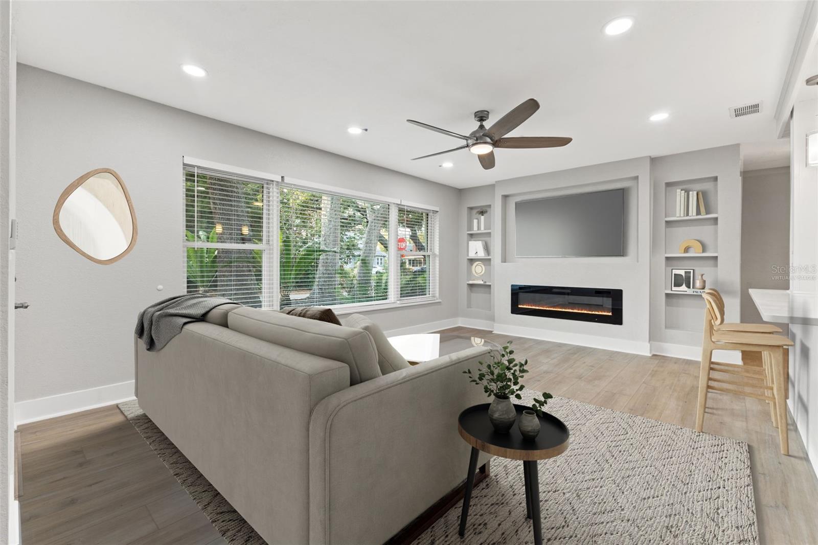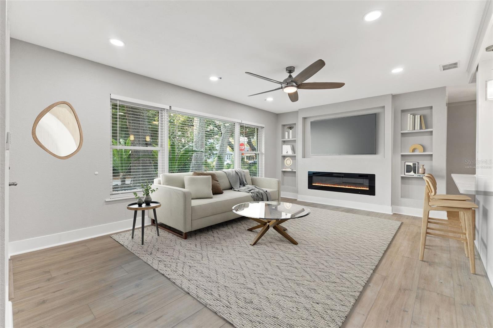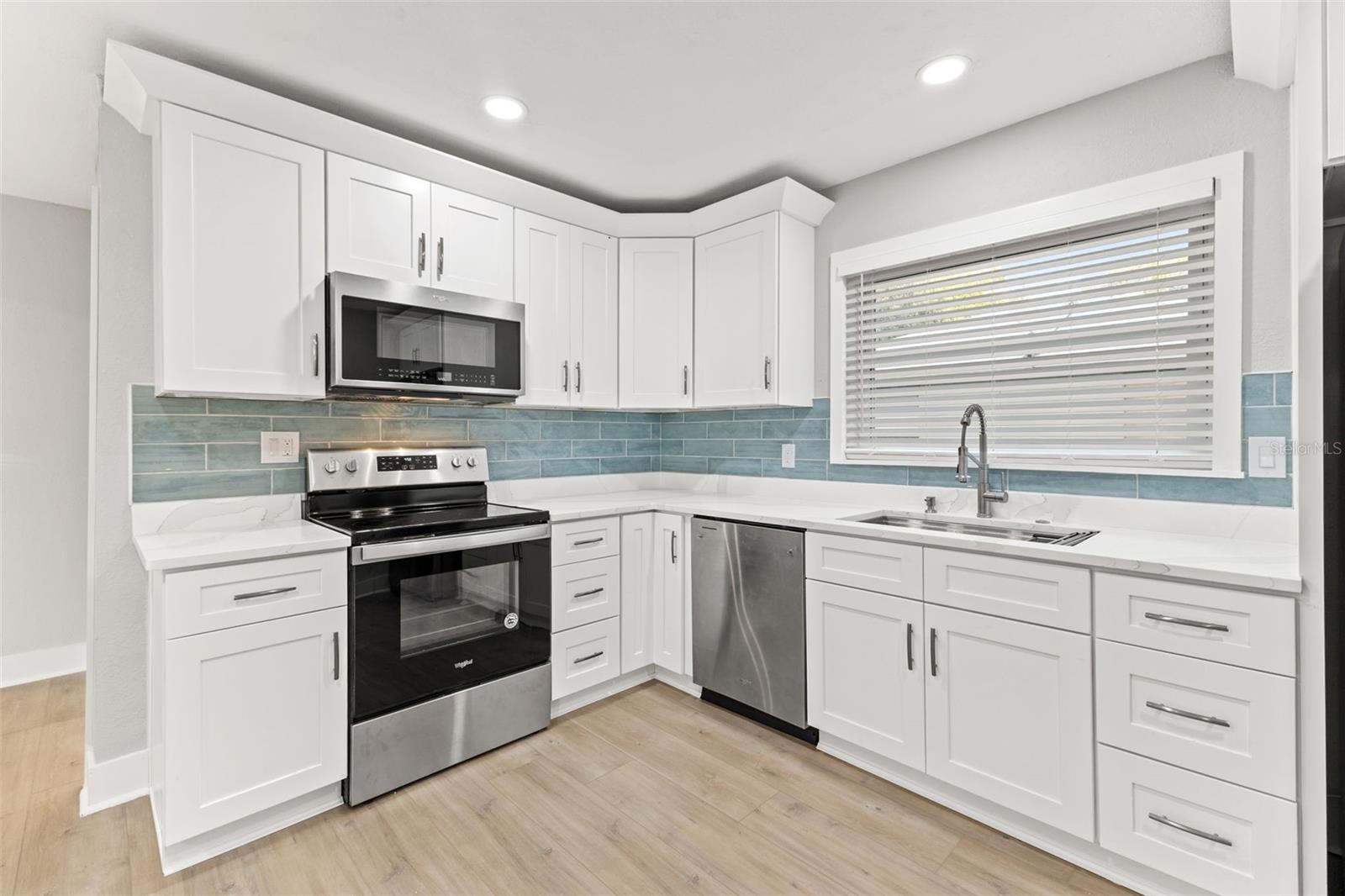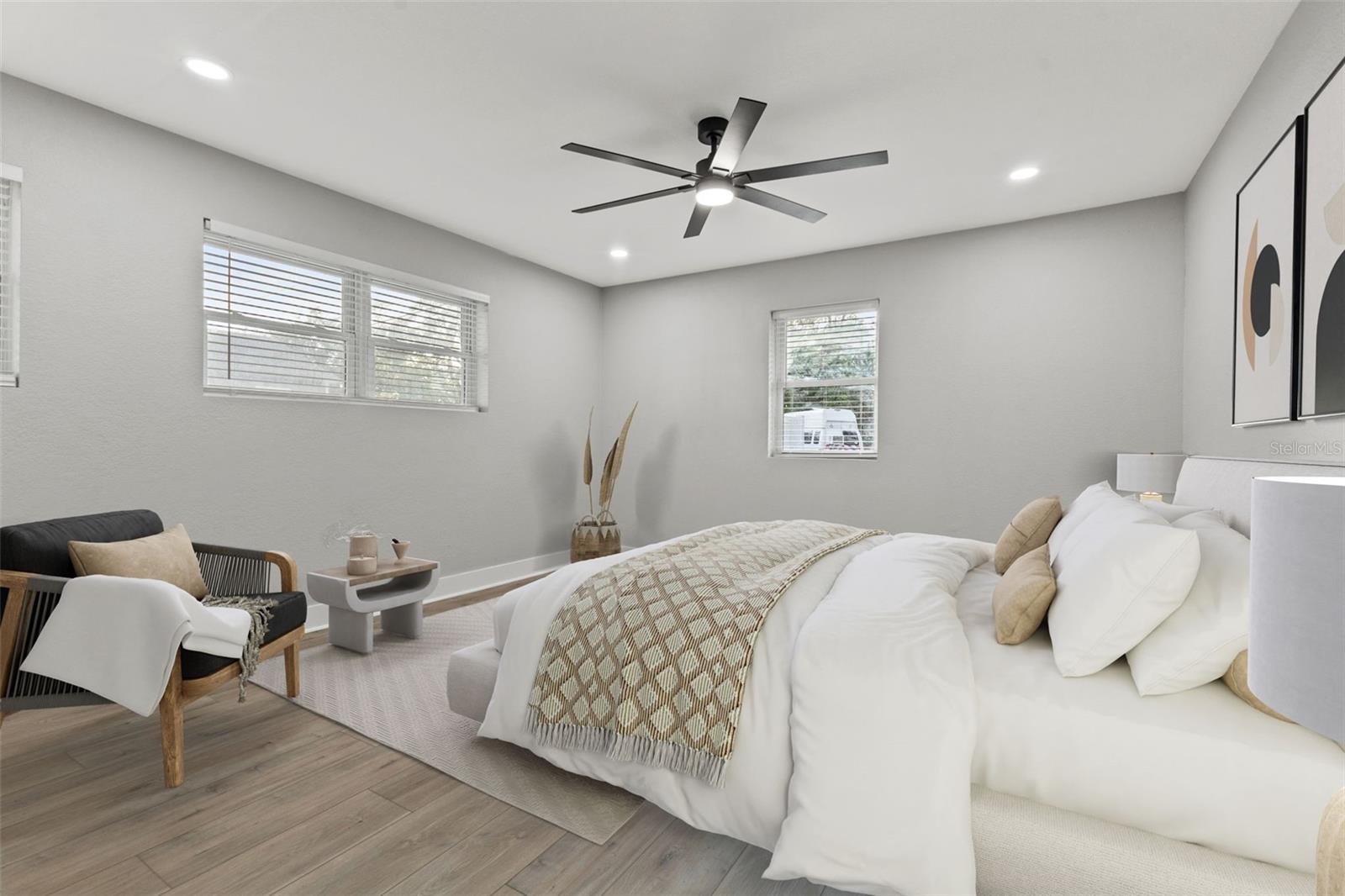 One or more photo(s) has been virtually staged. Welcome to this exquisite, completely remodeled home, perfectly situated on a coveted corner lot. This residence is a harmonious blend of modern design and functional elegance, showcasing an open concept layout that invites natural light and enhances the flow of space. As you step inside, you're greeted by beautiful fixtures that adorn every room, highlighting the meticulous attention to detail that defines this home. The spacious living area seamlessly connects to the dining and kitchen spaces, making it ideal for both entertaining and everyday living. Premium waterproof luxury vinyl plank (LVP) flooring flows throughout the entire home, providing durability and style without a hint of carpet. The chef’s kitchen is a true masterpiece, featuring stunning crown molding on the cabinets that adds an element of sophistication. Equipped with top-of-the-line appliances and generous counter space, this kitchen is as functional as it is beautiful. Retreat to the oversized primary suite, a private haven complete with its own entrance, ensuring a sense of tranquility and seclusion. The ensuite bathroom boasts luxurious finishes and ample space, creating a spa-like atmosphere that you will love returning to at the end of the day. Additional highlights include modern ceiling fans in key living areas, enhancing comfort and style throughout the home. The fully fenced backyard offers a safe and serene outdoor space, perfect for gatherings, gardening, or simply enjoying the fresh air. With an RV cable hookup available, this property is perfect for adventurers and outdoor enthusiasts. This remarkable corner lot home is a rare find, combining contemporary upgrades with thoughtful design elements, all in a prime location. Non flood zone, block construction, no hurricane damage, and only 4 miles to Clearwater Beach. Don’t miss your chance to own a piece of luxury living – schedule your private tour today!