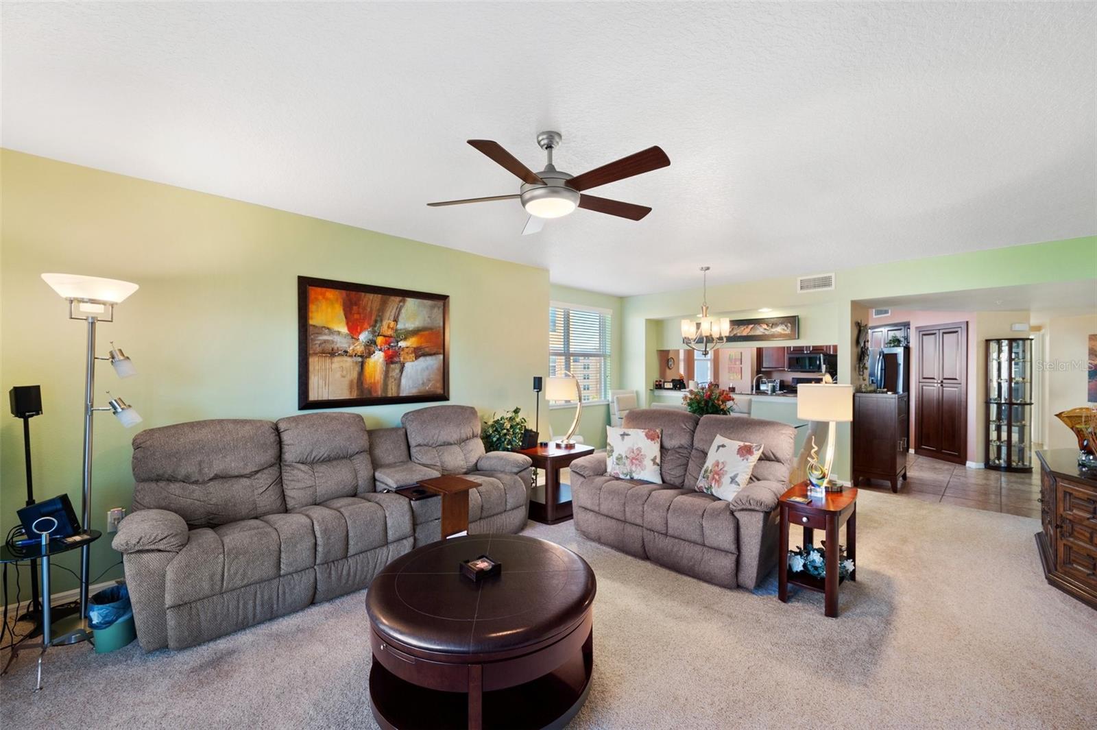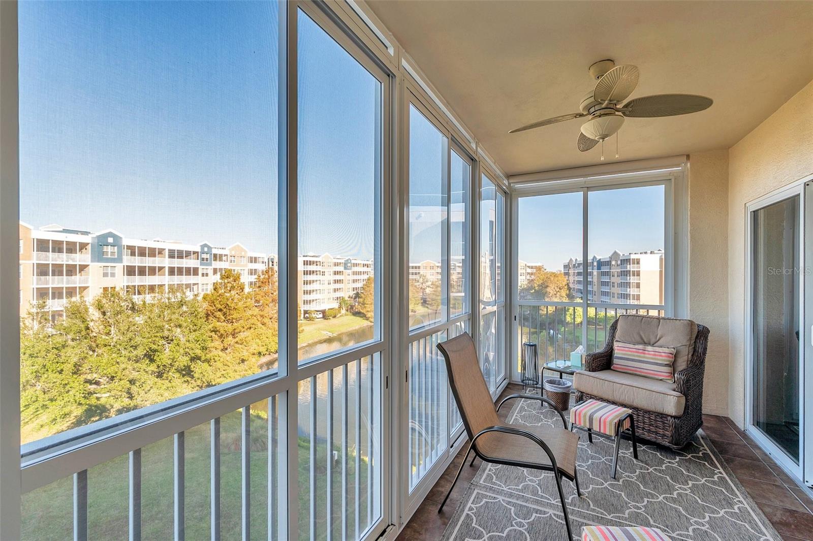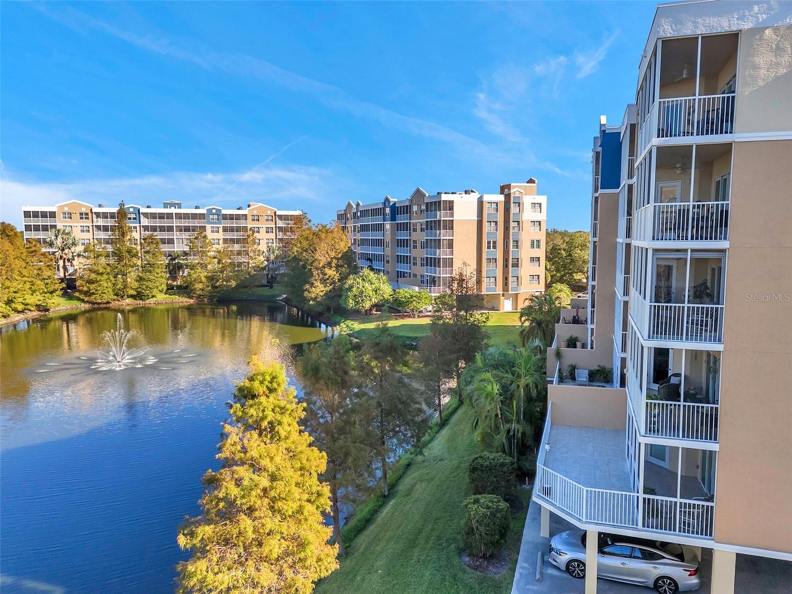Welcome to the Florida lifestyle many DREAM of - nestled in the highly sought-after Golf Lake Condo community. 5406 is a stunning must see HIGH CLASS 3-BR 2-BA LAKESIDE condo and offers the perfect blend of COMFORT and CONVENIENCE with natural BEAUTY. The LOVELY décor of muted warm colors plus almost every possible little or large TOUCH of QUALITY show attention to detail and PURE PRIDE OF OWNERSHIP by a caring committed owner.. The serene views create a CALMING PICTURESQUE backdrop to the THOUGHTFULLY CREATED INTERIORS of this home. The open-concept kitchen is a chef’s delight, boasting stainless steel appliances, quartz countertops, and elegant cabinets. The main bedroom suite opens to the lanai, offers dual sinks, spacious walk-in shower, two walk-in closets and is a true private retreat. Step onto the generously sized and upgraded screened private lanai complete with CLEAR SLIDING PLEXI-GLASS ENCLOSURE and enhanced blinds. What a HIGH QUALTY ADDITION this is - enjoy sunshine, green space, views of pool & TRANQUIL FOUNTAIN LAKE. While providing shade this screened lanai can be BONUS AIR CONDITIONED SPACE if needed, it is a UNIQUE PRIVATE ROOM ideal for relaxation or entertaining whether fully open or part shaded. The S facing front & N facing back of Building 5 shields 5406 from the heat of the day allowing year-round use of your lanai. Located on the 4th floor, this home is designed to elevate your lifestyle and everyday living experience. Enjoy LIGHT, AIR and SPACE through windows on three sides in six rooms with PEACEFUL TREE TOP VIEWS over and above the community. Either of the VERSATILE 2nd or 3rd bedrooms can easily function as a cozy den or productive home office and may be flooded with NATURAL LIGHT from large windows. The big well-appointed laundry room includes a washer, dryer, oversized store closet, and extra shelving for more storage with easy access. BUILDING FIVE has energy efficiency to minimize heating and cooling costs while providing YEAR ROUND COMFORT. Designed with your PEACE OF MIND in mind SPRINKLERS ARE IN EACH ROOM and closet with CO2 and smoke detectors for added safety. The CONSTRUCTION CONCEPT of ROBUST FORTRESS BUILDING FIVE is super strong, safe and sound. Exterior walls & walls between neighbors are concrete block built. Solid poured in situ post-tensioned concrete floors and steel rebar reinforced concrete shear walls at stairwells and elevator shaft provide STABILTY – DURABILITY – SAFETY! So do not worry about Structural Integrity Reserve Studies nor Milestone Inspections - they are 14 years away and no big issue here. Golf Lake condos are elevated, high & dry with quality design, quality construction, quality workmanship, quality maintenance & quality management from top to bottom from start to finish. WITH NO HURRICANE EVACUATION NECESSARY! Each building of this fine community has it’s own HOA Board of Directors. Building Five is well-managed by a MASTERFUL HOA BOARD with RESPONSIBLE CONSISTENT CONTROL plus onsite PRO GENERAL MANAGER & CPAs giving RESPONSIBLE FISCAL CONTROL of a DYNAMIC BUDGET and WELL FUNDED RESERVES. Golf Lake 5406 offers unparalleled convenience and easy access to nearby beaches, shopping, dining, entertainment plus proximity to top Tampa Bay attractions. Here is a near perfect serene retreat to enjoy the best of TAMPA BAY and Sunset State Florida. Please schedule your PRIVATE SHOWING SOON and discover why this condo is GREAT VALUE and a PICTURE PERFECT PLACE to call home!