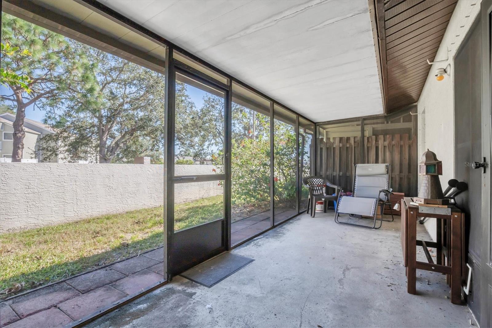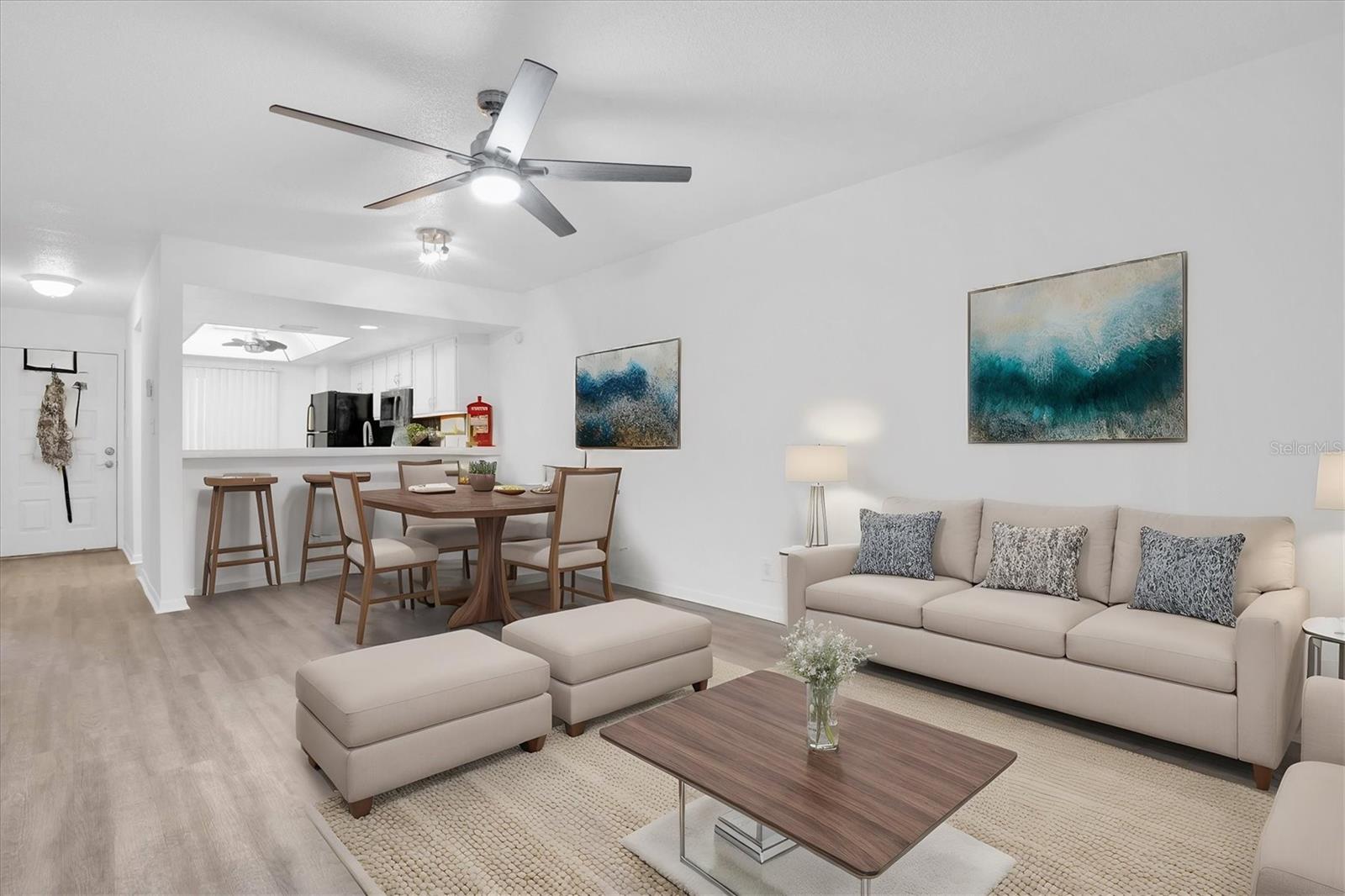 One or more photo(s) has been virtually staged. Significant Price Drop!! This appealing villa is a delightful split 2 bedroom 1 ½ bath home. It has a newer tile roof, installed in 2018, is freshly painted; offers new luxury plank vinyl flooring, brand new microwave, disposal, ceiling fans and sink faucets, and a 7 year old AC. The front and back screens were replaced about a year ago, the washer and dryer installed during fall of 2022. In the spring 2024, sellers installed an upflush macerating toilet with a heated bidet toilet seat for the primary bedroom. There’s a nice open floorplan so the kitchen, dining area and living room flow into each other, a comfortable living space. Just past the living area beyond the sliding glass doors is a bonus room with closet and after the bonus area you have a spacious back porch with cute back yard and walled divider from the world beyond. A comfy villa with plenty of storage and both gathering areas for socializing and spots to have privacy! Your new home is located in Rosetree Village, a very popular all age, pet friendly and non flood zone community in central Pinellas county. The Rosetree Village neighborhood is set back from Ulmerton Road with a row of commmercial properties between the community and busy street. It’s a peaceful quiet setting while offering easy access to US 19, I-275, Tampa, St Petersburg, Clearwater, the beaches and both the St Pete/Clwtr and Tampa Airports. There is plenty of shopping and restaurants nearby. Rosetree Village 0ffers two pools (one heated), a playground, basketball court and a clubhouse. The monthly HOA fee of $308 covers water, sewer, trash, cable, grounds maintenance and recreational facilities and more. Convenient assigned parking is down the sidewalk outside your front door with additional parking for guests or extra cars close by. Leasing is allowed. Pets are allowed. No flood insurance required. No permanent ‘for sale’ sign out front so watch for Unit 2B. Looking for an Awesome home for well under $300,000? Here you go!! Don’t miss checking this home out. Rosetree Village homes don't come on the market all that often!