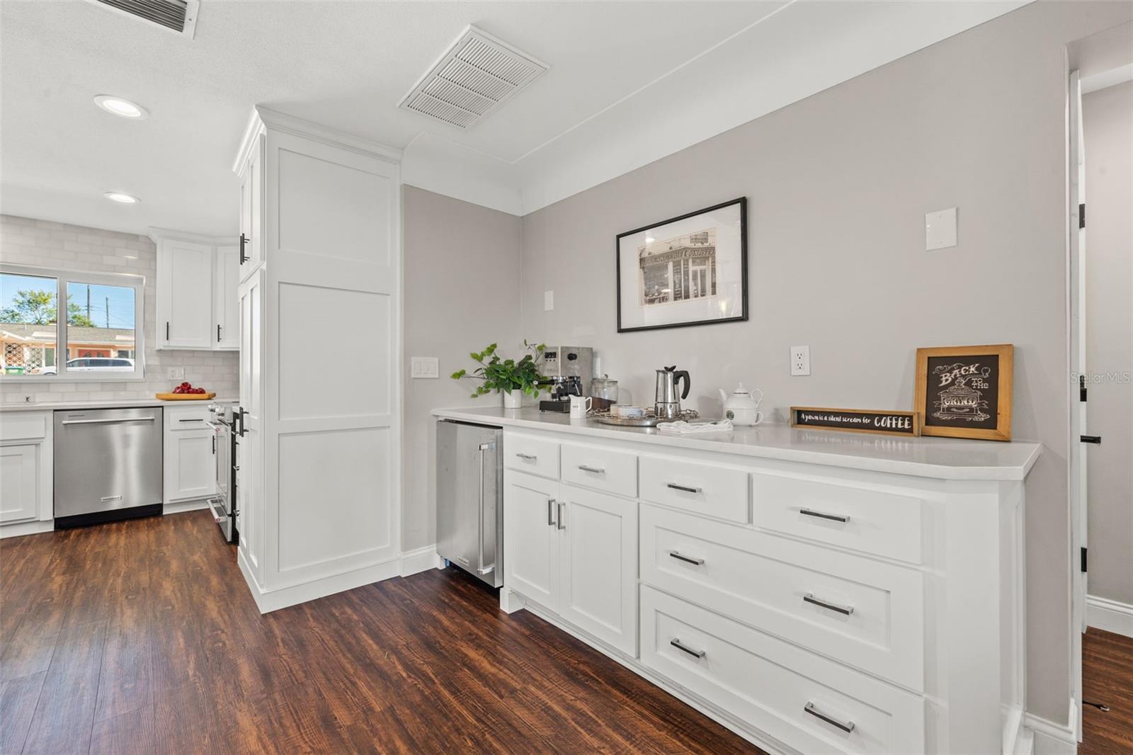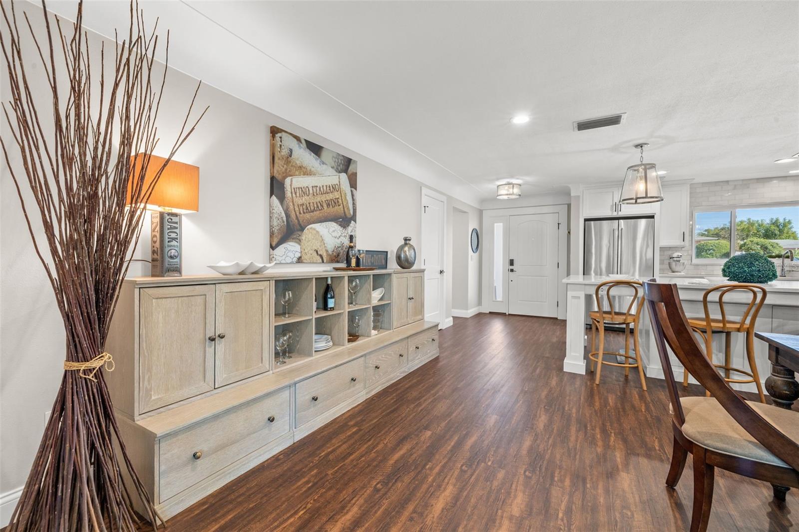 Priced WELL below appraised value....If a high and dry, move in ready, gorgeously updated 3/2 home with 2-car garage, screened porch and outdoor patio is what you are looking for, this home delivers that and SO much more. This home is located in the very desirable neighborhood of Harbor Hill, Largo, FL which offers you a unique blend of recreational, natural, and urban experiences all close to home. It features an open floor plan, that is filled with natural light. Your gorgeous and functional chef’s kitchen takes center stage with its huge island, custom white cabinets, stainless steel appliances and quartz countertops. There is a coffee/wine bar with a wine fridge to the side. The kitchen/dining space is both beautiful, spacious and highly functional for family life and entertaining. ALL of the bedrooms have huge closets! The primary bedroom has its own ensuite bathroom with marble countertops and beautiful walk-in shower. There is a built in mid-century dressing table adding flair and character to the bedroom. The other two bedrooms are also generously sized. The second bathroom has a double sink vanity and a tub/shower combo. The 2-car garage features a beautiful, easy to maintain epoxy floor, plenty of storage and your washer and dryer. There is a new hurricane rated garage door and hurricane windows throughout the home. Location lifestyle is the best here. For boating enthusiasts, there is the nearby Belleair boat ramp. Within minutes you have access to 3 amazing Gulf beaches. Indian Rocks, Clearwater Beach and Belleair Beach. Whatever your mood, there’s a beach to match it, from serene and tranquil to vibrant and hopping with activities. Within a 5 mile radius you have 4 nature parks to choose from for picnics, walking, hiking, biking and fishing. The Pinellas Trail access is 2 miles away. It’s a renowned multi-use trail that connects you from St Petersburg to Tarpon Springs. You have access to excellent schools, medical facilities, shopping, and dining options. This home is NOT in a flood zone with a 40 foot + elevation. You definitely want to see this home in person. Be sure to book your appointment today. Appraisal and inspections available upon request!