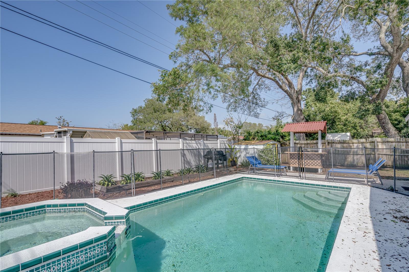 Nestled in an unbeatable location just 7 minutes from Indian Rocks Beach, this *move-in ready* pool home offers the perfect blend of coastal charm and modern convenience. Fully turnkey, with all furniture included, this 4-bedroom, 2-bathroom gem makes for an effortless transition to your new Florida lifestyle. Best of all, it's NOT in a flood zone! Step inside to discover a beautifully renovated interior featuring fresh paint and luxury vinyl plank flooring that flows seamlessly through most of the home. The kitchen is a showstopper, boasting stainless steel appliances, updated cabinetry, and a chic backsplash that ties the space together perfectly. A designated dining room sits just off the kitchen, ready to host your family gatherings or intimate dinner parties. Your backyard retreat awaits with a screened-in lanai overlooking a fully fenced oasis. Lounge by the sparkling heated saltwater pool and spa, or enjoy a cocktail at the poolside tiki bar — this space is made for entertaining. Recent updates, including a 2020 roof, 2018 water heater, and all-new hurricane impact glass windows, ensure peace of mind for years to come. Located within walking distance of John S. Taylor Park and just a short drive from top restaurants and attractions, this home embodies the very best of Largo and Pinellas County living. Schedule your private tour today to experience Florida living at its finest!