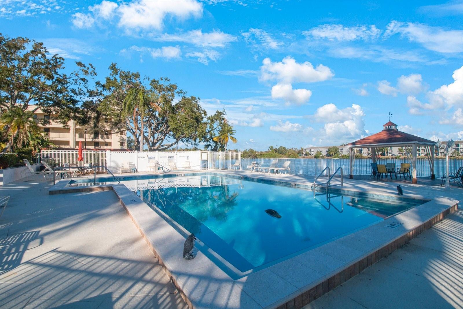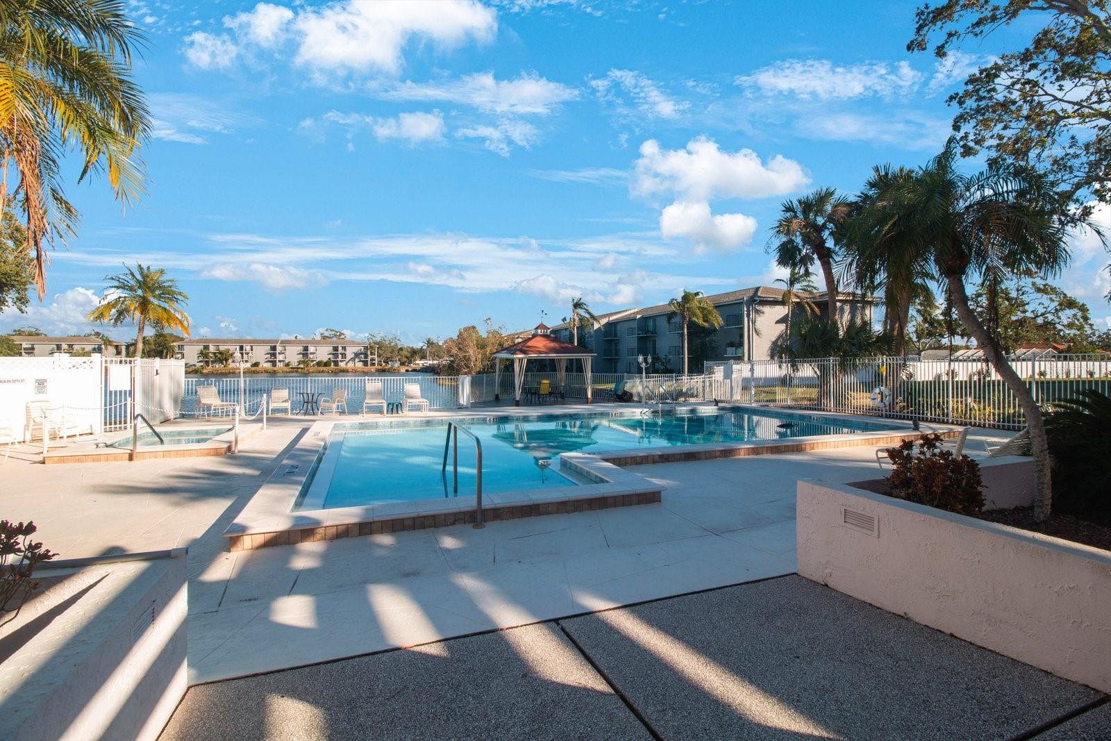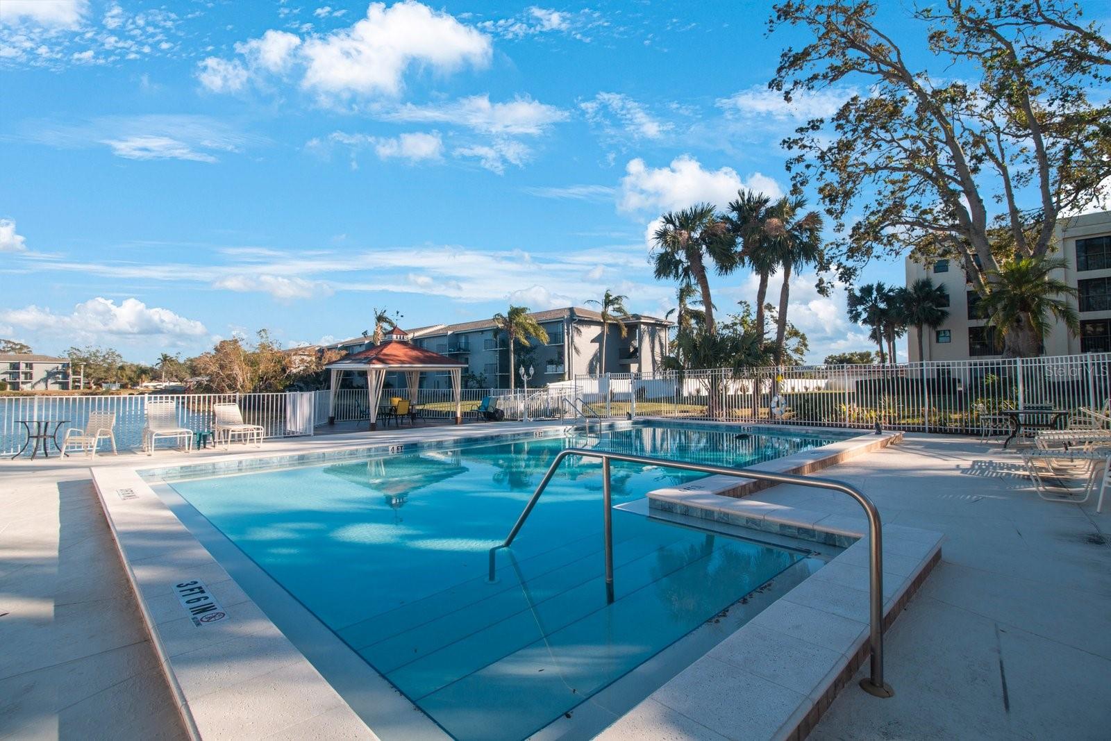 Enjoy this beautifully maintained, pristine 2 bedroom, 2 bath Over 55 unit in a NON-EVACUATION Zone! Condo fees are only $461 per month with no planned assessments and this also includes Internet and 300 cable channels. Updated kitchen, primary bedroom with en-suite bath and custom designer closet. Relax in picturesque porch with a lovely view of the grounds! This condo has all HURRICANE IMPACT RESISTANT WINDOWS THROUGHOUT, newer flooring in spacious living and dining rooms. Numerous updates including newer: water heater and Refrigerator, plantation shutters in guest room and kitchen. Desired IN UNIT WASHER & DRYER. Association fee includes: Spectrum Wi-Fi and Cable TV ( over 300 channels) enjoy the serene surroundings with lovely redone pool and spa or stroll out to the pretty gazebo and views over the pond. This lovely condo is a must-see for all snowbirds or those wanting to downsize to an excellent community. NOTE this building is considered to be a CAT-5 building. This is a non-smoking, non-pet building. Safe and secure! Deal fell through -buyer didn't meet age requirement. A short stroll - 1 mile to Indian Rocks Beach and a short stroll .2 miles to Grocery and restaurants on Indian Rocks Rd!