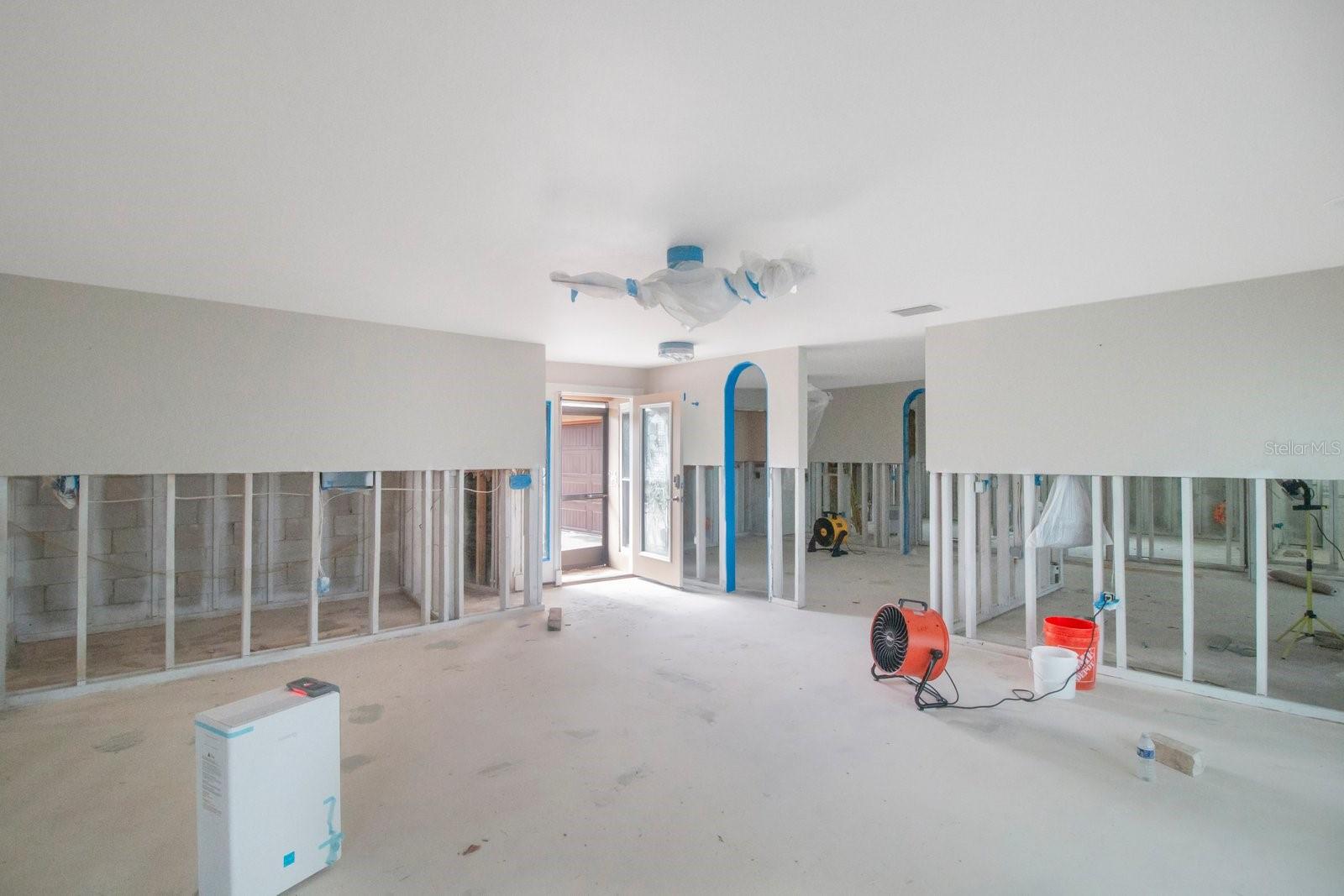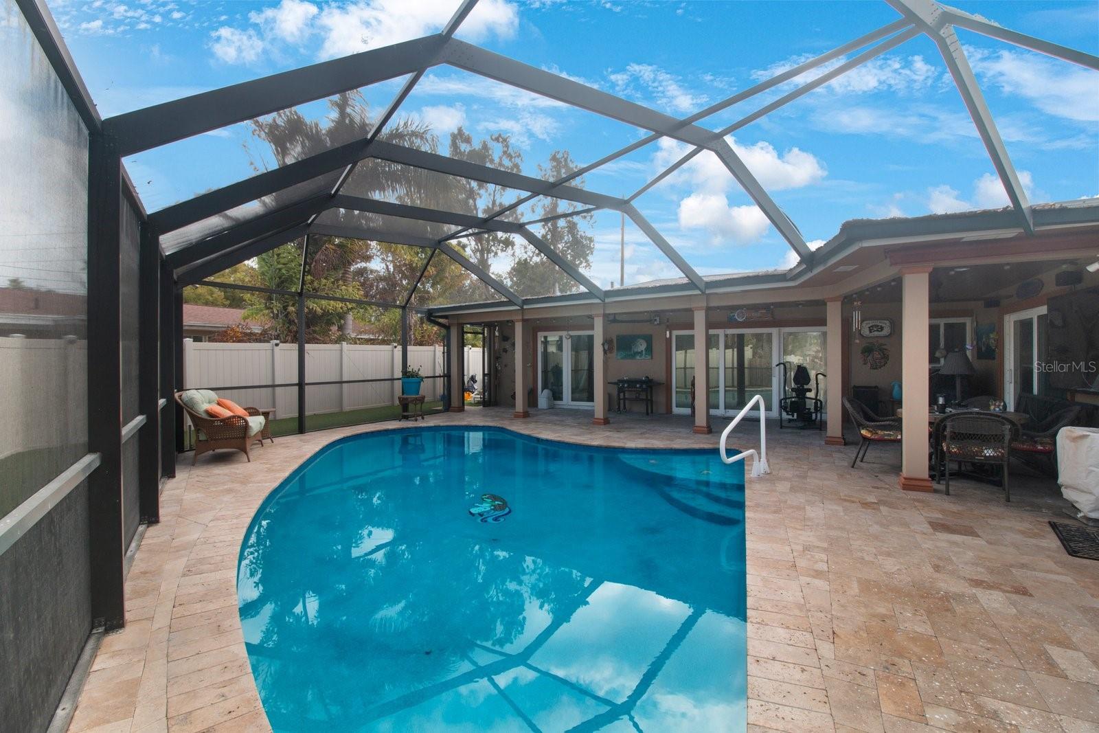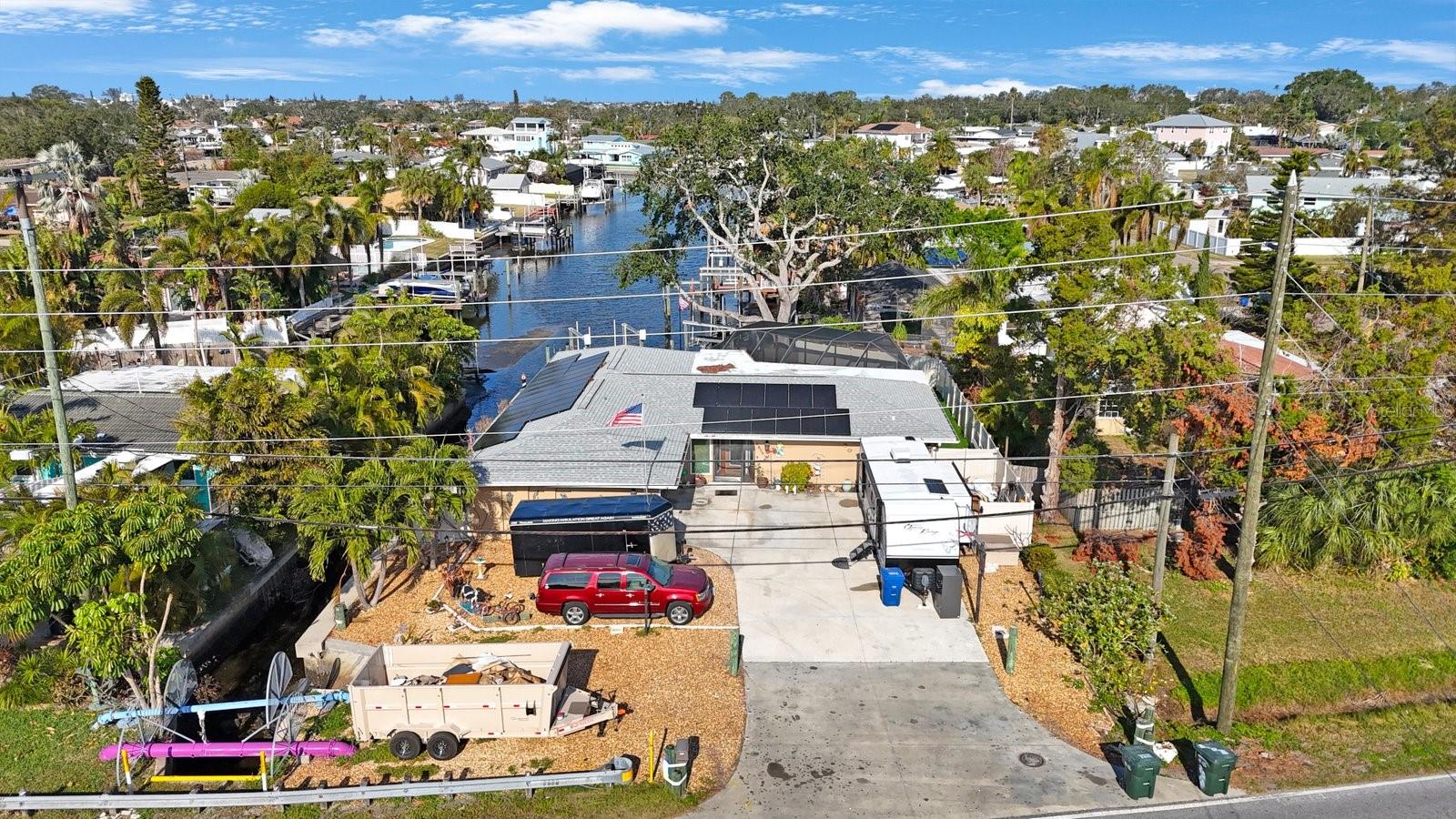 Beautiful Waterfront home has just hit the market! 3 Bedrooms, 2 Bathrooms, 2-Car Garage, 1,911 SQFT. This home features a Luxury Pool with sunshelf, and a screened birdcage. Backyard is Turfed allowing for a low maintenance clean manicured look at all times. Located at the end of a canal, newer composite dock & 10,000 lb boat lift, & New 2024 pool pump that connects via bluetooth. The home is split floorplan with hurricane windows and doors, main bedroom features an ensuite as well as a walk-in closet. Large Indoor Laundry/storage area, two grand glass sliders leading onto the paved lanai area, dining room located just off the kitchen features a large custom glass panel with decorative etching allowing added natural lighting as well as a built-in liquor cabinet. Kitchen window overlooks the pool and lanai area with a built-in pantry. Second living room space overlooks the canal. 2-Car garage is side-facing and has access to the side yard along the canal. New 2024 Roof and New Solar Panels that power the whole home and will be paid off at closing. Yes, this home was affected by storm waters during hurricane Helene however was immediately professionally remediated and demoed, as well as Killz mold and mildew paint applied to the studs. Permits are open and approved with the City of Largo and would just need to be transferred to the new contractor's name (easy process). Electrical is complete, drywall material is on site,floor is prepped and ready to apply epoxy, tile, or vinyl flooring, & luxury white shaker cabinets are ordered. Owner plans to continue to renovate the home until it sells, so you have the option to buy now and take over renovation or wait until it’s complete and purchase for 800k