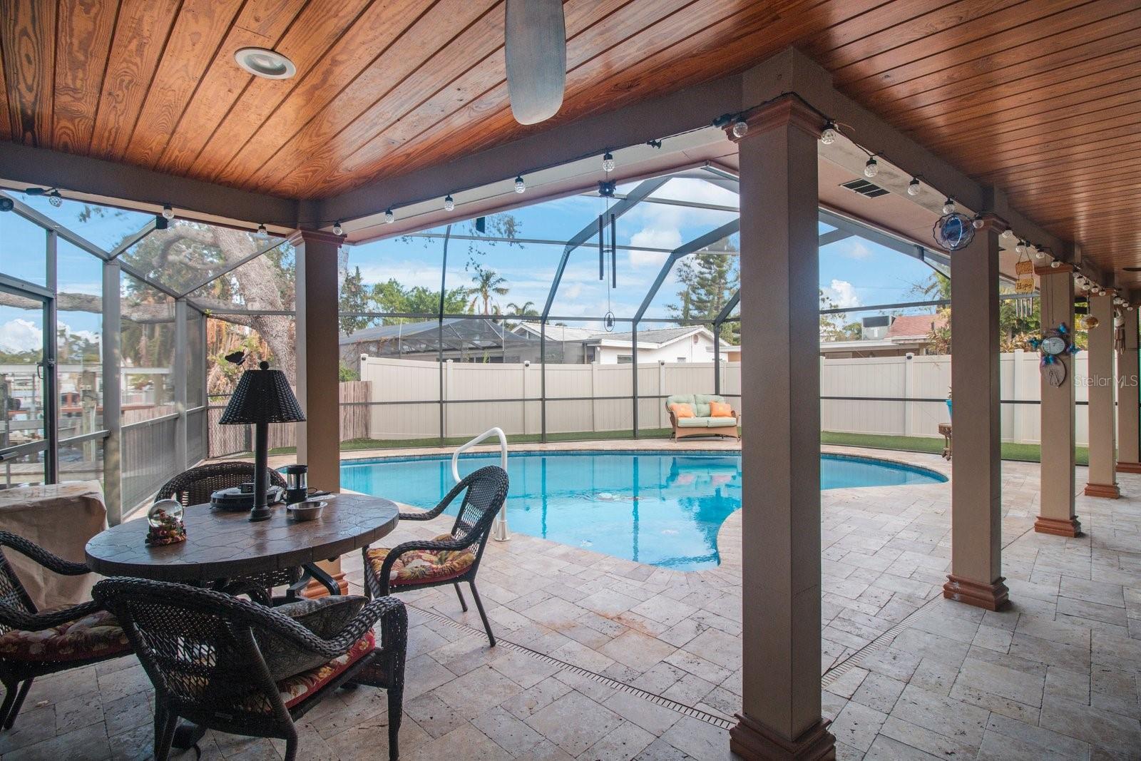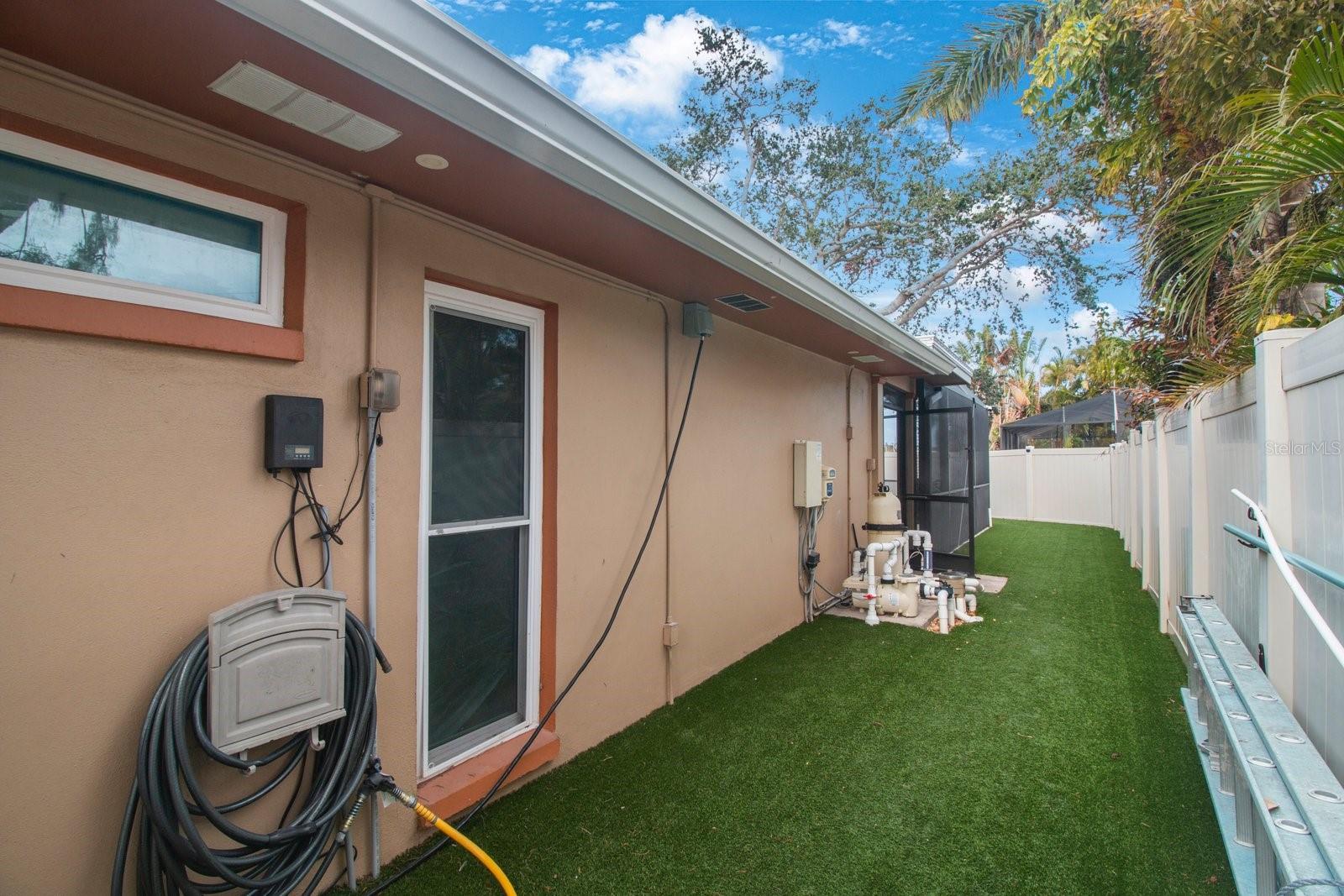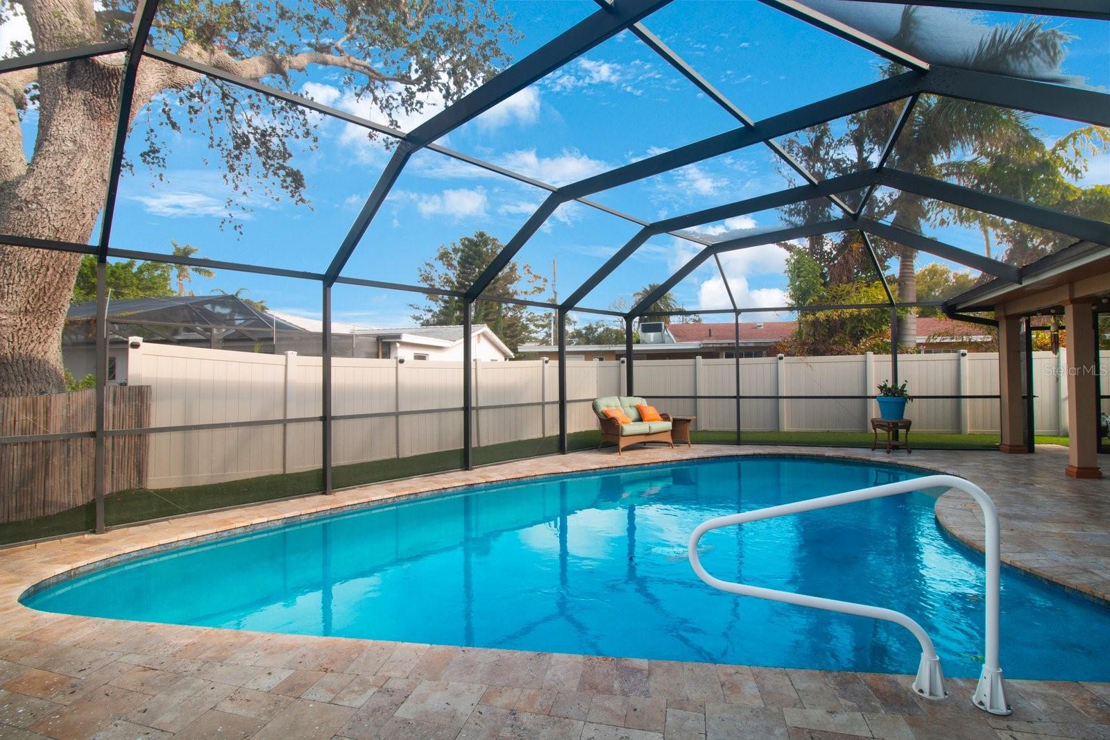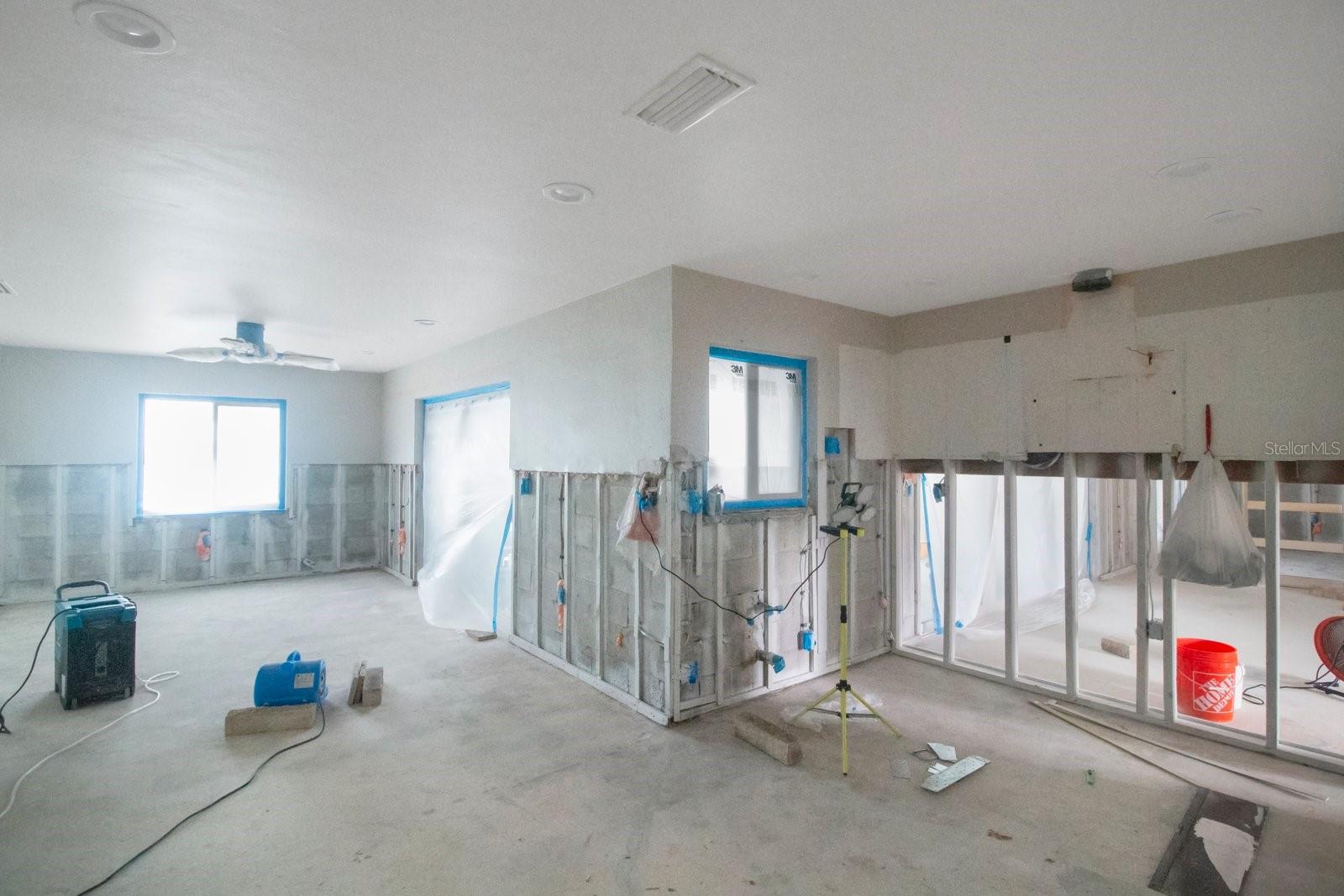 Beautiful Waterfront home has just hit the market! 3 Bedrooms, 2 Bathrooms, 2-Car Garage, 1,911 SQFT. This home features a Luxury Pool with sunshelf, and a screened birdcage. Backyard is Turfed allowing for a low maintenance clean manicured look at all times. Located at the end of a canal, newer composite dock & 10,000 lb boat lift, & New 2024 pool pump that connects via bluetooth. The home is split floorplan with hurricane windows and doors, main bedroom features an ensuite as well as a walk-in closet. Large Indoor Laundry/storage area, two grand glass sliders leading onto the paved lanai area, dining room located just off the kitchen features a large custom glass panel with decorative etching allowing added natural lighting as well as a built-in liquor cabinet. Kitchen window overlooks the pool and lanai area with a built-in pantry. Second living room space overlooks the canal. 2-Car garage is side-facing and has access to the side yard along the canal. New 2024 Roof and New Solar Panels that power the whole home and will be paid off at closing. Yes, this home was affected by storm waters during hurricane Helene however was immediately professionally remediated and demoed, as well as Killz mold and mildew paint applied to the studs. Permits are open and approved with the City of Largo and would just need to be transferred to the new contractor's name (easy process). Electrical is complete, drywall material is on site,floor is prepped and ready to apply epoxy, tile, or vinyl flooring, & luxury white shaker cabinets are ordered. Owner plans to continue to renovate the home until it sells, so you have the option to buy now and take over renovation or wait until it’s complete and purchase for 800k