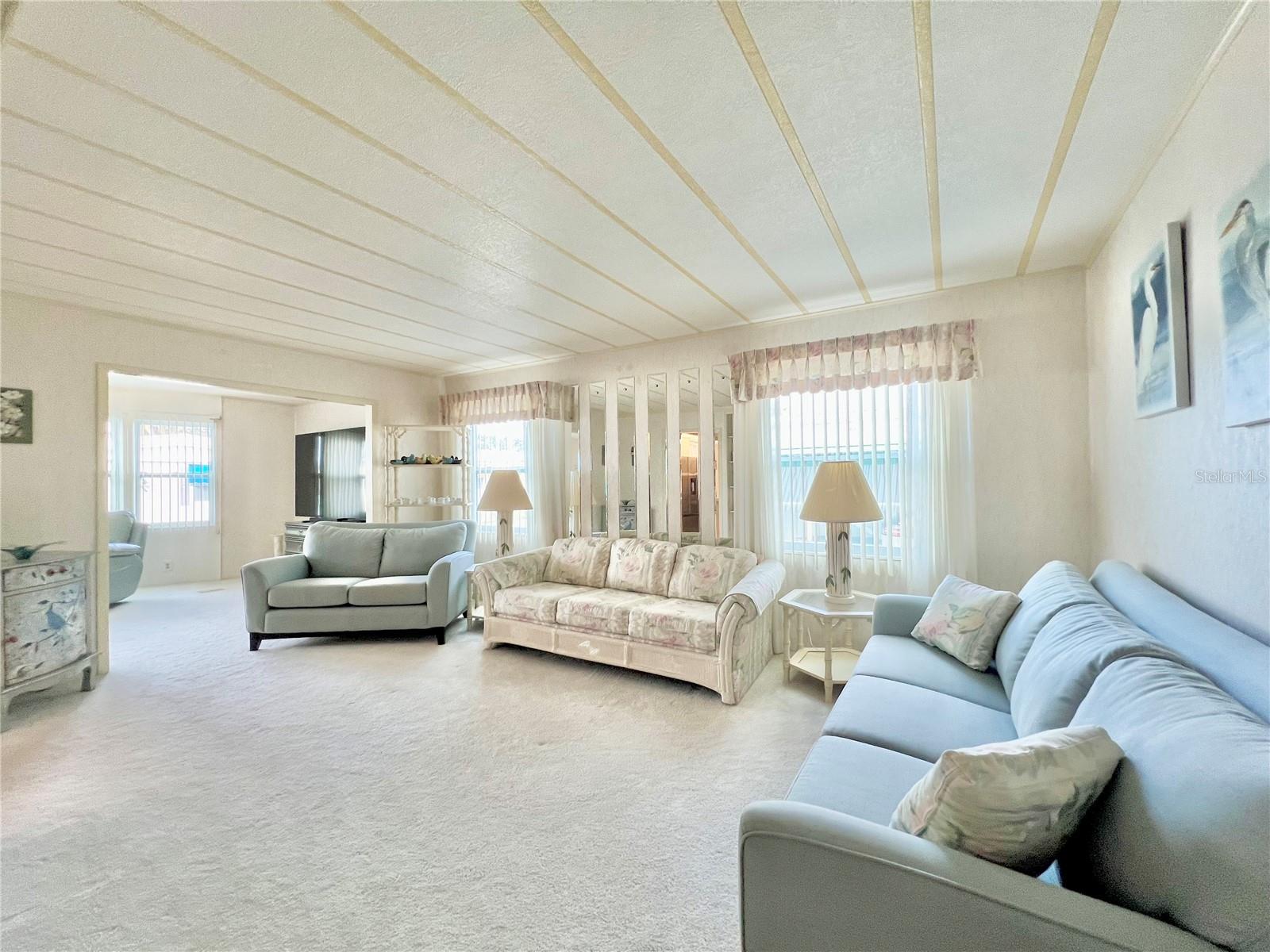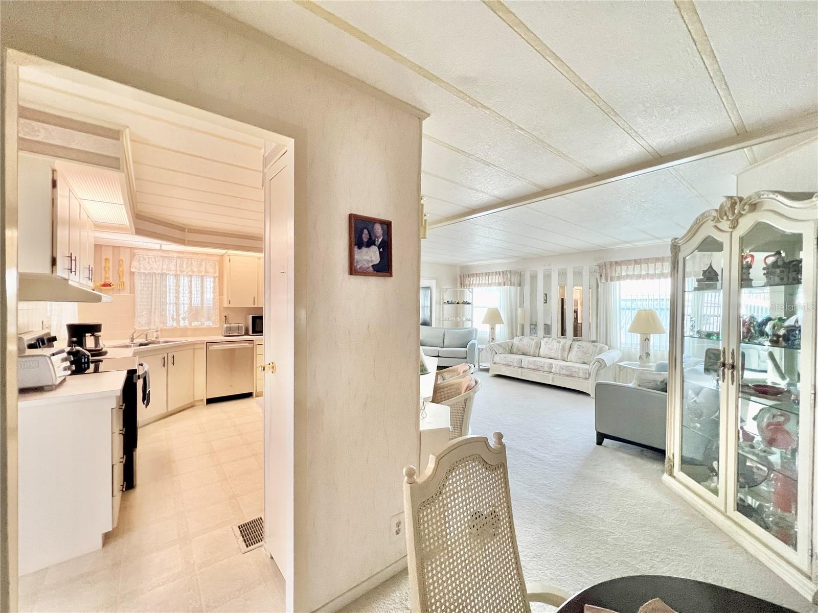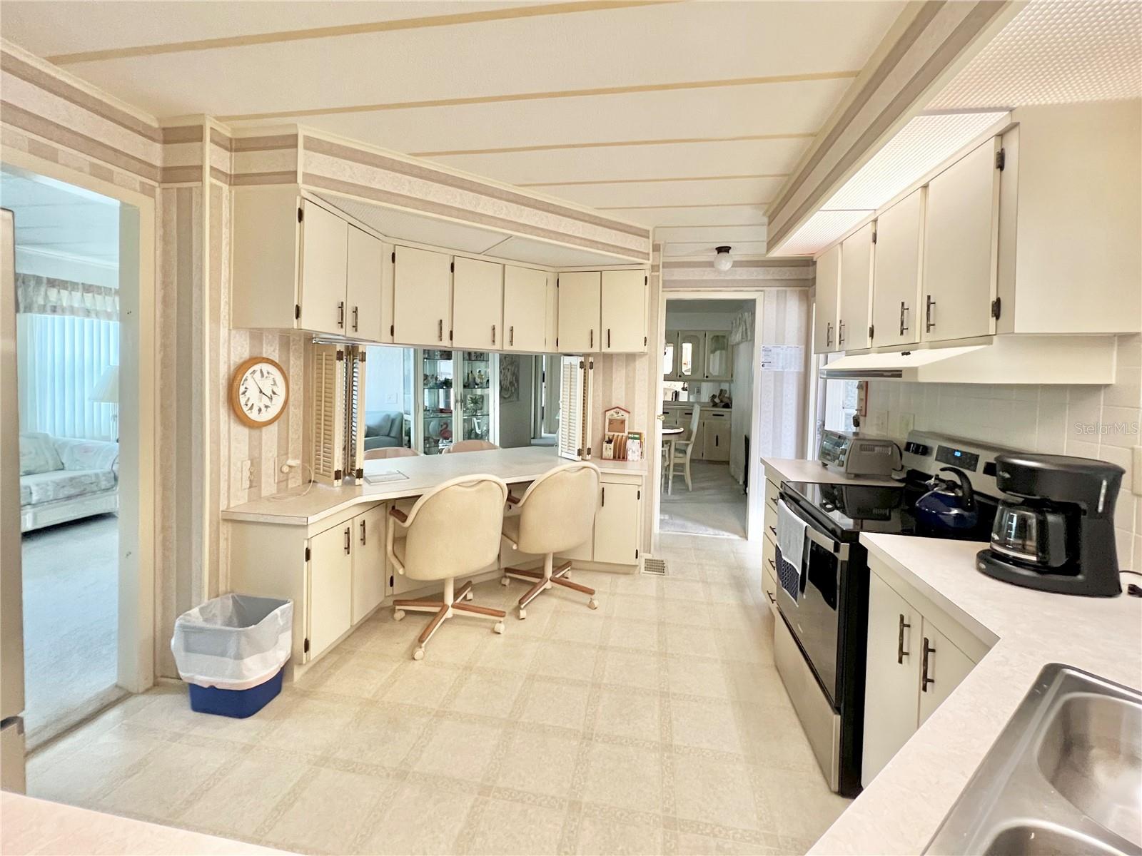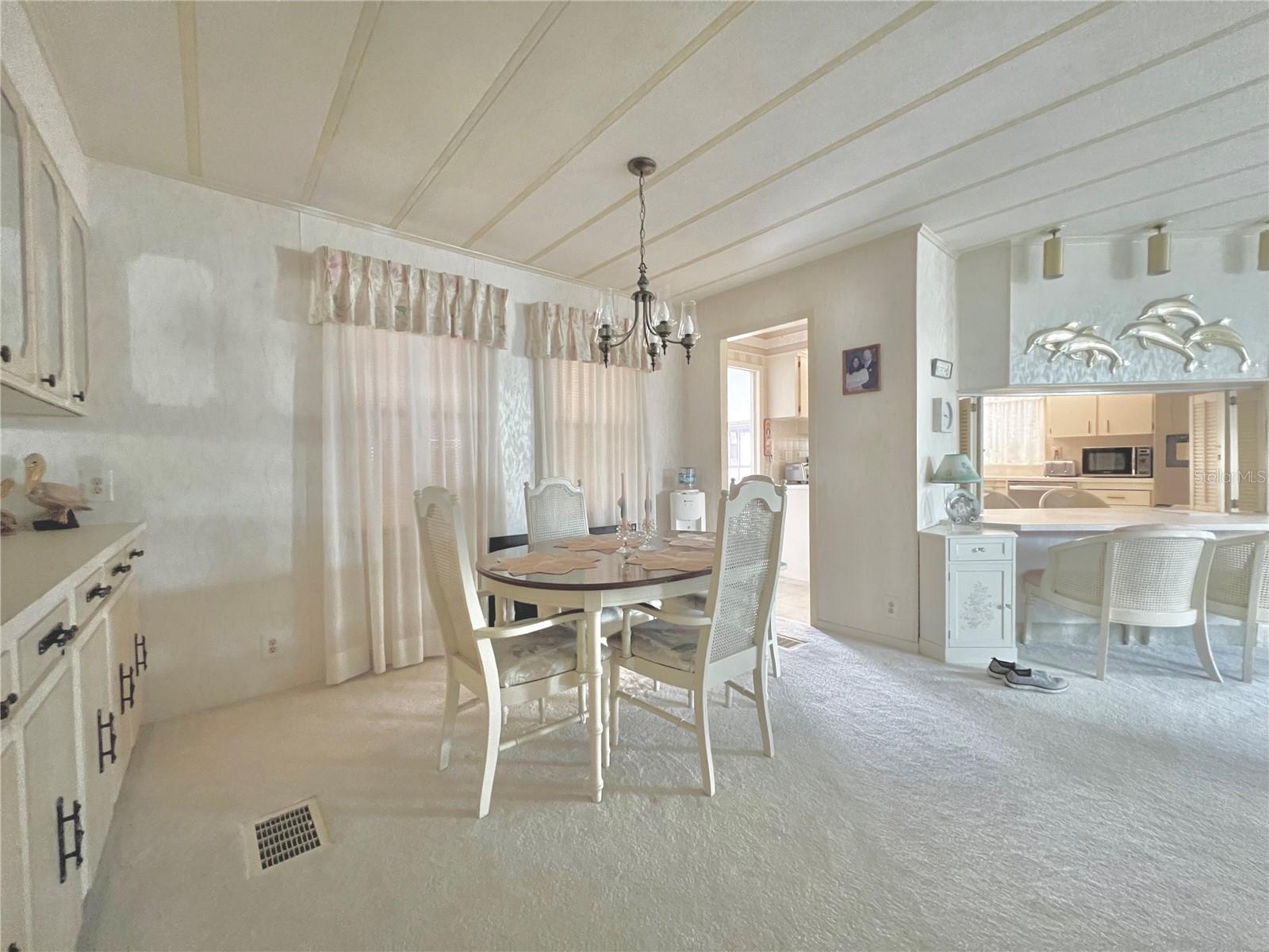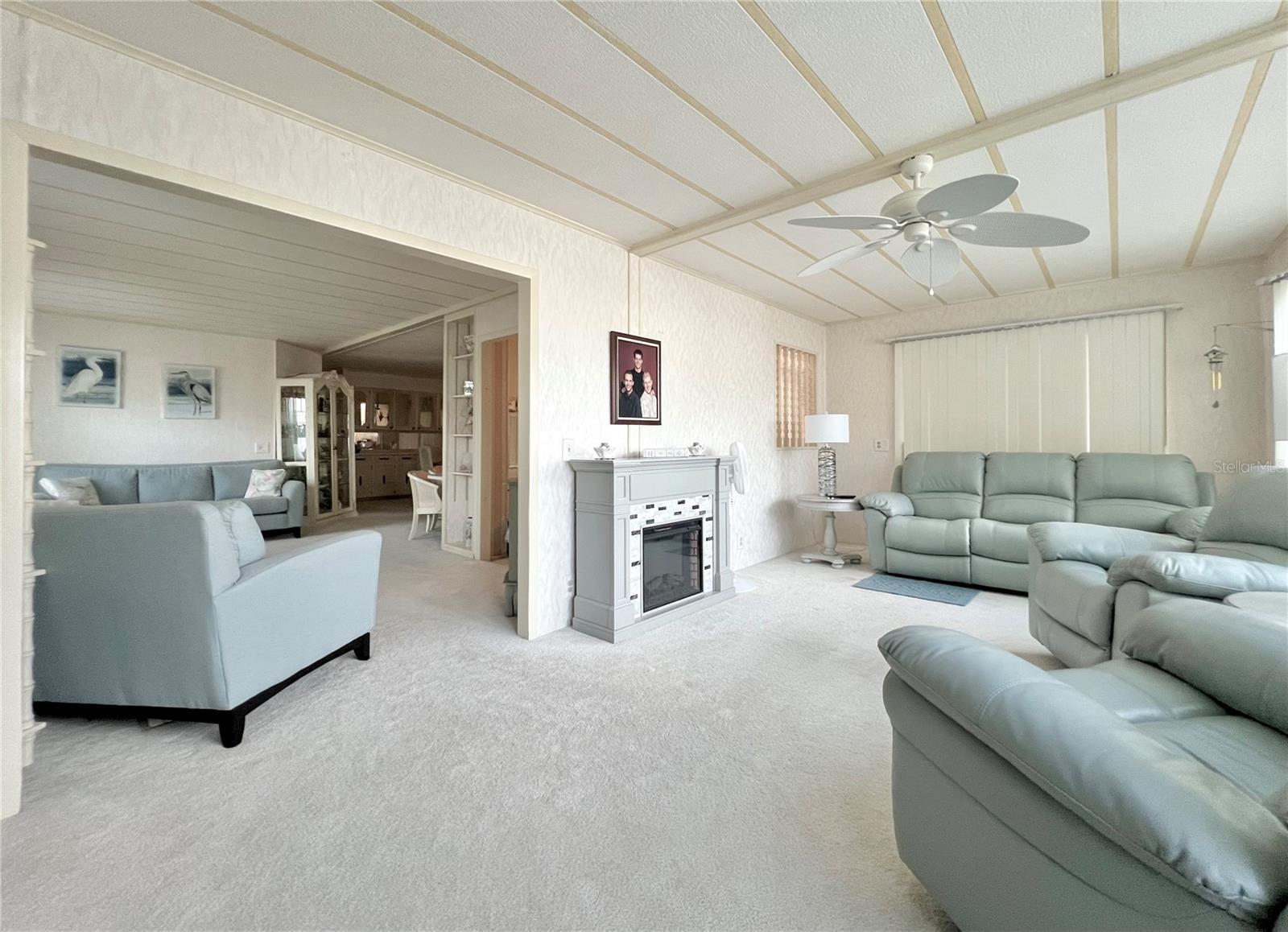 VERY MOTIVATED SELLERS...NEEDS TO SELL DO TO MEDICAL ISSUES! Check this one out NOW!!! Welcome to this charming 2-bedroom, 2-bath home located in the vibrant 55+ Co-Op share community of Fairway Village. This peaceful and inviting neighborhood offers residents the unique opportunity to enjoy year-round golfing for a nominal yearly fee or on a pay-as-you-play basis. Each home in Fairway Village is co-op owned by the residents, ensuring a true sense of community and pride in ownership. The affordable maintenance fee of $401 per month covers water, sewer, garbage, lawn care, and Spectrum's basic fiber-optic cable and internet for every home. Nestled just eight doors down from the South Pool, which is heated during the winter months and maintained year-round, this lovely home provides the perfect setting for both relaxation and recreation. You’ll appreciate the added convenience of a one-car carport, an enclosed lanai at the back of the carport, and two spacious sheds—one featuring a newer washer and dryer and the other offering ample space with double rear doors to store your golf cart. Boasting fresh updates, including new double-pane windows installed within the last year and a brand-new roof over in 2024, this home is both energy-efficient and move-in ready. Partially furnished and ready for immediate occupancy, this home offers a warm, welcoming atmosphere throughout, with an abundance of natural light. The large kitchen features a convenient sit-down island, ideal for enjoying your morning coffee or breakfast with loved ones. A set of bifold doors provides the option to close off this space, enhancing privacy. The dining room is equipped with a functional, extendable table and a built-in china hutch, offering both style and practicality. With 1,445 square feet of heated and cooled space, high ceilings throughout, and an open floor plan, the home feels both spacious and airy. The generously sized primary bedroom offers a walk-in closet and an en-suite bathroom with a walk-in shower and a separate vanity area for added comfort and privacy. The second bedroom is also a comfortable size, perfect for guests or family. Additionally, the front Florida room, previously enclosed, is now seamlessly integrated into the living space, adding to the home’s overall square footage. This is truly a well-maintained, move-in-ready home with an open and inviting layout. This home is the perfect choice for anyone seeking a well-maintained, spacious retreat in a peaceful community. Don't miss out on this opportunity—schedule a viewing today and experience all this beautiful home has to offer. The list price includes the share, making this an even more appealing option. All information provided is deemed reliable but should be independently verified by potential buyers.