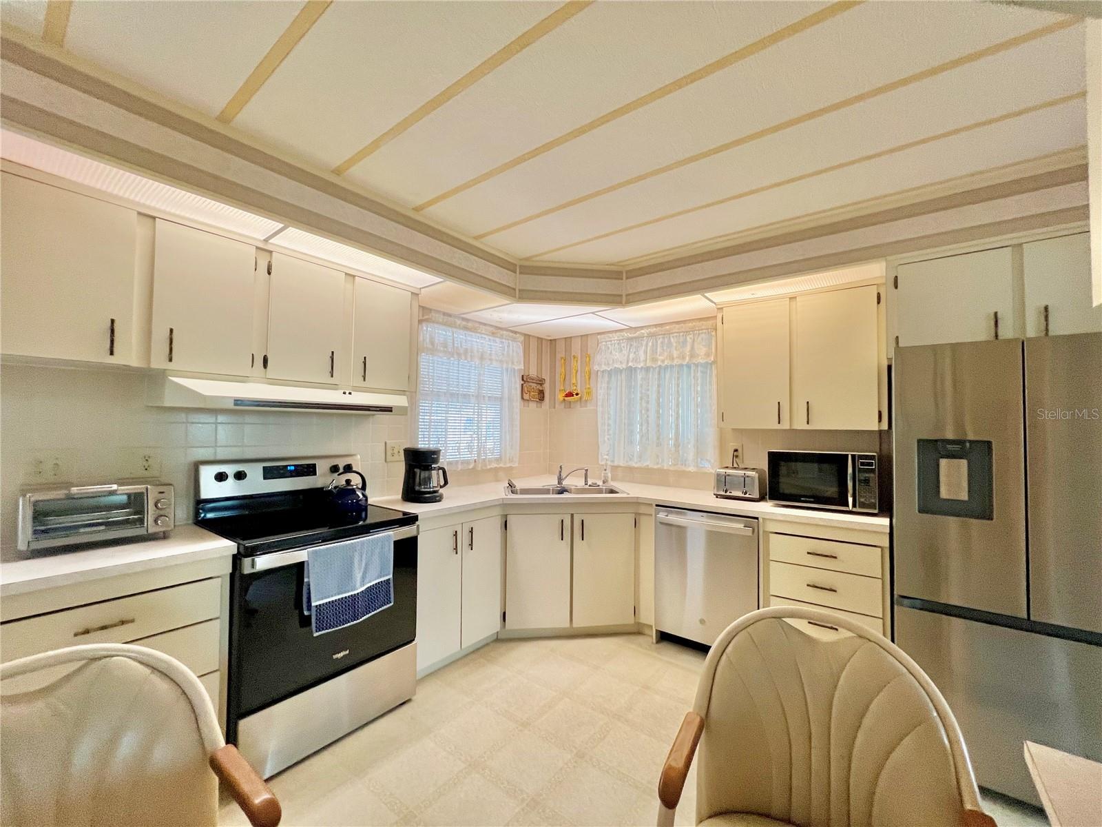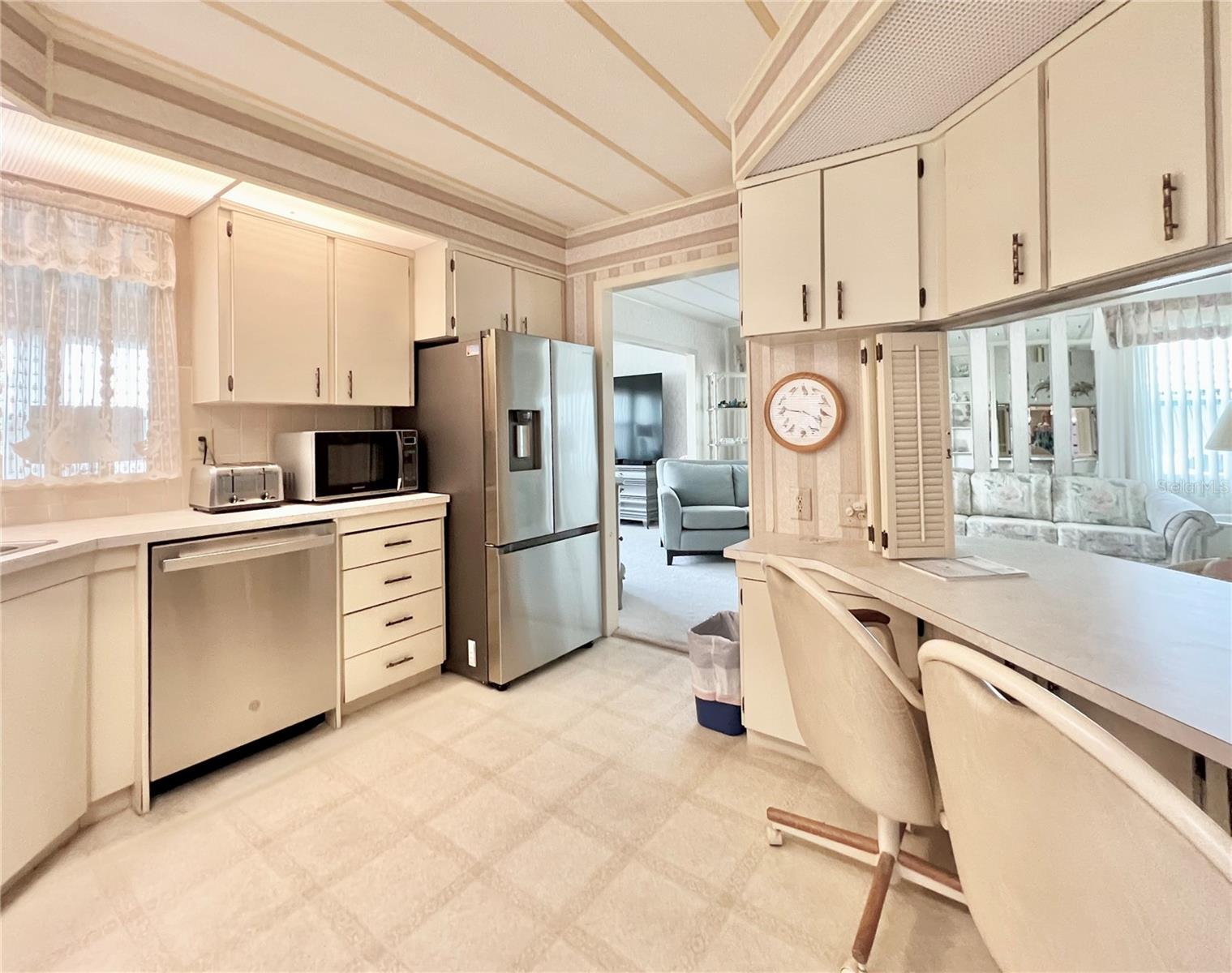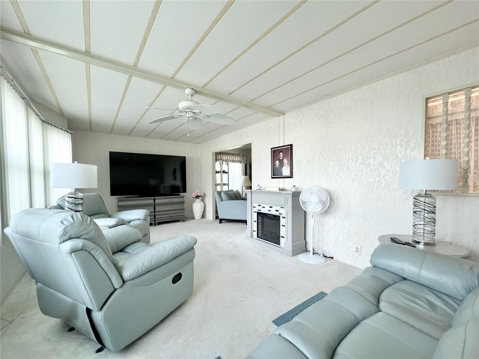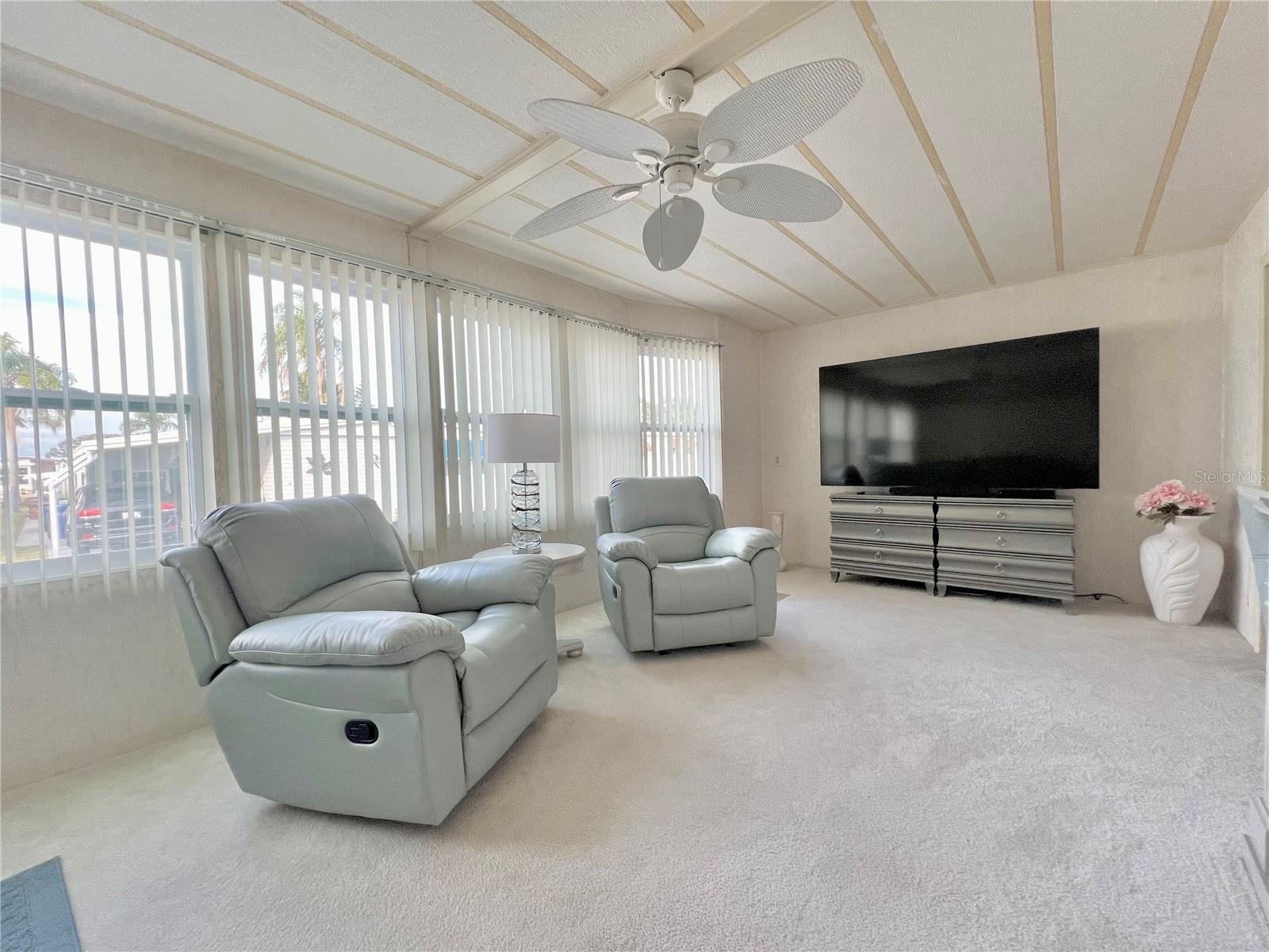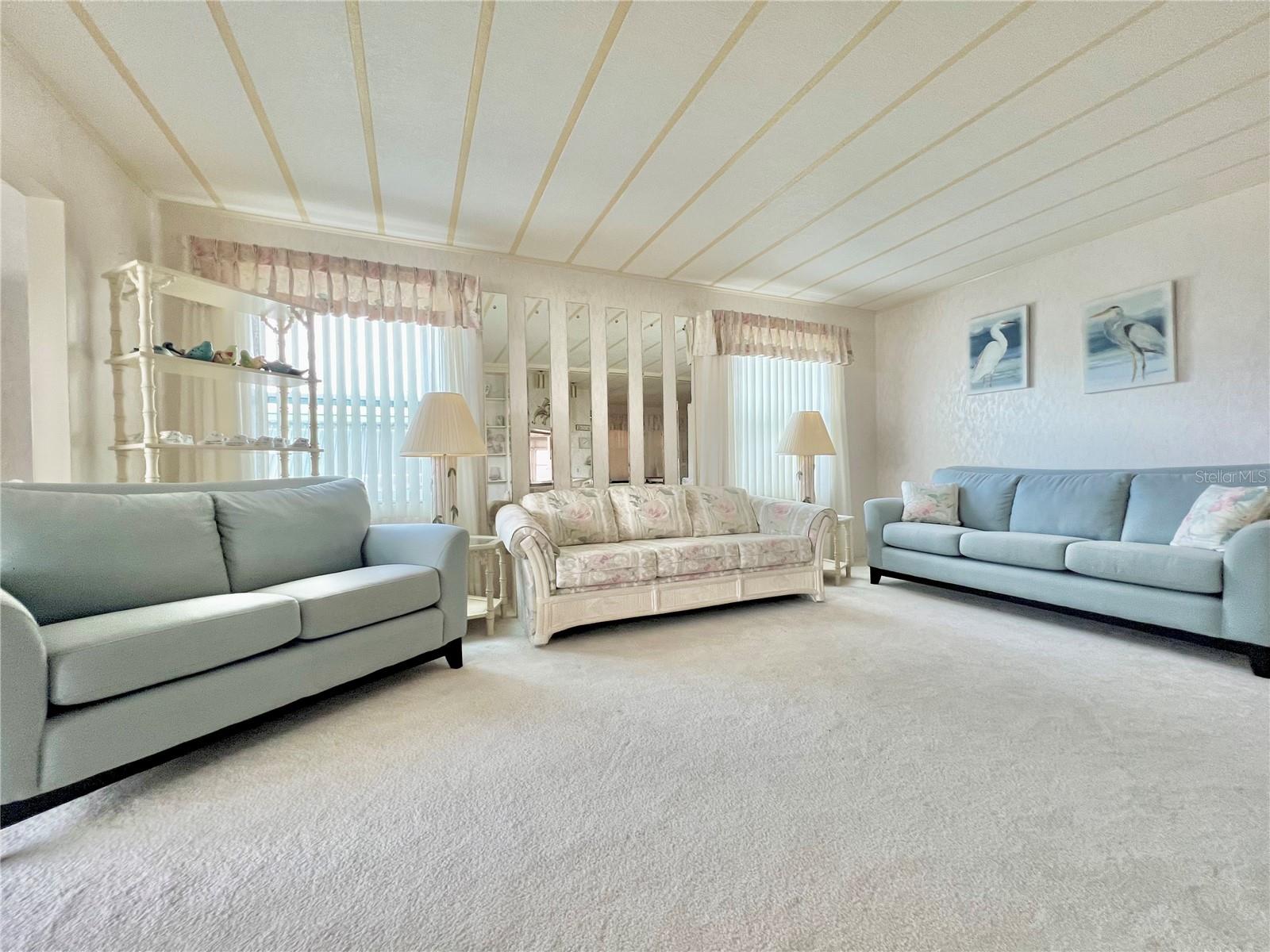 VERY MOTIVATED SELLERS...NEEDS TO SELL DO TO MEDICAL ISSUES! Check this one out NOW!!! Welcome to this charming 2-bedroom, 2-bath home located in the vibrant 55+ Co-Op share community of Fairway Village. This peaceful and inviting neighborhood offers residents the unique opportunity to enjoy year-round golfing for a nominal yearly fee or on a pay-as-you-play basis. Each home in Fairway Village is co-op owned by the residents, ensuring a true sense of community and pride in ownership. The affordable maintenance fee of $401 per month covers water, sewer, garbage, lawn care, and Spectrum's basic fiber-optic cable and internet for every home. Nestled just eight doors down from the South Pool, which is heated during the winter months and maintained year-round, this lovely home provides the perfect setting for both relaxation and recreation. You’ll appreciate the added convenience of a one-car carport, an enclosed lanai at the back of the carport, and two spacious sheds—one featuring a newer washer and dryer and the other offering ample space with double rear doors to store your golf cart. Boasting fresh updates, including new double-pane windows installed within the last year and a brand-new roof over in 2024, this home is both energy-efficient and move-in ready. Partially furnished and ready for immediate occupancy, this home offers a warm, welcoming atmosphere throughout, with an abundance of natural light. The large kitchen features a convenient sit-down island, ideal for enjoying your morning coffee or breakfast with loved ones. A set of bifold doors provides the option to close off this space, enhancing privacy. The dining room is equipped with a functional, extendable table and a built-in china hutch, offering both style and practicality. With 1,445 square feet of heated and cooled space, high ceilings throughout, and an open floor plan, the home feels both spacious and airy. The generously sized primary bedroom offers a walk-in closet and an en-suite bathroom with a walk-in shower and a separate vanity area for added comfort and privacy. The second bedroom is also a comfortable size, perfect for guests or family. Additionally, the front Florida room, previously enclosed, is now seamlessly integrated into the living space, adding to the home’s overall square footage. This is truly a well-maintained, move-in-ready home with an open and inviting layout. This home is the perfect choice for anyone seeking a well-maintained, spacious retreat in a peaceful community. Don't miss out on this opportunity—schedule a viewing today and experience all this beautiful home has to offer. The list price includes the share, making this an even more appealing option. All information provided is deemed reliable but should be independently verified by potential buyers.