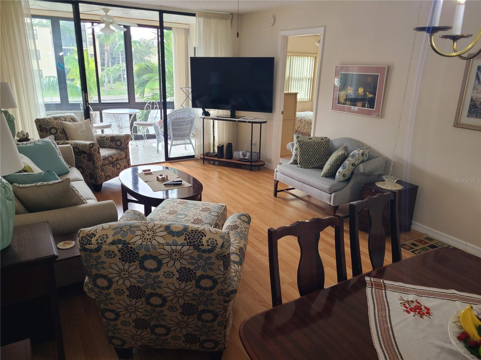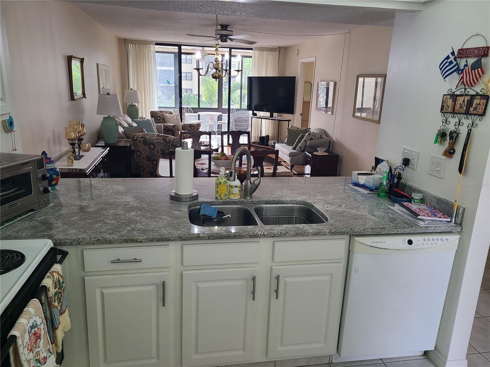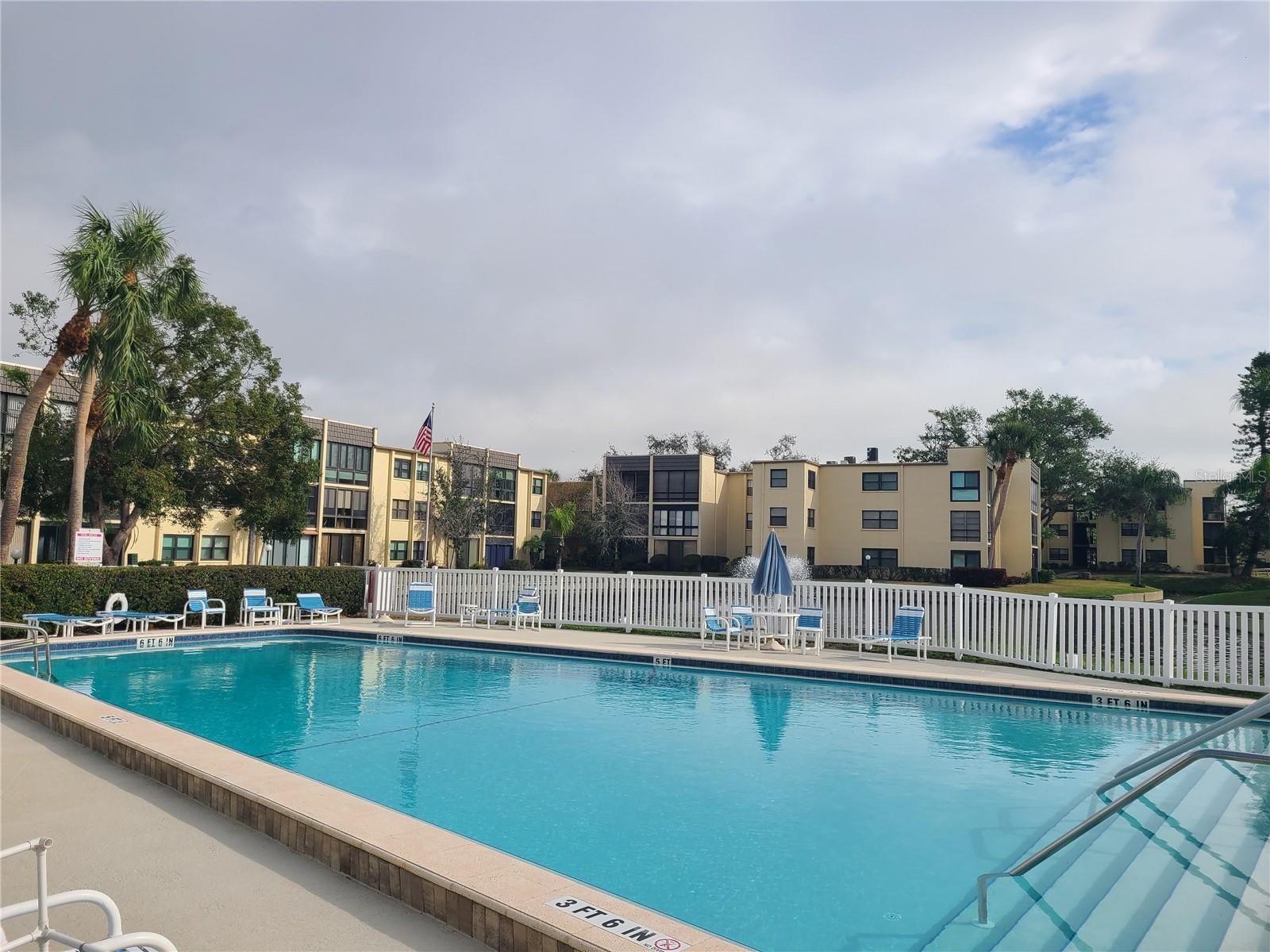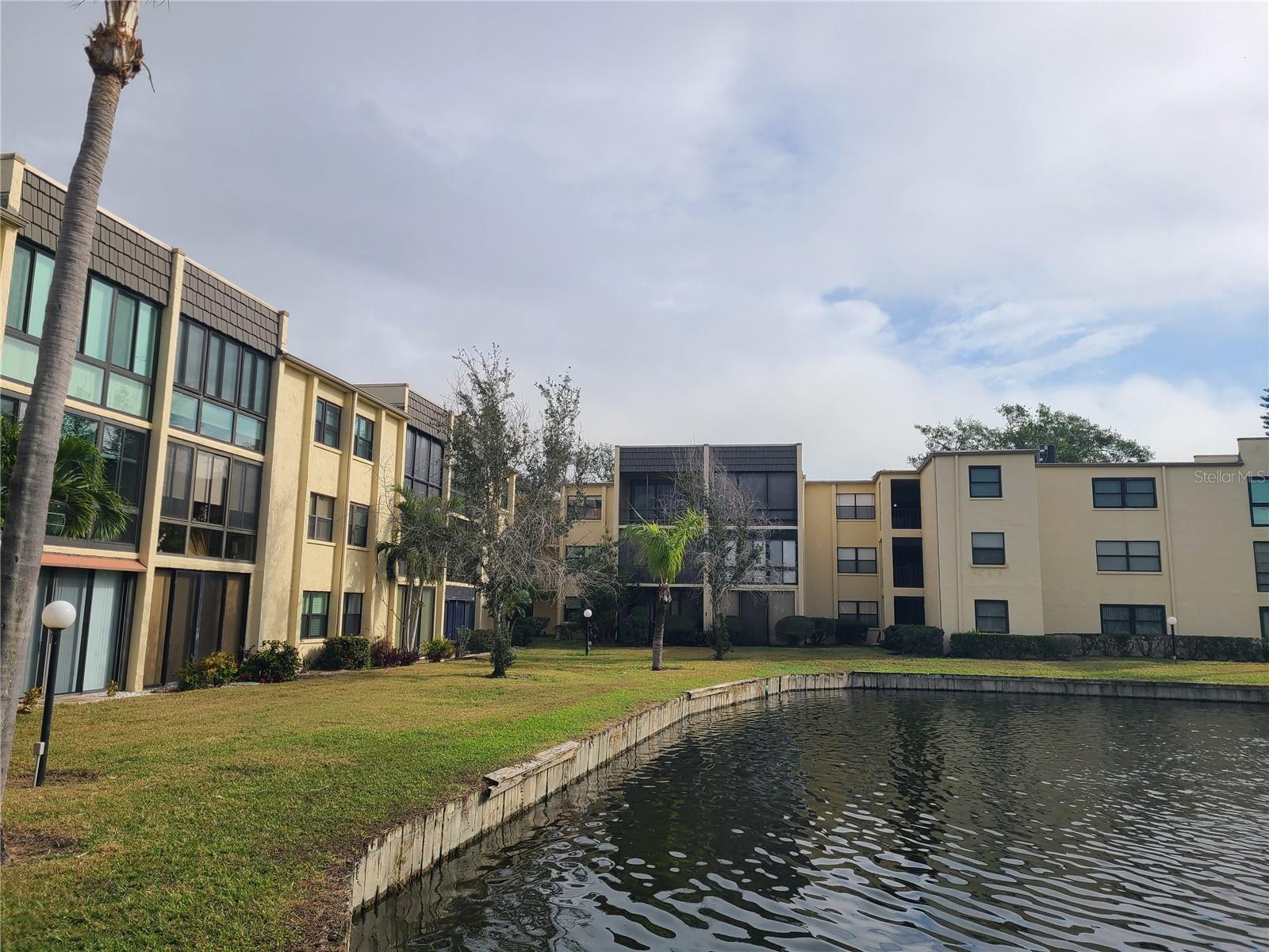 Welcome to this fantastic opportunity in Lakeview of Largo, a thriving 55+ community with an ideal location. As you enter this 2 bedroom, 2 full bathroom unit, you will be drawn into the bright and spacious living area. A wall of sliders transition to an inviting Florida room, overlooking the community pond and pool area, providing tranquil views and a perfect setting to unwind. The kitchen has been updated with granite counter-tops, gives ample storage space, and provides site lines directly into the living area and serene outdoors. The primary bedroom and en-suite bathroom are located in the back of the unit overlooking the pond, with private access to the Florida room. Light laminate wood flooring and tile throughout. On site laundry is available on every floor, elevator access, as well as 3 swimming pools (one heated), a clubhouse and spa, and shuffleboard and grill areas. The location is truly ideal, high and dry, yet just minutes from Indian Rocks Beach and there is shopping, restaurants and much more within walking distance or a short commute. NEW AC installed March 2025
