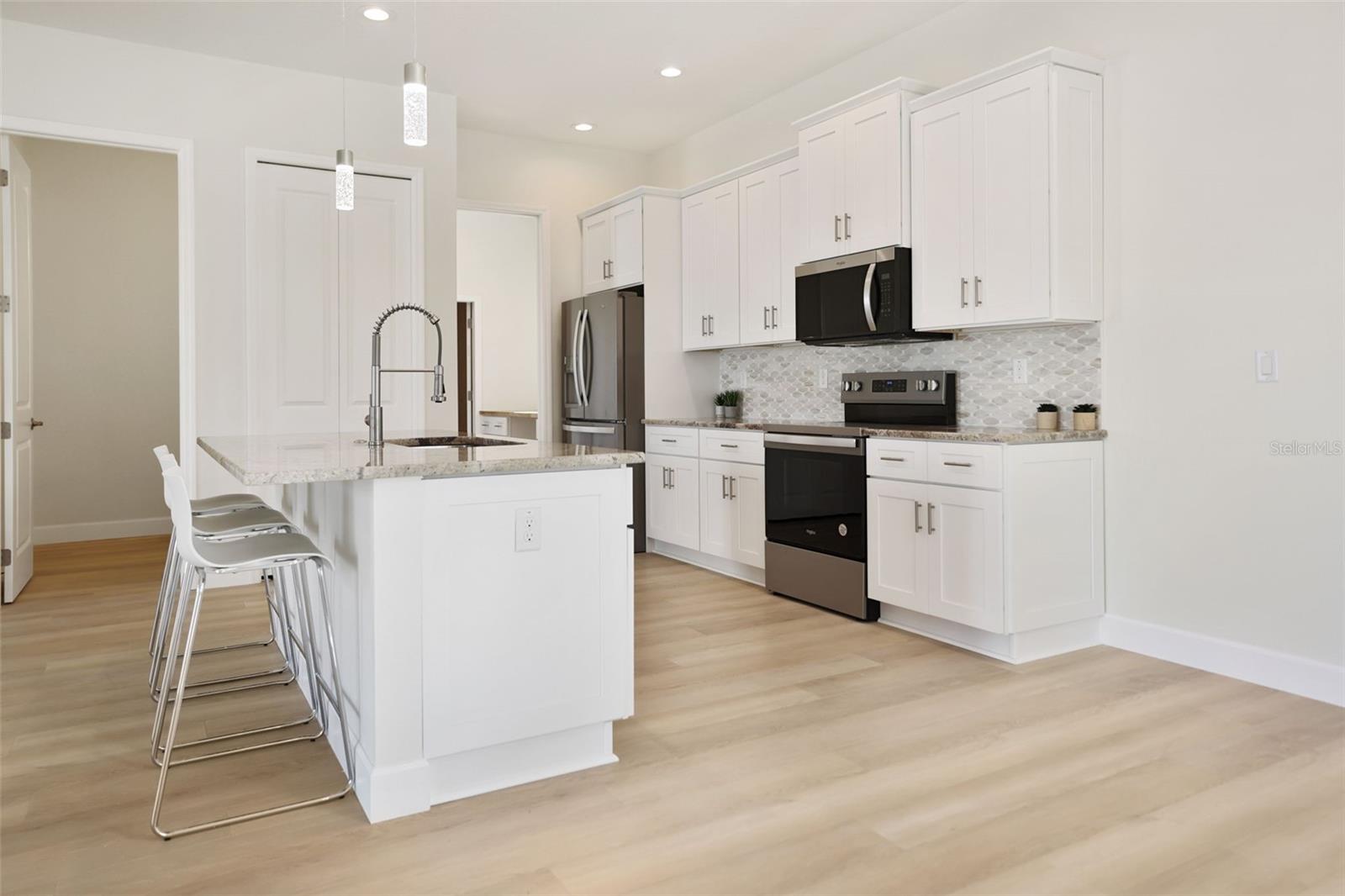 Under contract-accepting backup offers. Welcome to your brand new custom home, close to the Pinellas trail, near Walsingham park, only ten minutes from the beach, and not in a flood zone. This brand-new two-story home, features three bedrooms, two full baths, and a half bath on the main floor. The first floor includes a spacious great room with 10-foot ceilings, oak-finish vinyl flooring, large storage area under the stairs and an entry coat closet. The kitchen boasts white shaker cabinets, granite countertops, new stainless steel appliance and a pantry. The laundry room is larger enough to use as a small office and connects to the two-car garage. Shaded and relaxing covered porch on the side of the house for outdoor entertaining and relaxation. Upstairs, all the bedrooms are carpeted, with oversized closets in bedrooms two and three, and the primary bedroom has a large walk-in closet. High-impact windows are installed throughout for energy efficiency and protection from storms. No HOA, low insurance rate for new home construction. The home is agent/builder-owned. Don’t miss this opportunity to own a new home in the Largo / Seminole area. Schedule your private showing today and experience new home comfort.