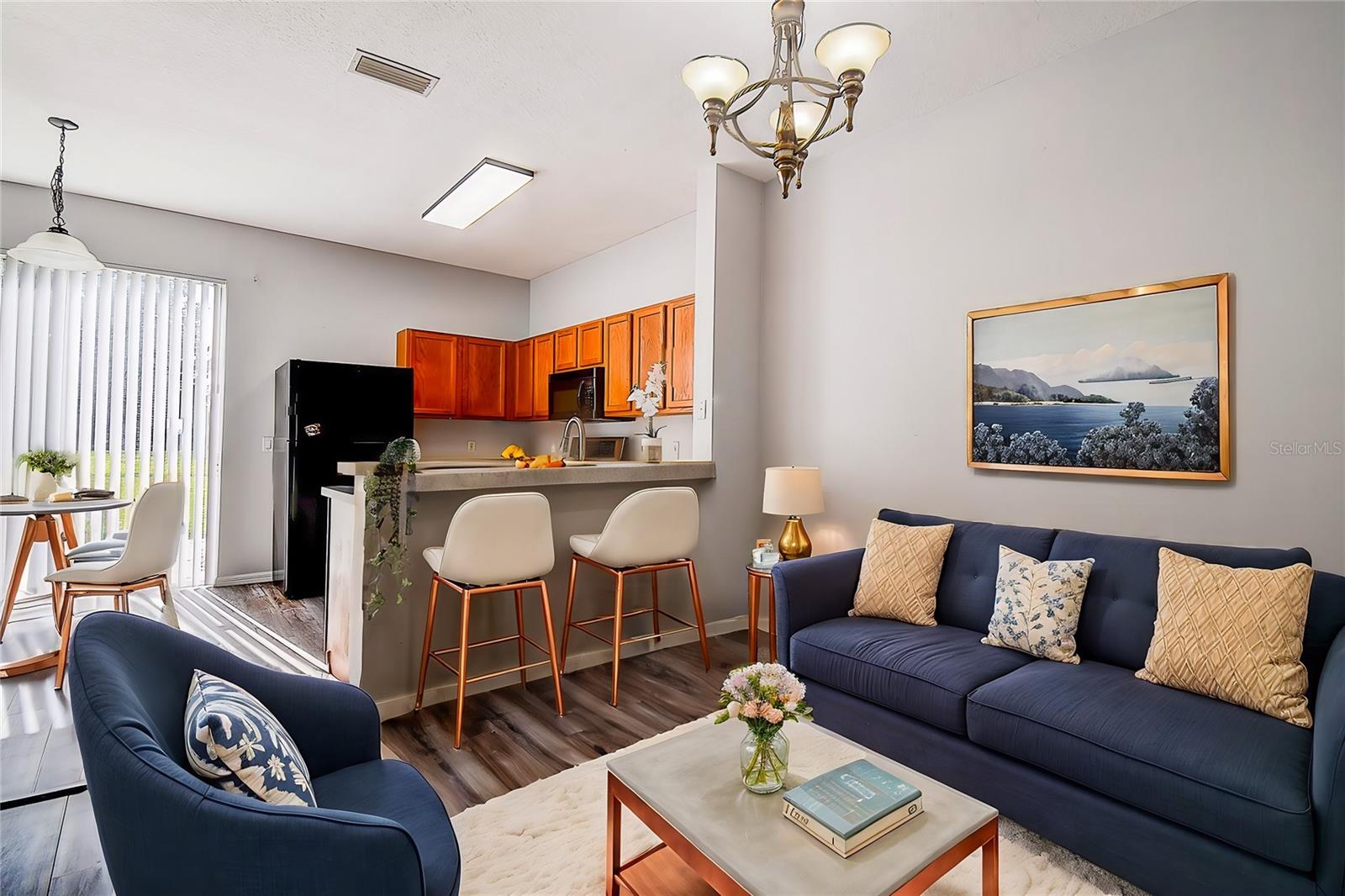 One or more photo(s) has been virtually staged. MOTIVATED SELLER!!! LARGE PRICE IMPROVEMENT!! WOW!! Welcome Home to this meticulously well kept 2 bedroom 2.5 bath townhome, situated in the quiet community of Seminole Palms of Largo. Walk in to this spacious townhome and you are immediately welcomed with cathedral ceilings, and an open floor plan perfect for entertaining! Freshly painted walls, baseboards and doors and all new luxury vinyl plank flooring throughout the entire first floor. Downstairs you will find a large living room, a breakfast bar area and a dedicated dining area. No need to jam all of your furniture into a tiny space! There is plenty of room here! Right off of the kitchen you find a half bathroom, perfect for your guests as well as a large kitchen pantry. Step upstairs where you will find 2 large bedrooms complete with their own en suite bathrooms and walk-in closets!! No need to go up and down the stairs to do your laundry! Laundry room can be found in the hallway between both bedrooms. Sip your morning coffee on your back patio where you will find no neighbors behind you (nice and quiet). Complete with a community pool just a short walk away, featuring a covered lanai, bathrooms, and plenty of lounge chairs! Centrally located within minutes of great restaurants, shopping, the interstate and Florida’s iconic beaches.