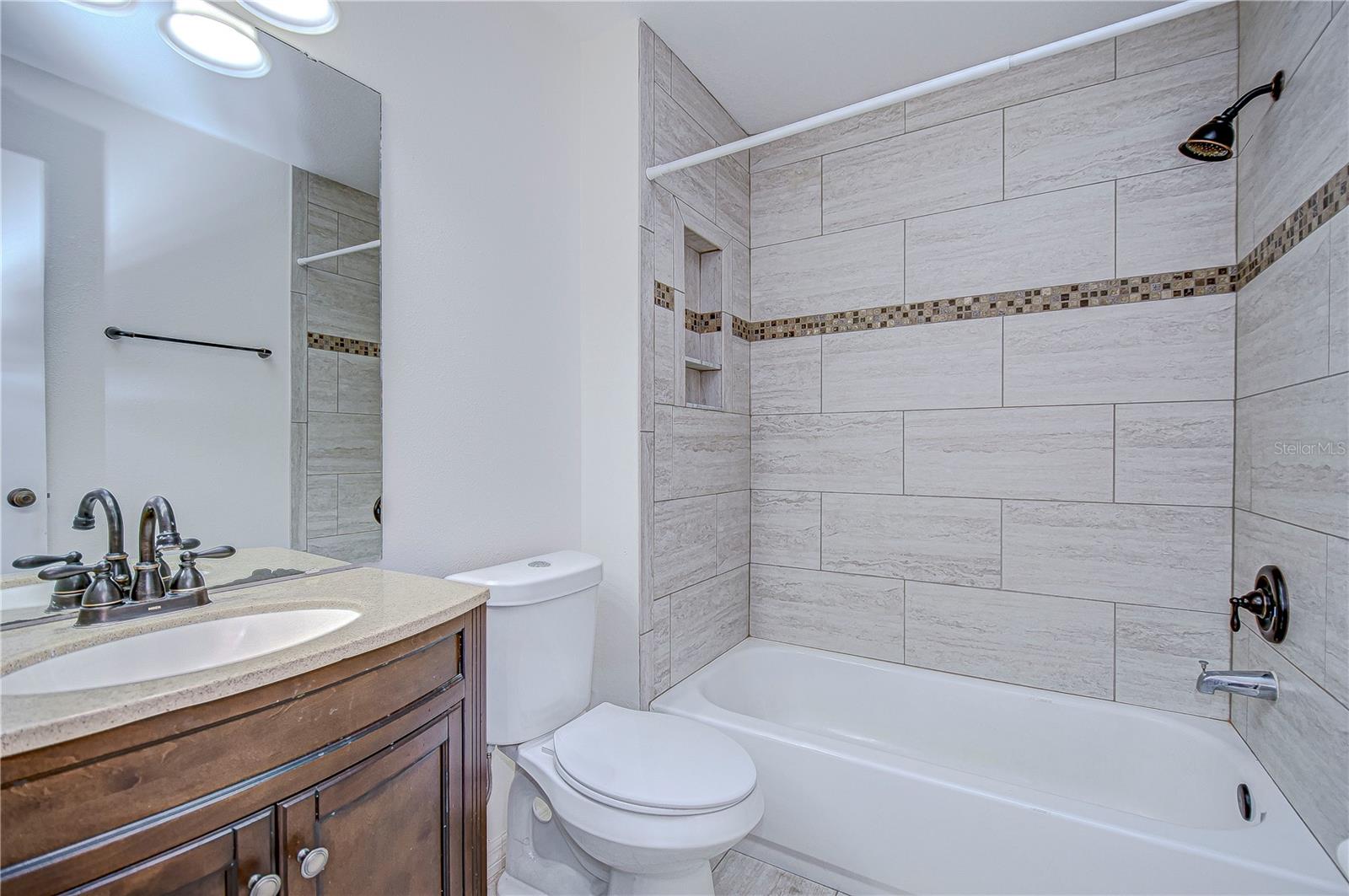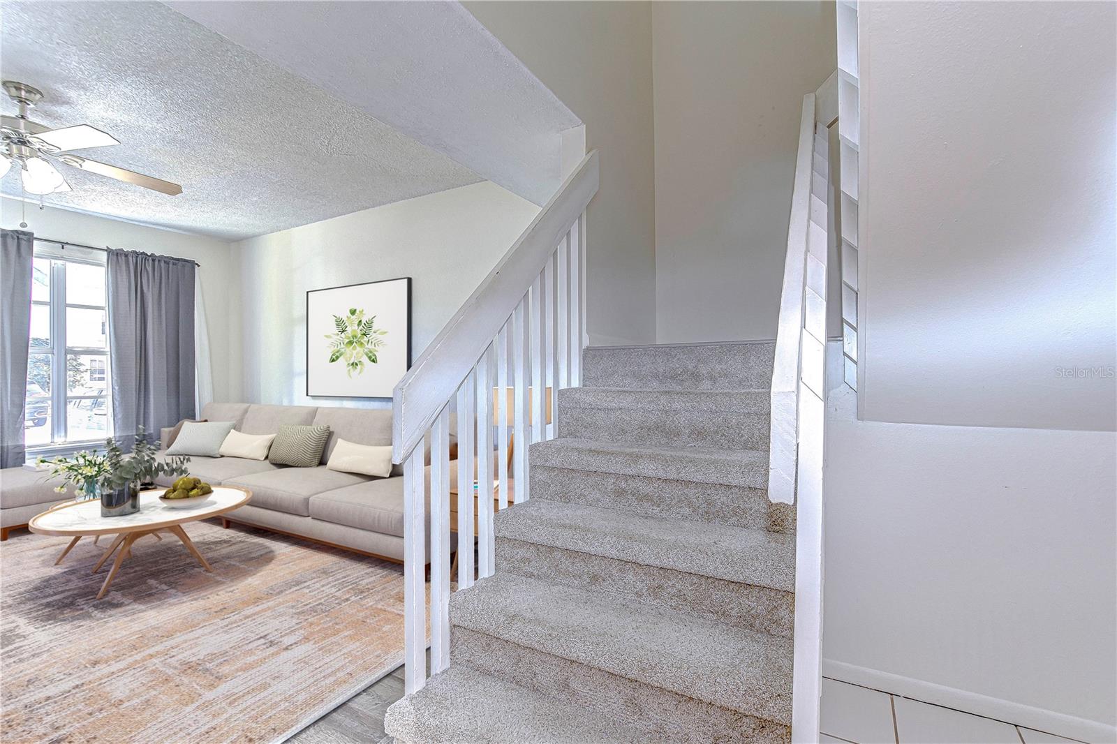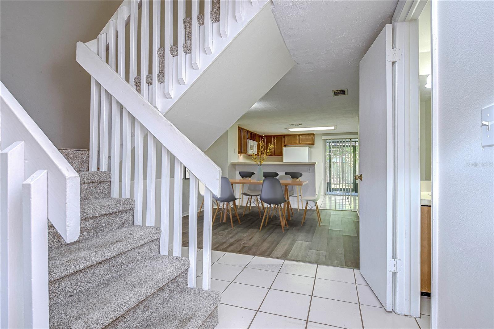One or more photo(s) has been virtually staged. $3,000 Move-In Credit to make this townhome your home!! Welcome to this bright and spacious 2-bedroom, 2.5-bathroom townhome in the highly sought-after Pinebrook Estates. Featuring a fantastic open floor plan, it offers dedicated living and dining areas conveniently adjacent to the kitchen. The living room is perfect for cozy nights in, with plenty of space for a large, comfortable couch to watch your favorite shows and games. The kitchen boasts solid wood cabinets and a breakfast bar ledge that serves as an additional informal dining space or extra counter space for entertaining. The first floor showcases upgraded, consistent vinyl plank flooring throughout the main living areas, adding a modern and cohesive touch. A convenient powder room and interior laundry closet enhance functionality. Just off the kitchen, step out to your dedicated pavered patio, ideal for outdoor dining or relaxing in the fresh air. A dedicated laundry area off the patio comes equipped with a washer and dryer that convey with your purchase, adding extra convenience. Upstairs, both bedrooms feature vaulted ceilings and their own en-suite bathrooms, offering complete privacy and comfort. The same upgraded flooring continues upstairs for a seamless design. Bonus storage under the stairs and on the covered porch provides plenty of space for your belongings. Parking is hassle-free with one reserved spot and ample visitor spaces. The community’s low HOA fees include exterior maintenance, lawn care, and access to a sparkling pool—perfect for cooling down in the summer or hanging out with friends and family! Centrally located in Pinellas County, this townhome is just minutes from shopping, dining, world-class beaches, downtown St. Pete, Tampa, and major highways. Don’t miss this opportunity to own this beautiful townhome in a prime location at this unbeatable price. Schedule your showing today!
