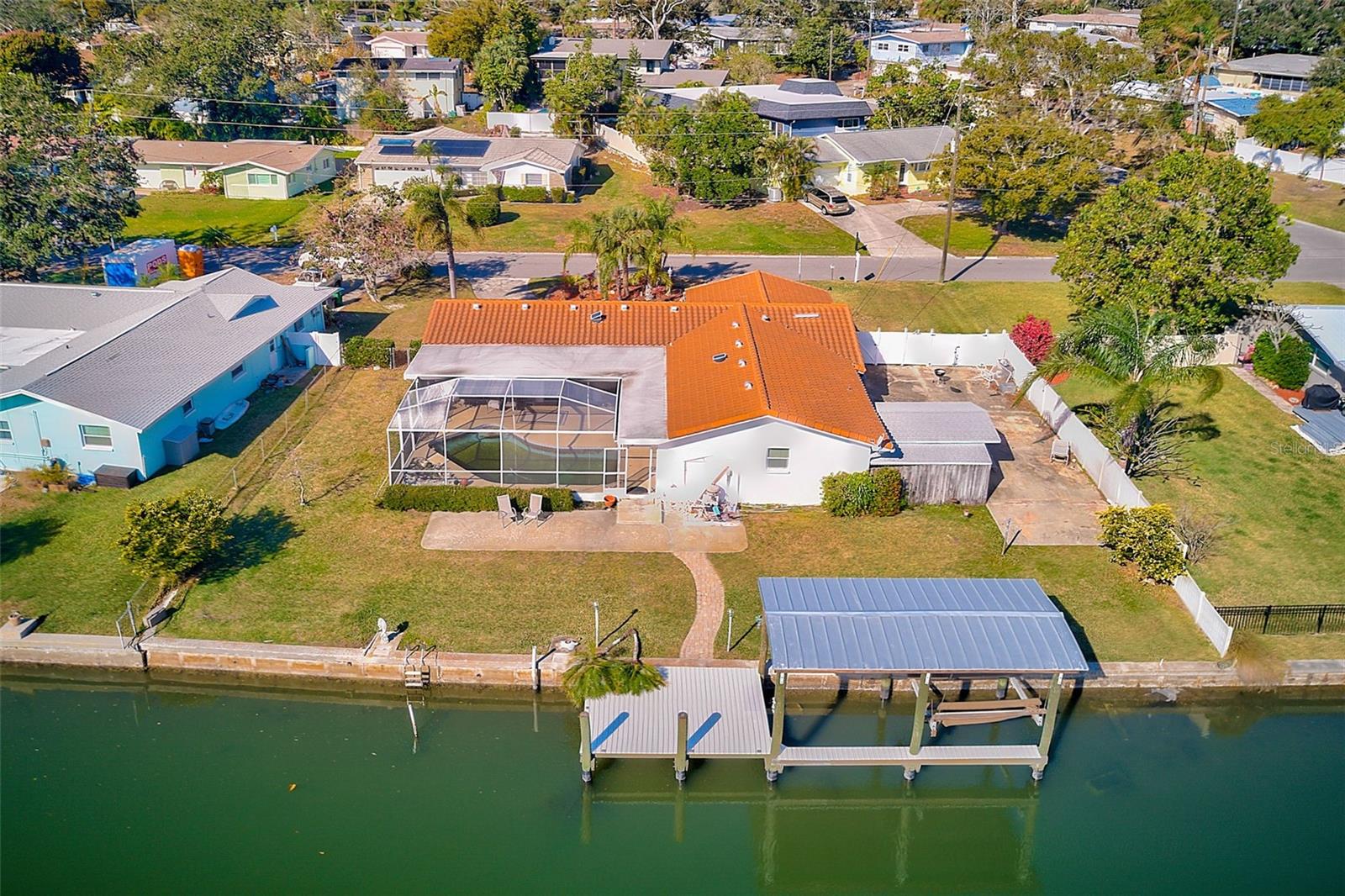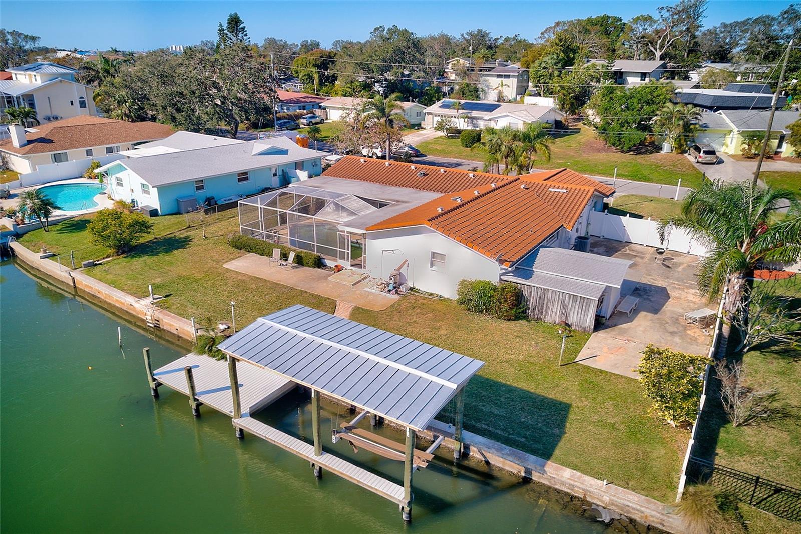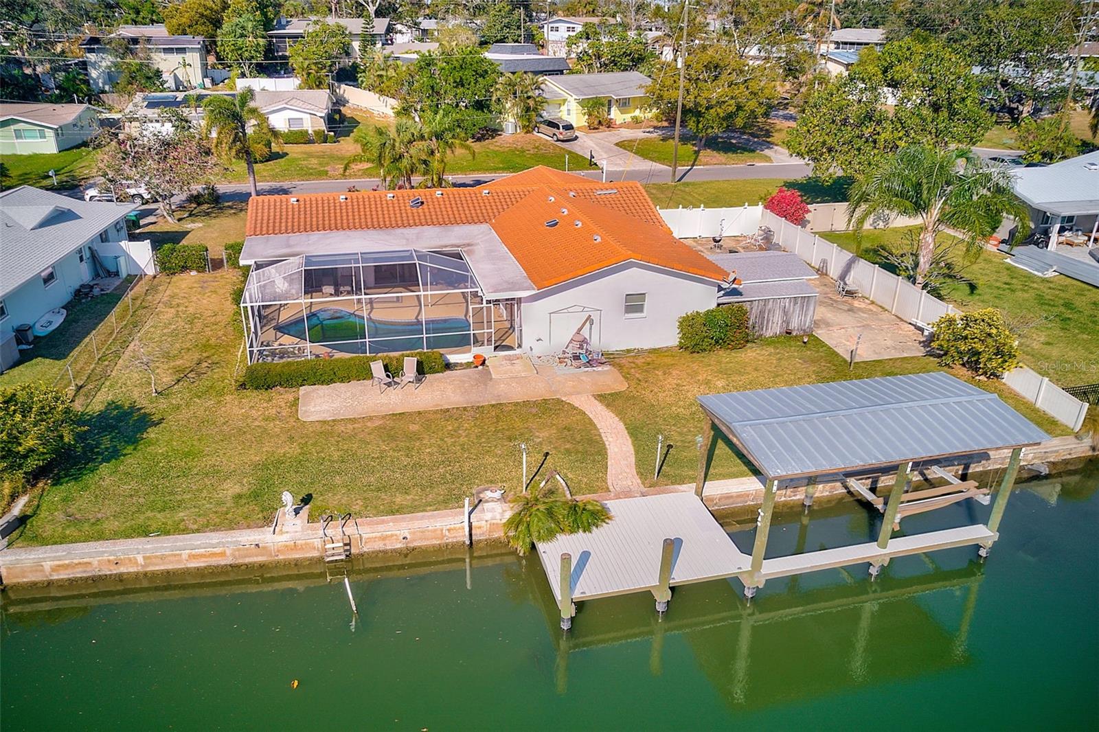 Welcome to 1575 Brookside Blvd, an incredible opportunity to own an oversized 0.3-acre waterfront lot in the sought-after Harbor Hills neighborhood. Tucked away on a quiet cul-de-sac road, this 3-bedroom, 2-bath home offers direct access to the Intracoastal and Gulf, perfect for those seeking the ultimate coastal lifestyle with the added bonus of being located in the top-rated school district. Enjoy 117 feet of prime water frontage, complete with a covered dock and boat lift, ideal for boating, fishing, or relaxing by the water. The in-ground pool and expansive yard offer a true outdoor retreat, with ample space for RV or boat trailer parking. The property has a newer roof and great bones and is not listed as substantially damaged. A full interior remediation has been professionally completed, including HVAC and duct sanitation. A third-party lab has certified the property is ready for its next chapter. Offering a rare chance to remodel or build your dream home in a premier location. The owner is motivated to sell and has priced the home below market value to encourage a quick sale. Whether you’re looking to invest, rebuild, or renovate, this lot presents exceptional potential. Don’t miss this chance to secure a waterfront property in one of the area’s most desirable communities, all for under a million dollars. Buyers are encouraged to review applicable FEMA, State, County, and City guidelines for reconstruction or renovation.