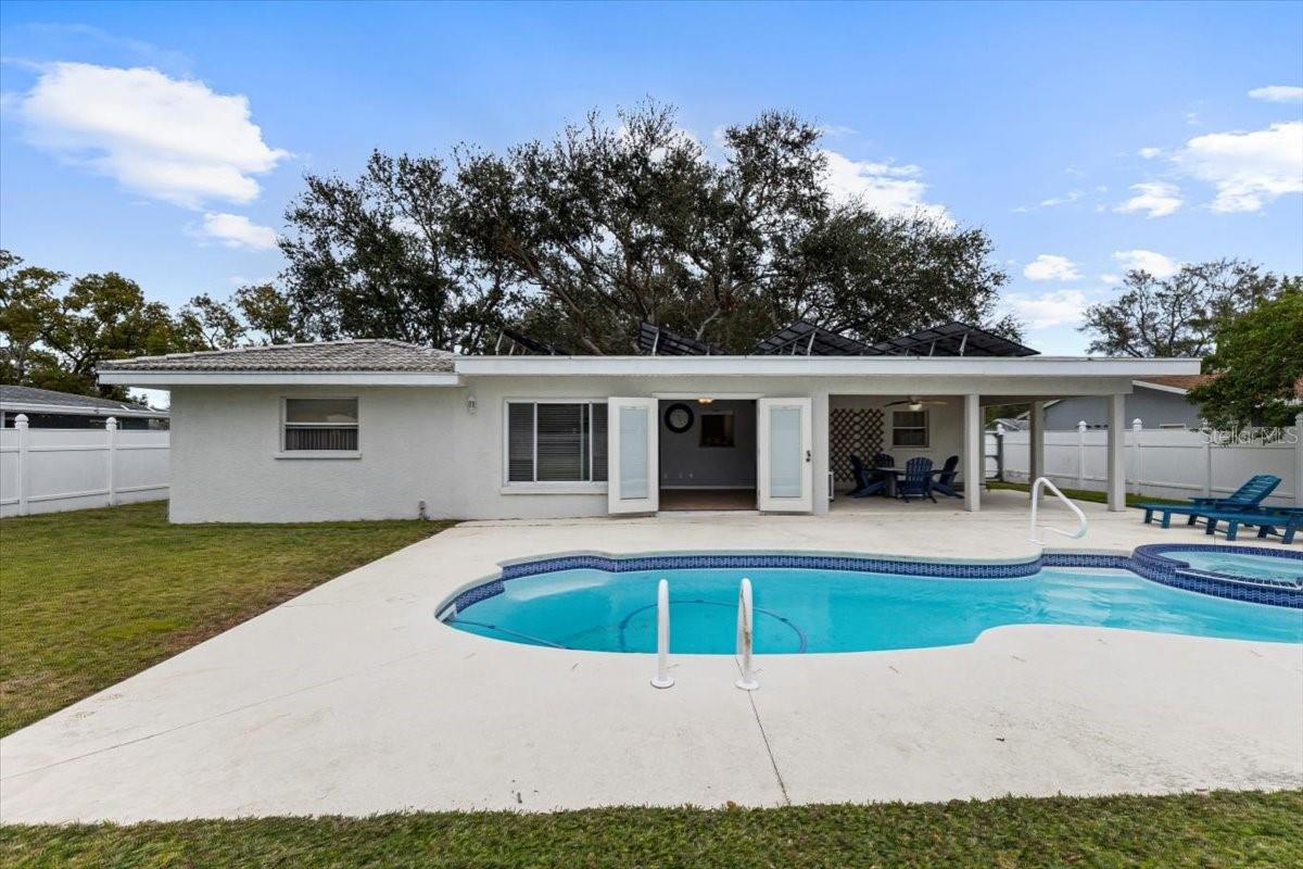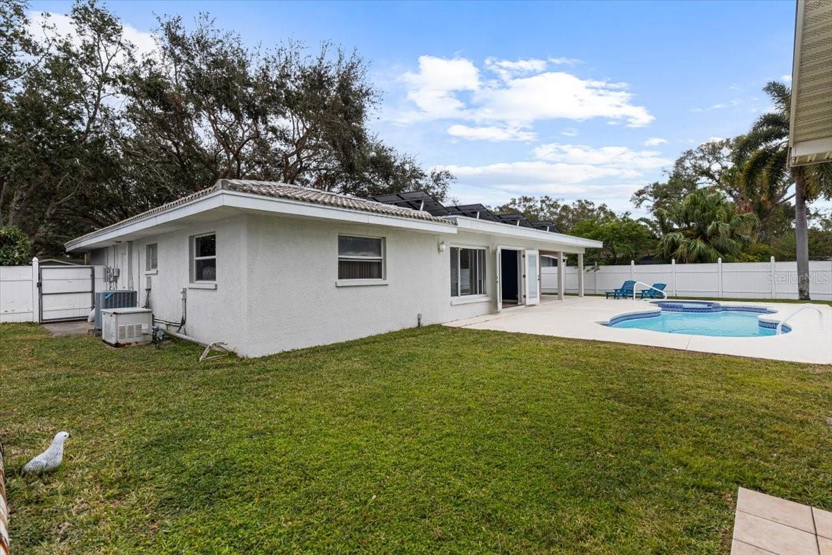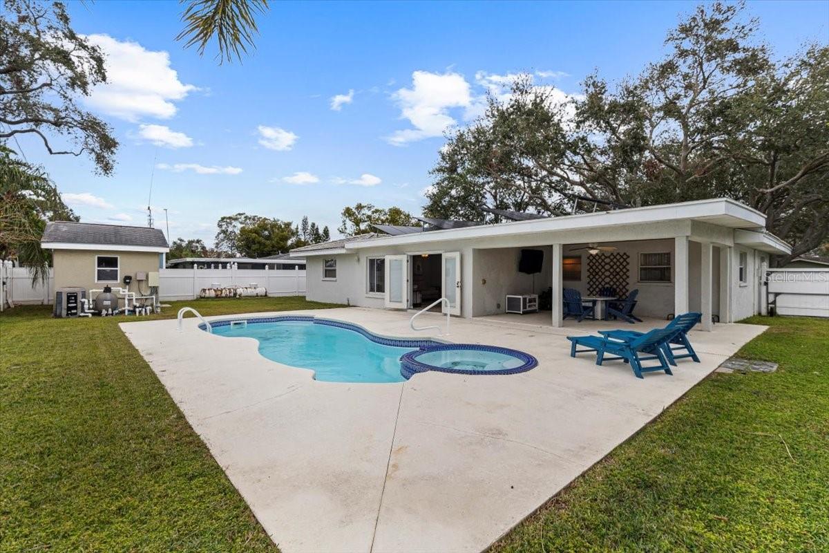 Welcome to your dream home in sunny Largo, Florida! This stunning property boasts three bedrooms and two bathrooms, offering comfort and space for your family and guests. The primary bedroom ensures privacy and relaxation, featuring an elegant split plan design that promotes tranquility. Spread across 1624 square feet of living space, this home includes a spacious living area that seamlessly connects entertaining and daily life. The interiors are enhanced with modern finishes, creating a warm and inviting atmosphere that immediately feels like home. Outside, indulge in the luxury of your own saltwater pool with a spa, designed for ultimate relaxation and year-round enjoyment. The eco-conscious will appreciate the solar panels and built-in generator, ensuring energy efficiency and peace of mind during hurricane season. Also, who wouldn't want an electric bill of only $40 every 6-8 months?!? Located just a hop, skip, and a jump from the Largo Sports Complex, this house invites an active lifestyle. With Eagle Lake Park within walking distance, nature enthusiasts will have easy access to outdoor adventures. Moreover, the home's durable tile roof and newer air conditioning make this property a practical choice as well, while located in a non-flood zone! This home isn’t just a place to live—it's a refuge from the ordinary. Savor the Florida sunshine and all the amenities this lovely area has to offer.