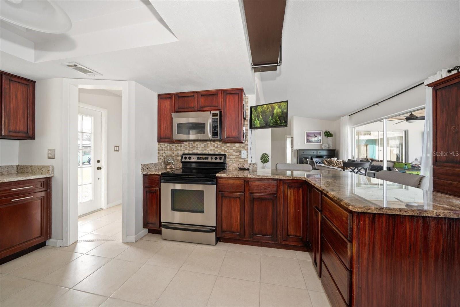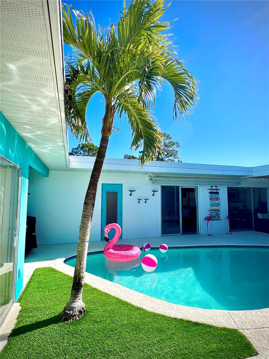 Situated high and dry in Flood Zone X, this breathtaking, non-tidal, lakefront pool home in the highly sought-after Suburban Estates community of unincorporated Largo (Can Airbnb!) is a rare gem that perfectly blends elegance, space, and modern convenience. Designed for both style and sustainability, the home features solar panels, providing energy efficiency and long-term savings. From the moment you arrive, the impeccable curb appeal and fresh landscaping set the stage for what lies beyond. The unique U-shaped layout exudes a Palm Beach-inspired charm, with the sparkling pool as its stunning centerpiece—visible from nearly every room through expansive sliding glass doors that flood the interior with natural light. The spacious, chef’s kitchen is a dream for entertainers and home cooks alike, featuring sleek stainless-steel appliances and ample counter space. Ideal for multigenerational living, this home boasts two primary suites, including a private luxury wing complete with a cozy seating area and breathtaking lake views. Plus, the added Bonus Office makes working from home effortless. Whether you’re sipping your morning coffee by the serene lake or hosting unforgettable gatherings by the pool, this home offers a lifestyle of comfort, beauty, and sophistication. Don’t miss this rare opportunity—schedule your private tour today!