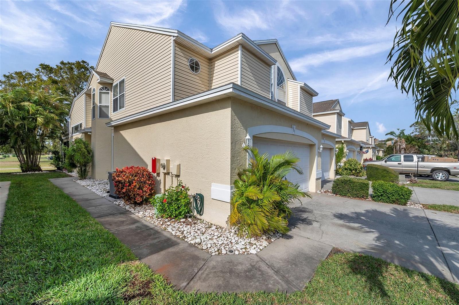 Get ready to be impressed with this stunning 3BR/2.5 END-UNIT Townhouse in an amazing Largo location. Tucked away in a quiet community, overlooking East Bay Golf Club. Enter the front door and you're greeted to soaring ceilings and abundance of natural light through a wall of windows in the living room. The bottom floor has a good sized living room, dining area, kitchen, indoor laundry and a half bath. There's also a room overlooking the golf course that could be a 4th bedroom, office or many other possible uses. Head upstairs and you'll find 2 good size bedrooms, guest bath and a primary suite complete with a private 2nd floor deck looking over the golf course. The unit has a 2 car garage and parking in the driveway as well. There's guest parking right around the corner. This mid-Pinellas location is ideal with easy access to all corners of Pinellas, and a quick drive over the bridge to Tampa. Easy to show, don't miss your opportunity to get a rare end-unit!