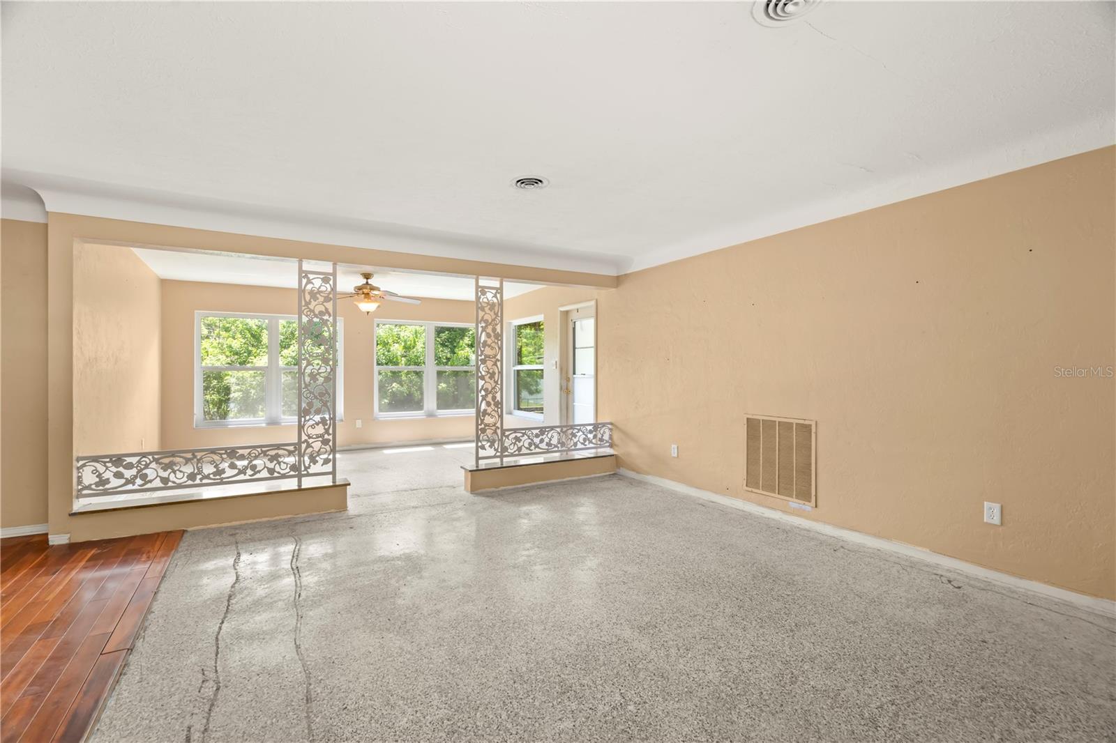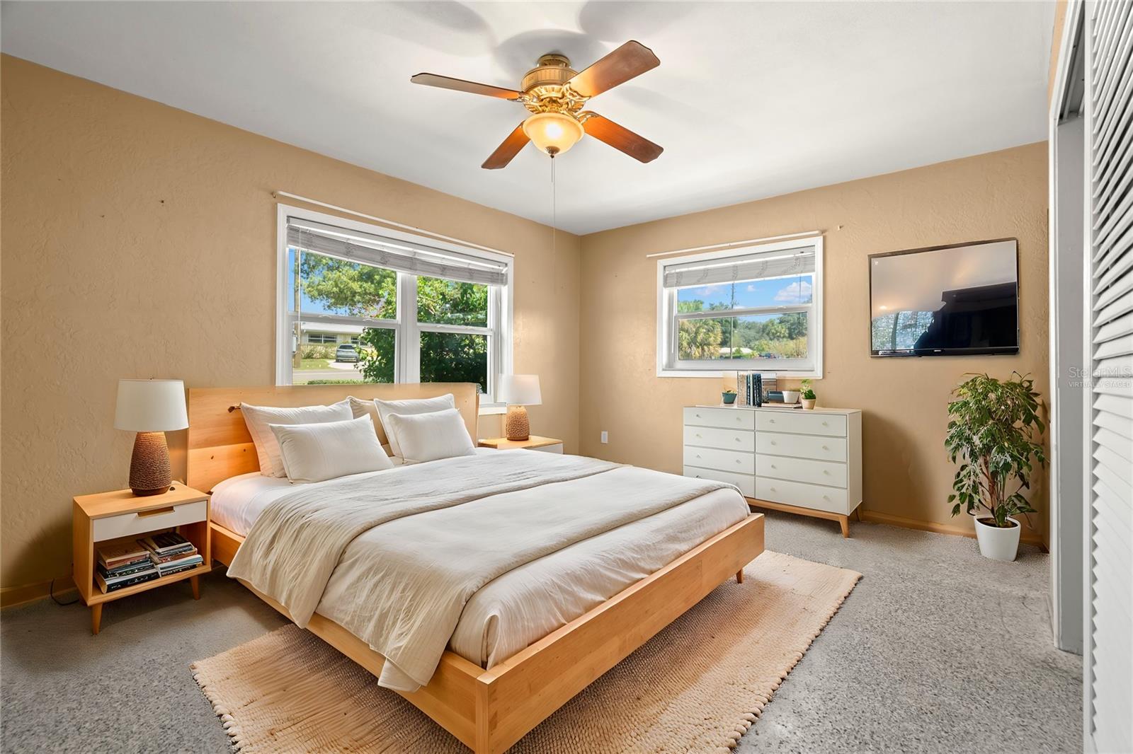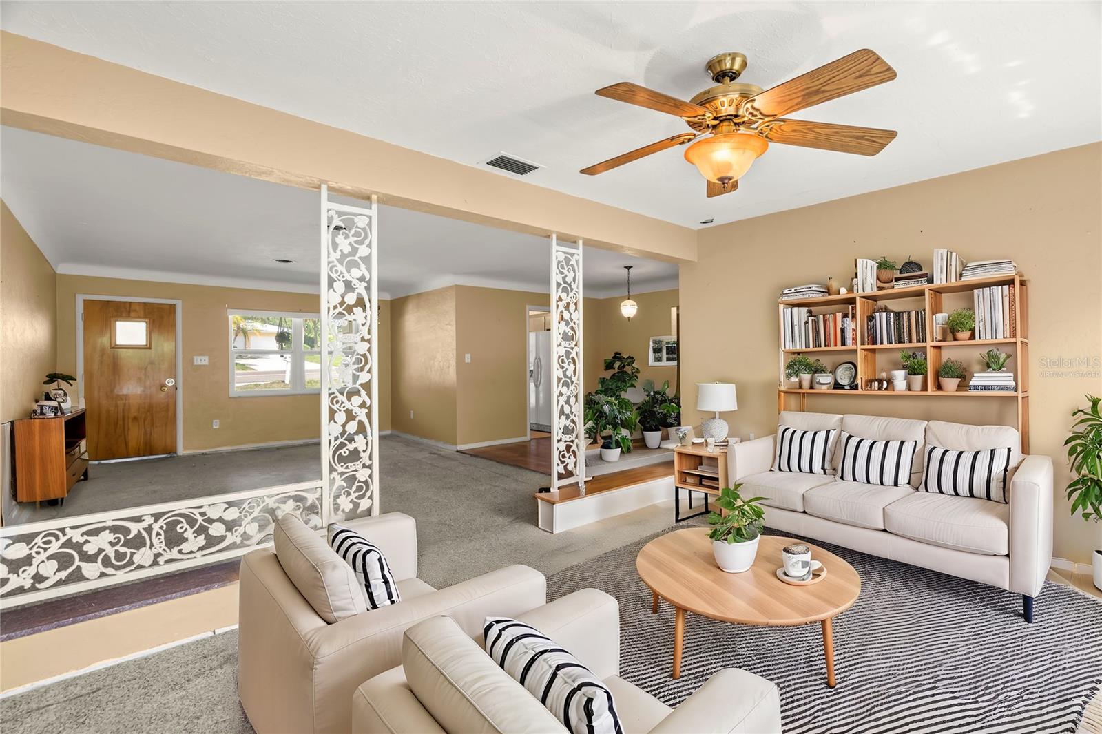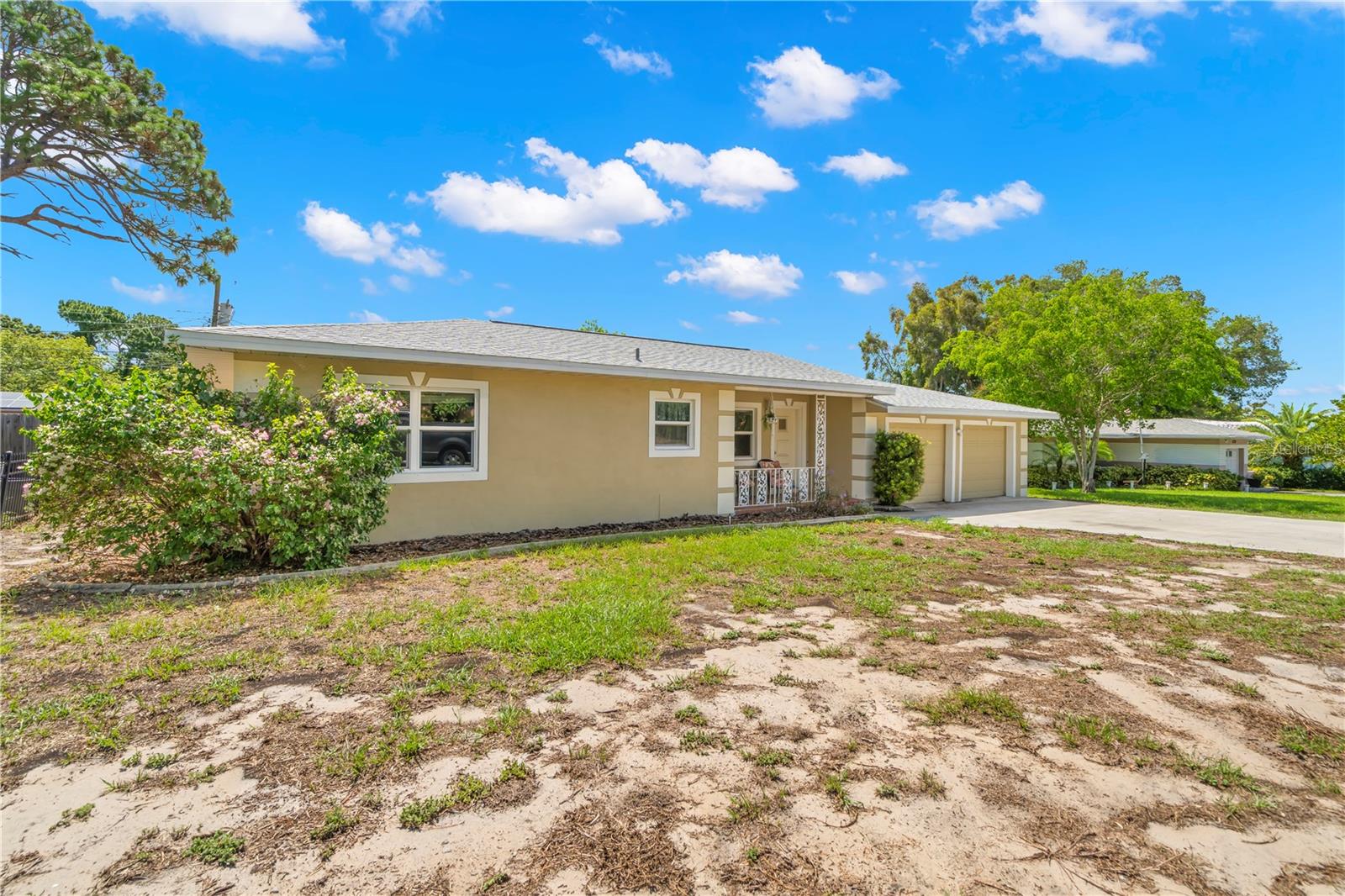 One or more photo(s) has been virtually staged. NO HOA, NON-FLOOD ZONE in PRIME LOCATION just 5 MINUTES FROM THE BEACH!! This 3-bedroom home is ready for a buyer to make it shine and would make a great Airbnb! With a NEW ROOF INSTALLED IN 2020, NEW WINDOWS IN 2019 and NEW STUCCO & EXTERIOR PAINT IN 2019, these major updates have already been completed for you. This home features a spacious TWO-CAR GARAGE with ample storage space and washer/dryer connections. The OVERSIZED DRIVEWAY can accommodate multiple cars, RV or BOAT, and the inviting COVERED FRONT PORCH adds charm and curb appeal. Inside, you'll find a roomy living room with COVED CEILINGS creating an elegant look and an ADDITIONAL FAMILY/FLORIDA ROOM with ceiling fan, ideal for extra living space, a home office, a larger dining room, art studio - the possibilities are endless! The ADORABLE VINTAGE RETRO kitchen is equipped with a built-in oven, cooktop stove, dishwasher, and a side-by-side refrigerator with water & ice dispenser. The kitchen also comes equipped with a ceiling fan, coffee bar hutch and a single French door that opens to the front porch. Conveniently located next to the kitchen is the dining room which features COVED CEILINGS and beautiful engineered wood flooring. The primary bedroom is generously sized and includes an updated En Suite bathroom with wainscoting on walls. A separate room with a tub/shower combo is accessible from both the primary bathroom and the guest room hallway, ensuring convenience for all three bedrooms, and features built-in linen storage. An additional large half guest bath is located in the hall. Keep the groovy look or update to a more modern style. All 3 bedrooms include CEILING FANS with lights. Carpeting has been removed from the living room, family room and bedrooms so it's ready for you to install flooring of your own style or keep the terrazzo underneath. HUGE SCREENED PATIO, with access to your spacious backyard, is perfect for gathering with family and friends for an outdoor barbecue. Situated just 5 MINUTES FROM THE BEACH and directly across from the popular Harbor Bluffs neighborhood, this home is close to restaurants, shopping, and parks. It's also JUST DOWN THE ROAD FROM JOHN S. TAYLOR PARK, offering BEAUTIFUL TRAILS, a FISHING LAKE, PICNIC AREAS, a PLAYGROUND, DOG PARK and a DISC GOLF COURSE. Move right in with a few updates or bring your vision and creativity to transform this home into your dream residence or a profitable investment property! PROPERTY DID NOT HAVE ANY FLOODING FROM RECENT HURRICANES!