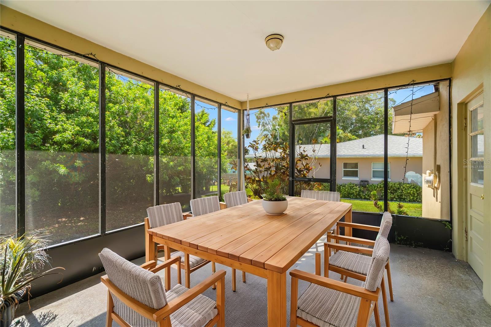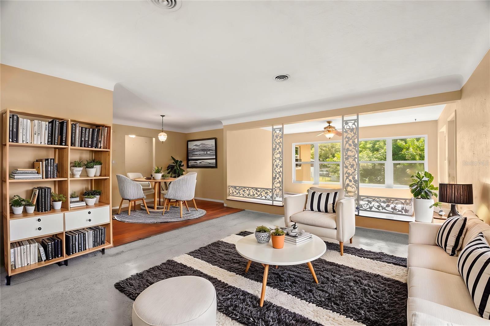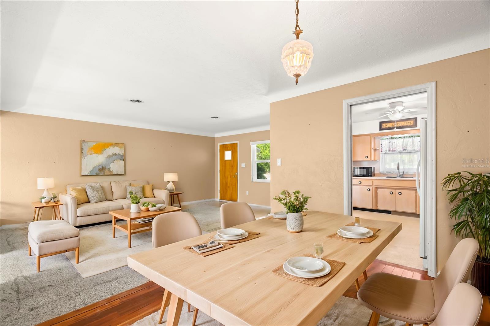 One or more photo(s) has been virtually staged. NO HOA, NON-FLOOD ZONE in PRIME LOCATION just 5 MINUTES FROM THE BEACH!! This 3-bedroom home is ready for a buyer to make it shine and would make a great Airbnb! With a NEW ROOF INSTALLED IN 2020, NEW WINDOWS IN 2019 and NEW STUCCO & EXTERIOR PAINT IN 2019, these major updates have already been completed for you. This home features a spacious TWO-CAR GARAGE with ample storage space and washer/dryer connections. The OVERSIZED DRIVEWAY can accommodate multiple cars, RV or BOAT, and the inviting COVERED FRONT PORCH adds charm and curb appeal. Inside, you'll find a roomy living room with COVED CEILINGS creating an elegant look and an ADDITIONAL FAMILY/FLORIDA ROOM with ceiling fan, ideal for extra living space, a home office, a larger dining room, art studio - the possibilities are endless! The ADORABLE VINTAGE RETRO kitchen is equipped with a built-in oven, cooktop stove, dishwasher, and a side-by-side refrigerator with water & ice dispenser. The kitchen also comes equipped with a ceiling fan, coffee bar hutch and a single French door that opens to the front porch. Conveniently located next to the kitchen is the dining room which features COVED CEILINGS and beautiful engineered wood flooring. The primary bedroom is generously sized and includes an updated En Suite bathroom with wainscoting on walls. A separate room with a tub/shower combo is accessible from both the primary bathroom and the guest room hallway, ensuring convenience for all three bedrooms, and features built-in linen storage. An additional large half guest bath is located in the hall. Keep the groovy look or update to a more modern style. All 3 bedrooms include CEILING FANS with lights. Carpeting has been removed from the living room, family room and bedrooms so it's ready for you to install flooring of your own style or keep the terrazzo underneath. HUGE SCREENED PATIO, with access to your spacious backyard, is perfect for gathering with family and friends for an outdoor barbecue. Situated just 5 MINUTES FROM THE BEACH and directly across from the popular Harbor Bluffs neighborhood, this home is close to restaurants, shopping, and parks. It's also JUST DOWN THE ROAD FROM JOHN S. TAYLOR PARK, offering BEAUTIFUL TRAILS, a FISHING LAKE, PICNIC AREAS, a PLAYGROUND, DOG PARK and a DISC GOLF COURSE. Move right in with a few updates or bring your vision and creativity to transform this home into your dream residence or a profitable investment property! PROPERTY DID NOT HAVE ANY FLOODING FROM RECENT HURRICANES!