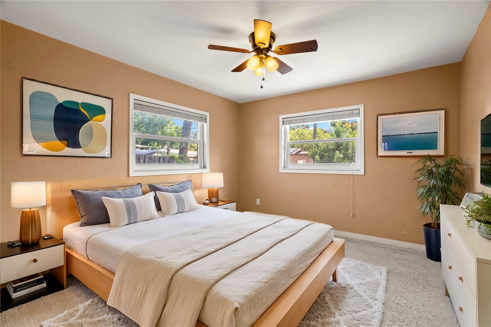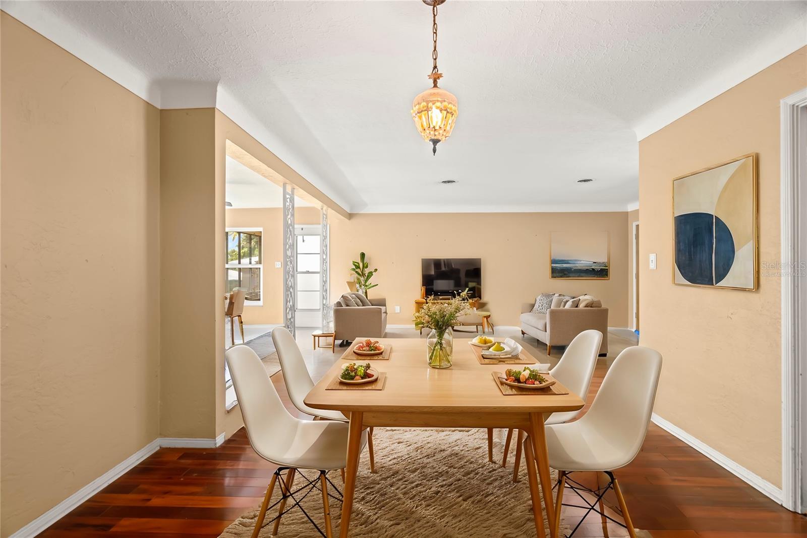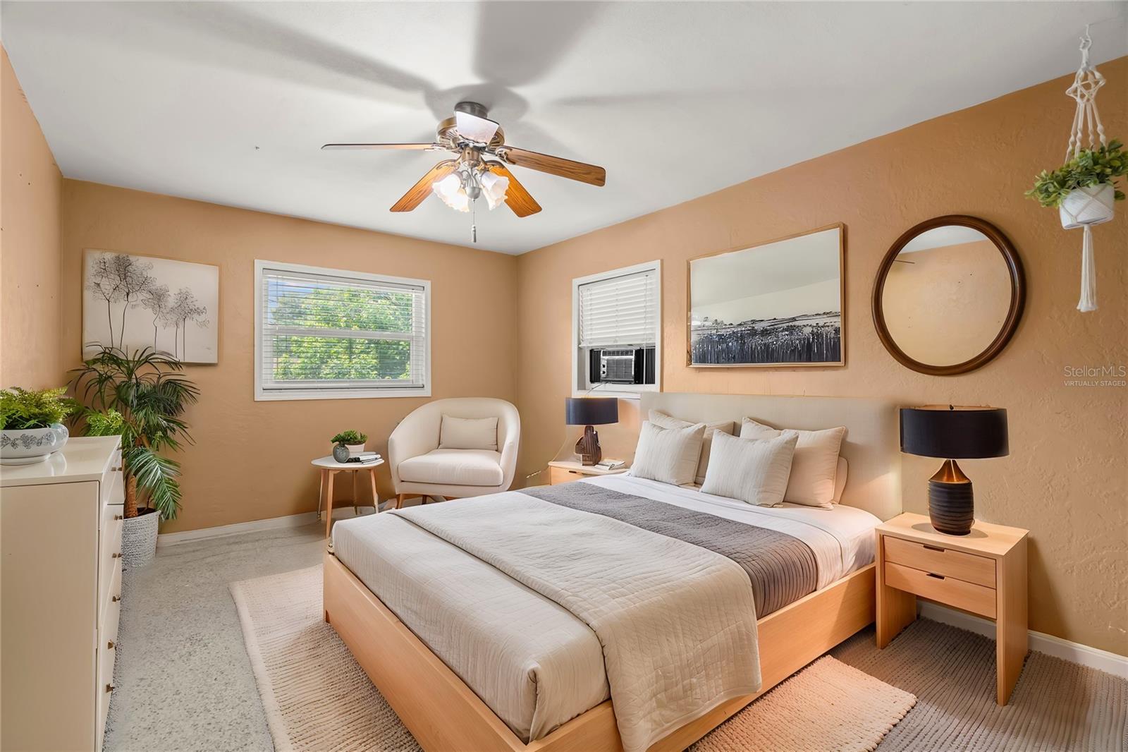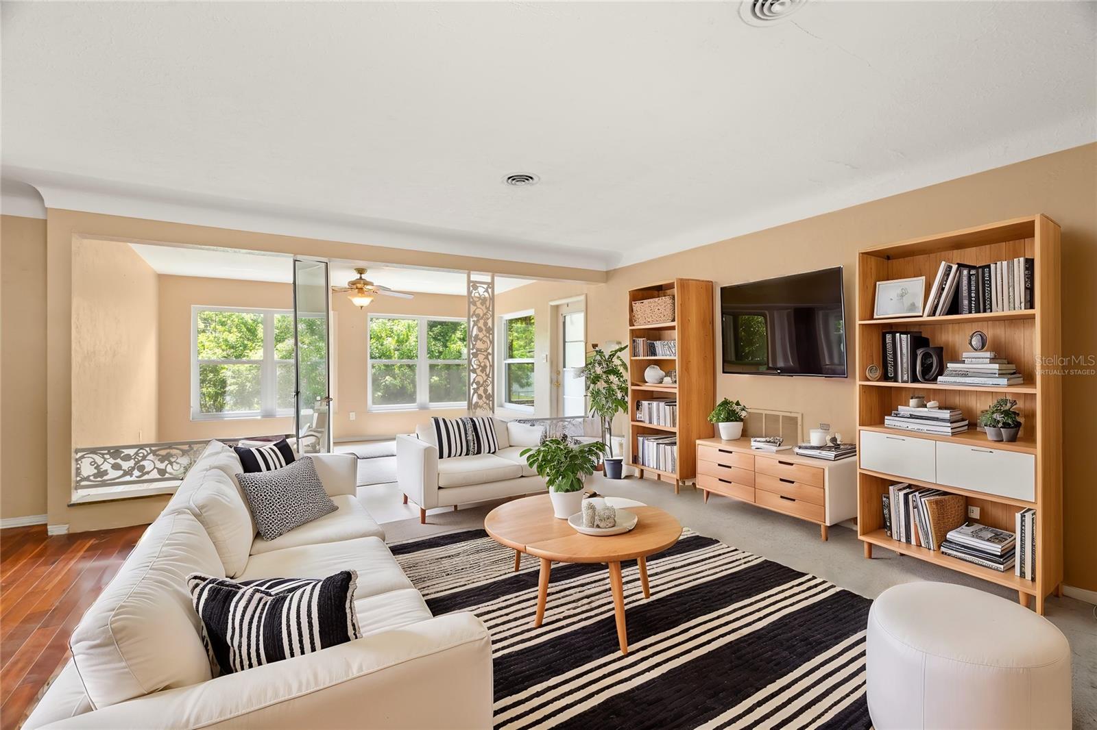 One or more photo(s) has been virtually staged. NO HOA, NON-FLOOD ZONE in PRIME LOCATION just 5 MINUTES FROM THE BEACH!! This 3-bedroom home is ready for a buyer to make it shine and would make a great Airbnb! With a NEW ROOF INSTALLED IN 2020, NEW WINDOWS IN 2019 and NEW STUCCO & EXTERIOR PAINT IN 2019, these major updates have already been completed for you. This home features a spacious TWO-CAR GARAGE with ample storage space and washer/dryer connections. The OVERSIZED DRIVEWAY can accommodate multiple cars, RV or BOAT, and the inviting COVERED FRONT PORCH adds charm and curb appeal. Inside, you'll find a roomy living room with COVED CEILINGS creating an elegant look and an ADDITIONAL FAMILY/FLORIDA ROOM with ceiling fan, ideal for extra living space, a home office, a larger dining room, art studio - the possibilities are endless! The ADORABLE VINTAGE RETRO kitchen is equipped with a built-in oven, cooktop stove, dishwasher, and a side-by-side refrigerator with water & ice dispenser. The kitchen also comes equipped with a ceiling fan, coffee bar hutch and a single French door that opens to the front porch. Conveniently located next to the kitchen is the dining room which features COVED CEILINGS and beautiful engineered wood flooring. The primary bedroom is generously sized and includes an updated En Suite bathroom with wainscoting on walls. A separate room with a tub/shower combo is accessible from both the primary bathroom and the guest room hallway, ensuring convenience for all three bedrooms, and features built-in linen storage. An additional large half guest bath is located in the hall. Keep the groovy look or update to a more modern style. All 3 bedrooms include CEILING FANS with lights. Carpeting has been removed from the living room, family room and bedrooms so it's ready for you to install flooring of your own style or keep the terrazzo underneath. HUGE SCREENED PATIO, with access to your spacious backyard, is perfect for gathering with family and friends for an outdoor barbecue. Situated just 5 MINUTES FROM THE BEACH and directly across from the popular Harbor Bluffs neighborhood, this home is close to restaurants, shopping, and parks. It's also JUST DOWN THE ROAD FROM JOHN S. TAYLOR PARK, offering BEAUTIFUL TRAILS, a FISHING LAKE, PICNIC AREAS, a PLAYGROUND, DOG PARK and a DISC GOLF COURSE. Move right in with a few updates or bring your vision and creativity to transform this home into your dream residence or a profitable investment property! PROPERTY DID NOT HAVE ANY FLOODING FROM RECENT HURRICANES!