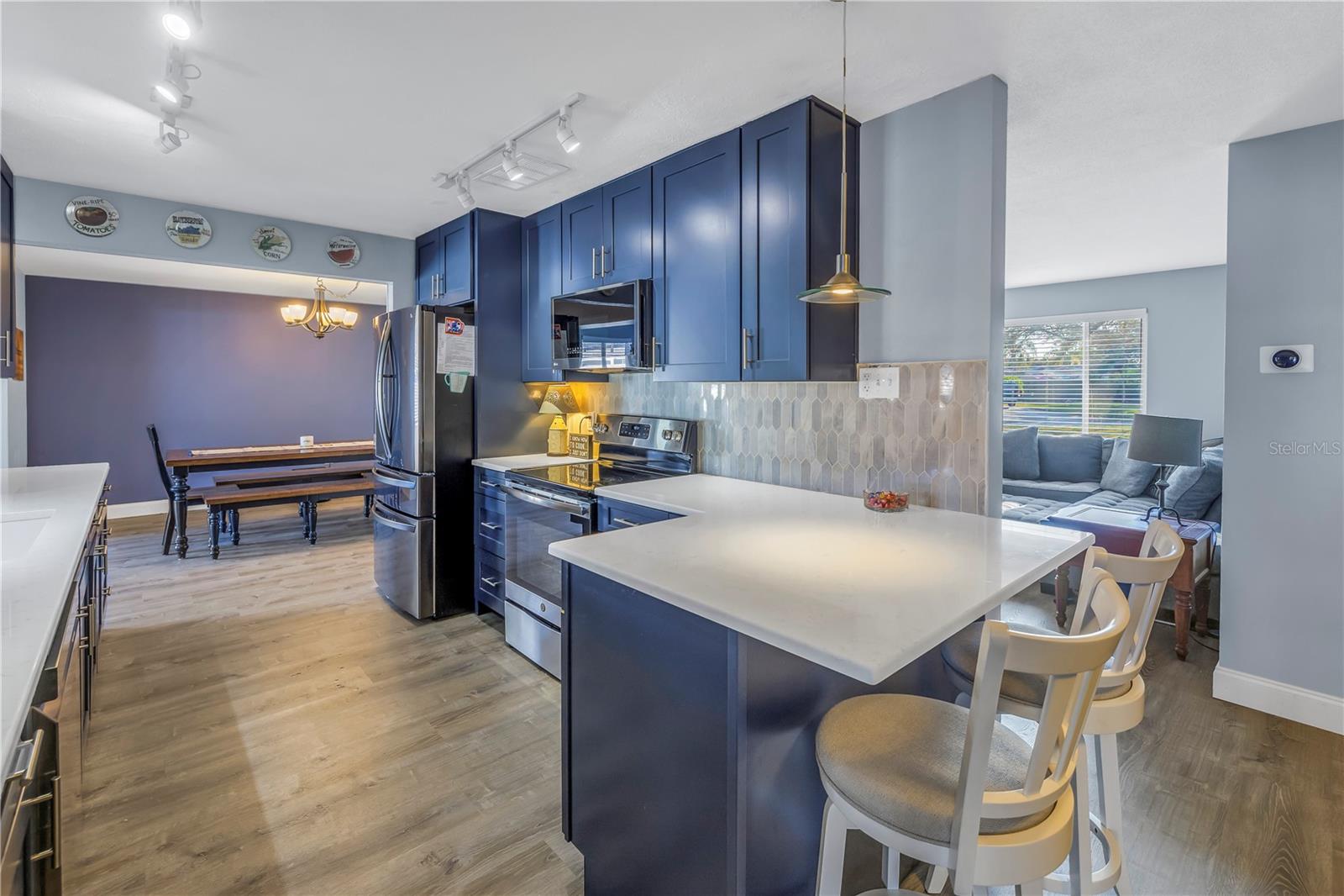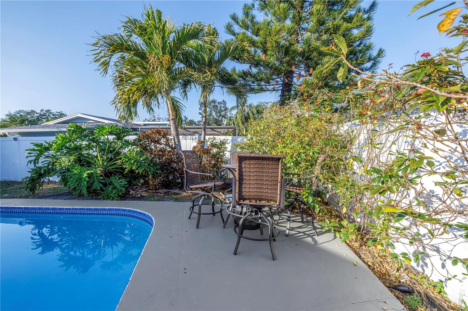 If you're looking for a home that has it all, this is it! Step inside to this beautifully renovated 3 bedroom, 2 bath, pool home with a 2 car garage, and BONUS/4th bedroom that can also be a home office! Located in one of Largo’s most desirable neighborhoods! This home features modern upgrades and tons of space to spread out and relax creating exceptional comfortability for entertaining and everyday living. As you arrive you can't help but notice the stunning wraparound driveway and welcoming entrance. As you enter you're greeted by the split floor plan, where the living room, kitchen, family room, and dining areas flow perfectly! The remodeled kitchen (2024) is a showstopper, featuring quartz countertops, custom built-ins, and brand new LG appliances. There are 3 generously sized bedrooms in this split plan home, the primary bedroom has an ensuite bathroom and a true walk-in closet. Venture outside to the backyard where you can relax under the screened in patio or lounge by the pool under the gazebo. The pool is newly resurfaced, complete with a new pool pump and filter (2022). This home has numerous upgrades, including a new roof (2025) with hurricane clips that includes a 10-year warranty, a new hot water heater (2022), New flooring throughout entire house (2024), UV air filter system in AC (2023), upgraded plumbing including a one-year warranty (2024), and much more. This home features many Smart Home options, such as a Wi-Fi enabled garage door opener, a Nest thermostat, Wi-Fi enabled appliances, and Phillips Hue lighting. While you'll never want to leave this home, you are just minutes from great parks, world renowned beaches and top rated Largo schools.