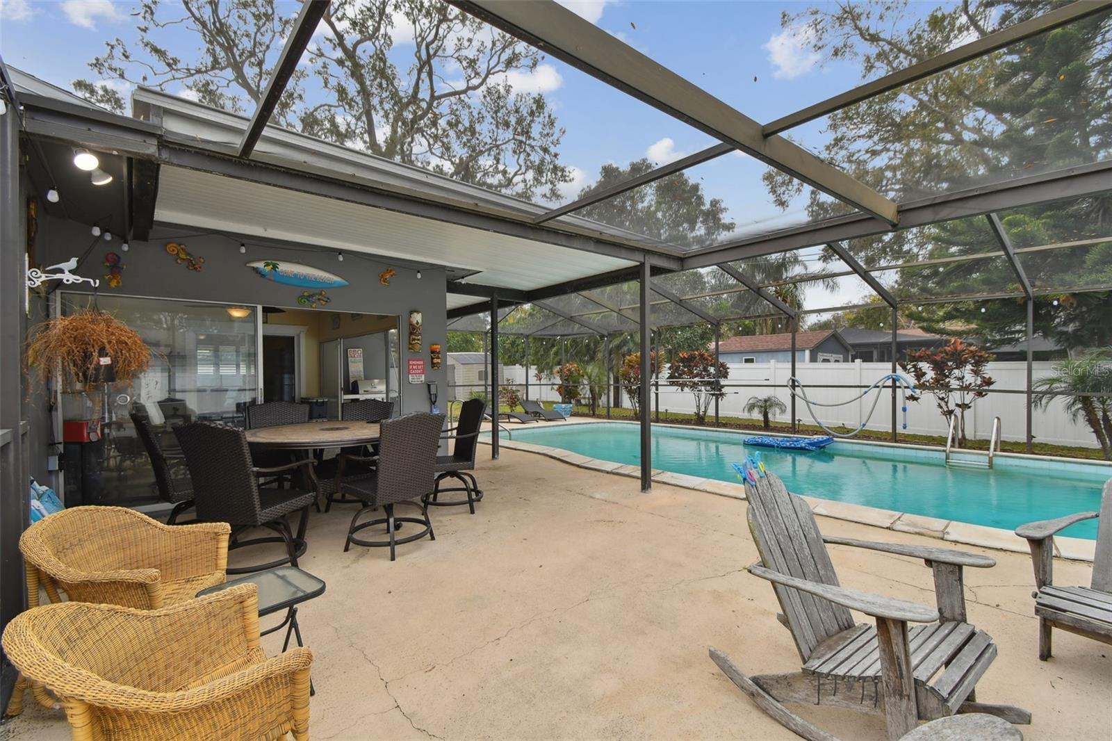 $$PRICE REDUCTION$$$ Prepare to fall in love! Nestled in a tranquil neighborhood, this charming residence boasts comfort, style and modern amenities. The expansive circular driveway at the front can easily accommodate five (5) vehicles, and a two car side-entry garage, and the driveway also adds additional parking. As you approach the front of the home, you’re welcomed by a stunning fire and water slate urn. By day, the water flows gently over the textured slate, adding a sense of tranquility. By night, the mesmerizing flame casts a warm glow, creating a striking first impression. Upon entering through the nearly new double wooden doors, you’re greeted by an expansive open-concept layout that seamlessly integrates the game room/formal living, kitchen, dining area, and family room with a wood-burning fireplace. This design creates a spacious and inviting atmosphere, perfect for both daily living and entertaining. The kitchen is a chef’s dream with the top-of-the-line Samsung Bespoke stainless steel kitchen package. Smart 4-door french door refrigerator, Smart freestanding electric range, Smart over-the-range convection microwave and a Smart top control dishwasher! The kitchen was fully updated in late 2023. This 3-bedroom, 2-bath, 2-car garage home has been fully wired for a smart home concept. This home has a split layout with the primary bedroom and beautifully updated bathroom with you guessed it, a Smart Toliet with auto open lid plus a remote control for the many feature options. The primary has sliders out to the covered patio that has A/C vents. On the other side of this home you’ll find 2 spacious guests rooms that share an updated guest bath with a Smart Toilet. This home boast of the latest Smart Light Switches! These Smart Switches are Wi-Fi enabled and offer a wide range of advanced features. Off the family room you will enter into a covered patio/Florida room that opens to an oversized saltwater swimming pool. This is the space that’s off of the primary and has a set of oversized sliding glass doors, plus additional set of sliding glass doors that also opens to the pool and the goldfish pond. The swimming pool also runs on the Smart programs. The lights in the covered open patio off of the Florida Room, and all lights around the entire pool area including the pool light are Smart lights. The backyard is so spacious with a fire pit, tons of green space for family games. The storage shed in back stays. The Roof is 2 years old and carries the remaining transferrable warranty. NO EXPENSE WAS SPARED on this modernized gem. Don’t miss out on the opportunity to make this house you’re Home Sweet Home! Not to mention you're only 10 minutes away from Indian Rocks Beach and the best part NO FLOOD ZONE!