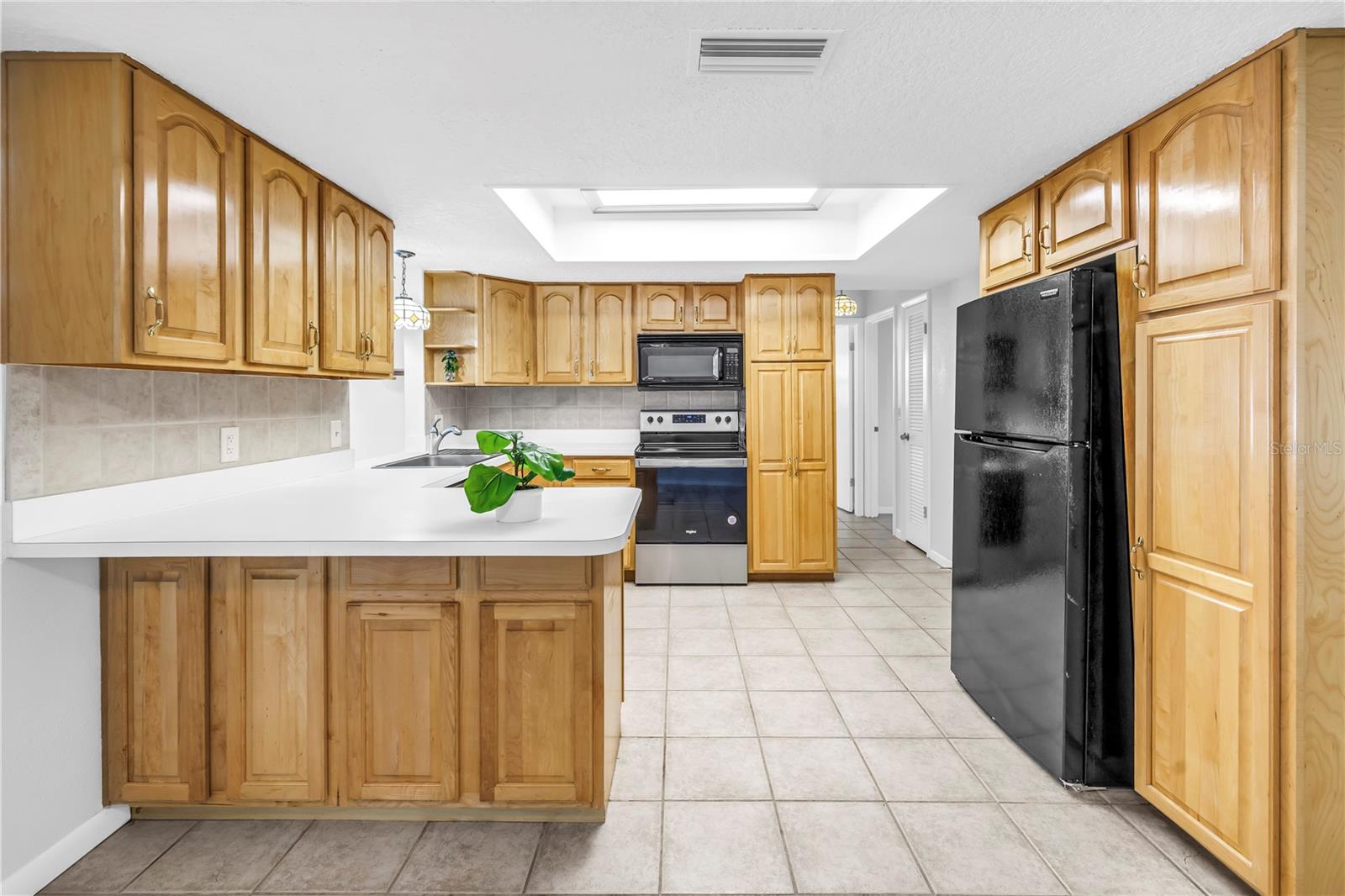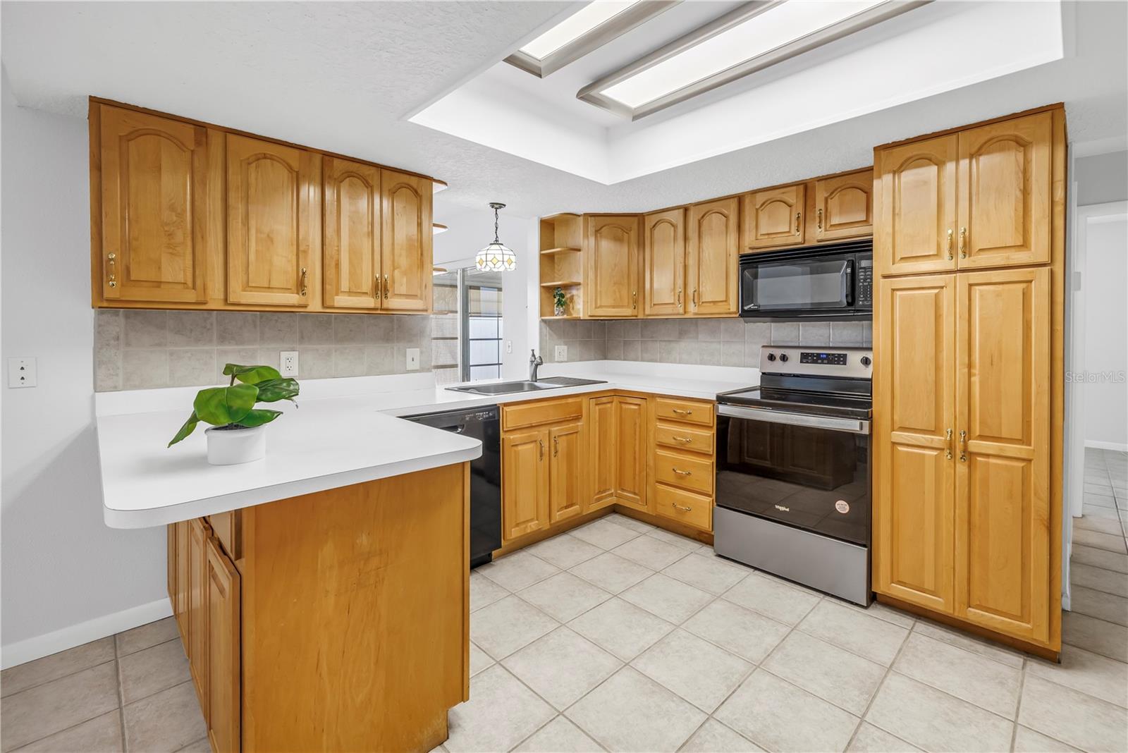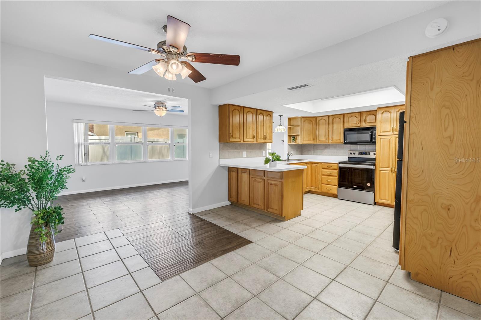 Located in the highly desirable Oakhurst neighborhood of Seminole/Largo, this exceptional 3-bedroom, 2-bath home sits on a spacious corner lot—just minutes from top-rated schools and stunning Gulf beaches. Step inside to find a thoughtfully designed split-bedroom floor plan featuring two generous living areas and an oversized two-car garage. The expansive living room provides a warm and inviting atmosphere, while the kitchen boasts ample counter space and stunning solid wood cabinetry for plenty of storage. Adjacent to the kitchen, the additional living space and enclosed back patio offer the perfect setting for entertaining or unwinding. The private master suite includes an updated en-suite bathroom, while two additional well-sized bedrooms share a second updated bath. Enjoy peace of mind with a new roof in 2023 and HVAC system replaced in 2019. Location is everything, and this home delivers the ultimate Florida lifestyle. Just over two miles from the sandy Gulf beaches, you can easily bike or take a quick drive to enjoy the coast. Nearby, you'll find three scenic parks perfect for outdoor adventures, along with shopping, dining, and everyday conveniences just minutes away. Best of all, this property is located in a non-evacuation zone and has proven its durability through recent storms. Don’t miss this rare gem! Schedule your private showing today.