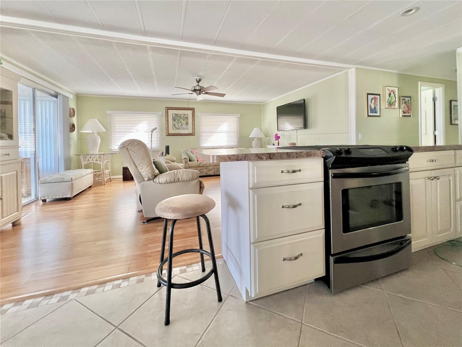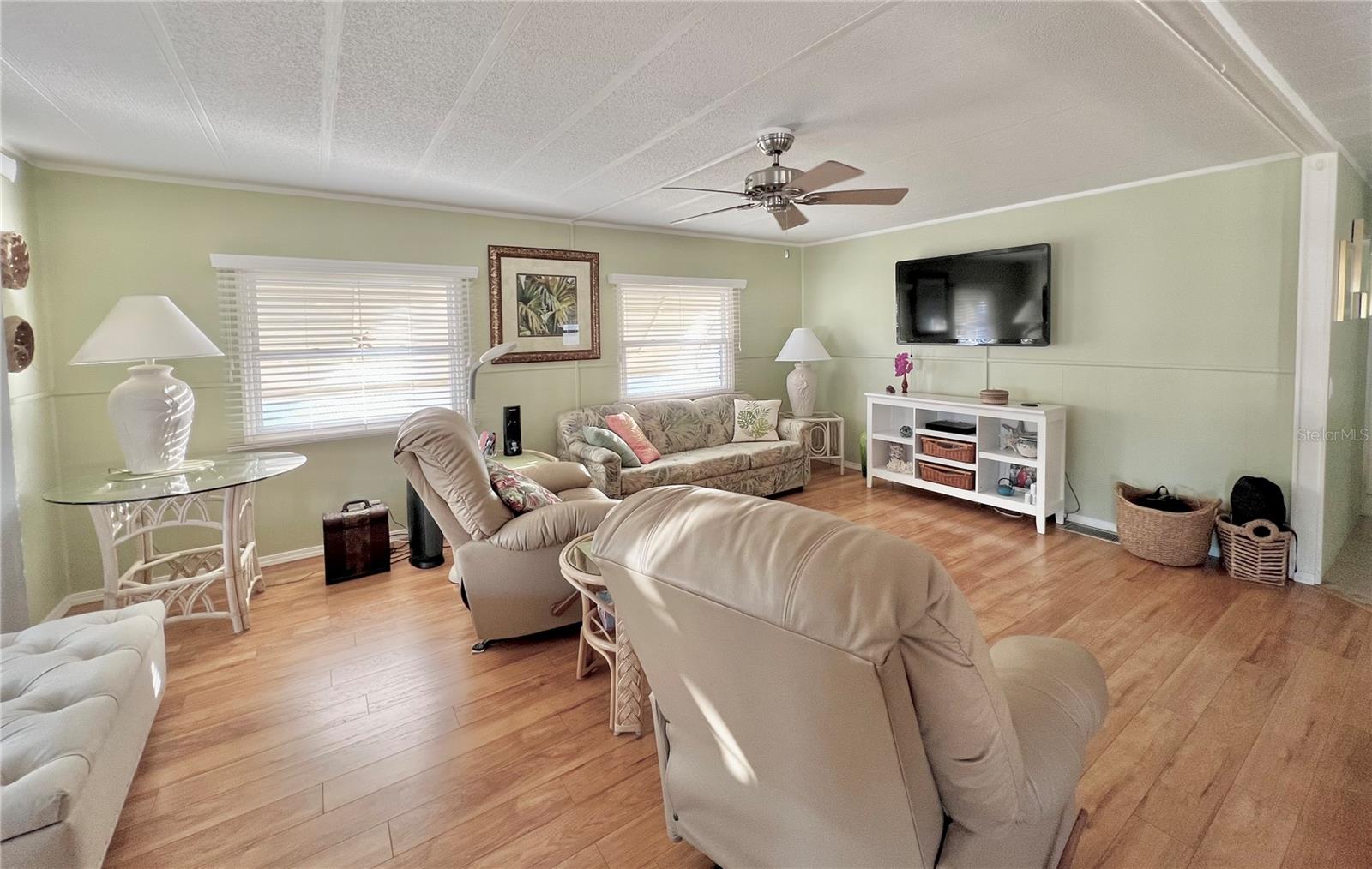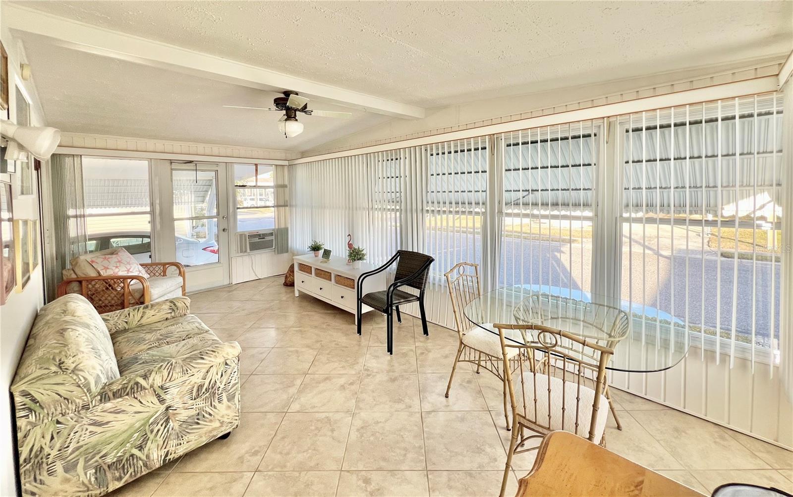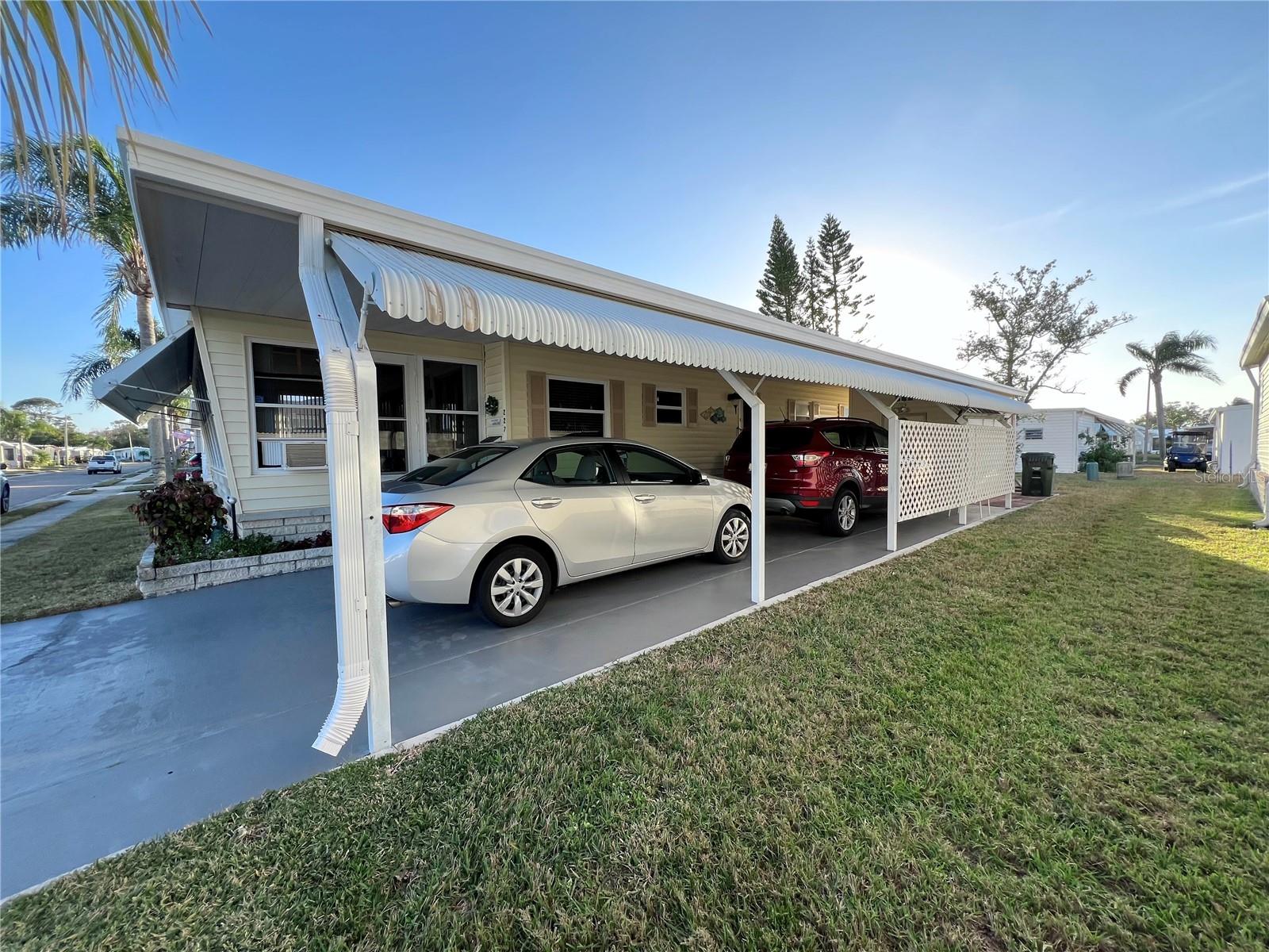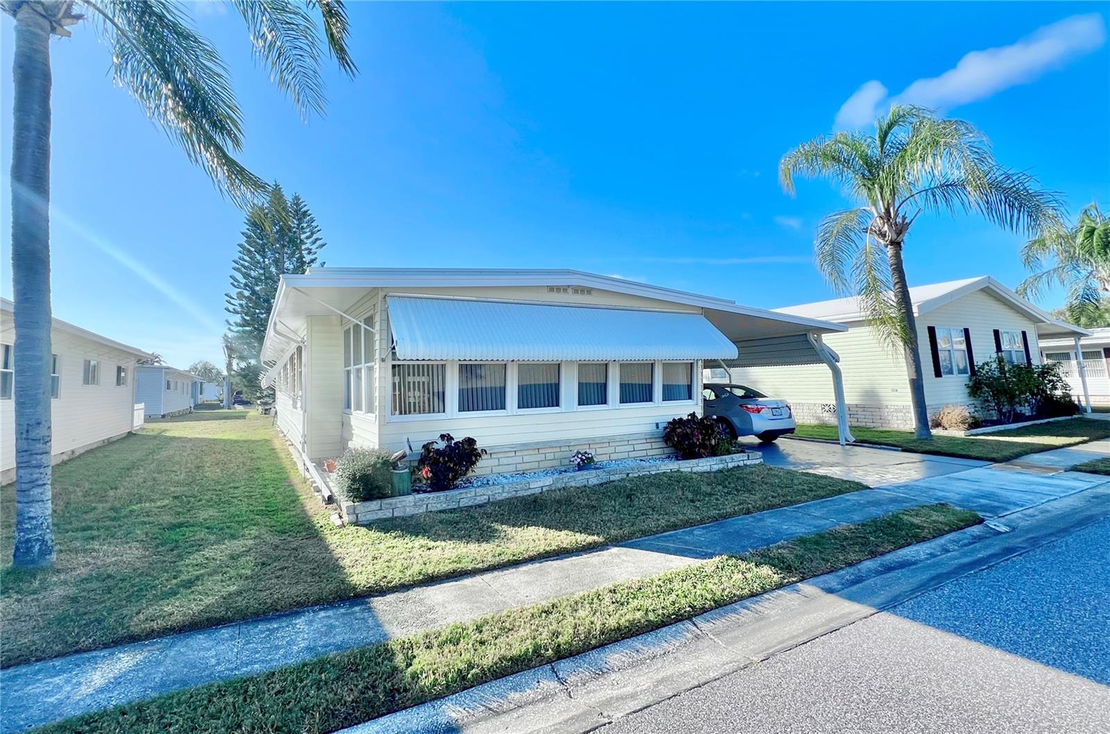 This charming 2-bedroom, 2-bath home offers 960 sq ft of living space, plus a 200sq ft Florida room that faces East and adds extra comfort and functionality. With great curb appeal, the home features a parking space for two vehicles and a golf cart under carport. The front Florida room faces east, making it the perfect spot to enjoy your morning coffee and watch the sunrise. Updated windows were installed throughout, allowing plenty of natural light to flow through. The kitchen has been thoughtfully updated, with a wall professionally removed to create an open-concept space that connects seamlessly to the living room. The kitchen island is equipped with a stove, and there is still ample space for food preparation. The home comes furnished, minus a few personal items, wall hangings, and the sellers' two recliners, which will be taken with them. Additional highlights include a large hallway bathroom with a walk-in shower, a storage shed located under the carport with a washer, dryer, and wash tub, and several updates to the home’s systems: the roof was replaced in December 2016, the outside electrical box was upgraded in 2016, the water heater was replaced in 2018, and the A/C was installed in November 2015. This home offers both comfort and functionality, making it an excellent choice for your next move. Fairway Village, a premier 55+ manufactured home community, includes a share in the list price, providing additional value. The community offers an impressive array of amenities, including a newly opened 19,000 sq. ft. clubhouse featuring spaces for dances, bingo, card games, and more. Residents can also enjoy two pools, jacuzzis, eight covered shuffleboard courts, and a 9-hole par 3 golf course for a small fee. Ideally located near major attractions, airports, and beautiful beaches, Fairway Village provides an ideal setting for both year-round living and seasonal stays. This is a wonderful opportunity to join a vibrant and welcoming community and make the most of your retirement years. Schedule your private showing today!